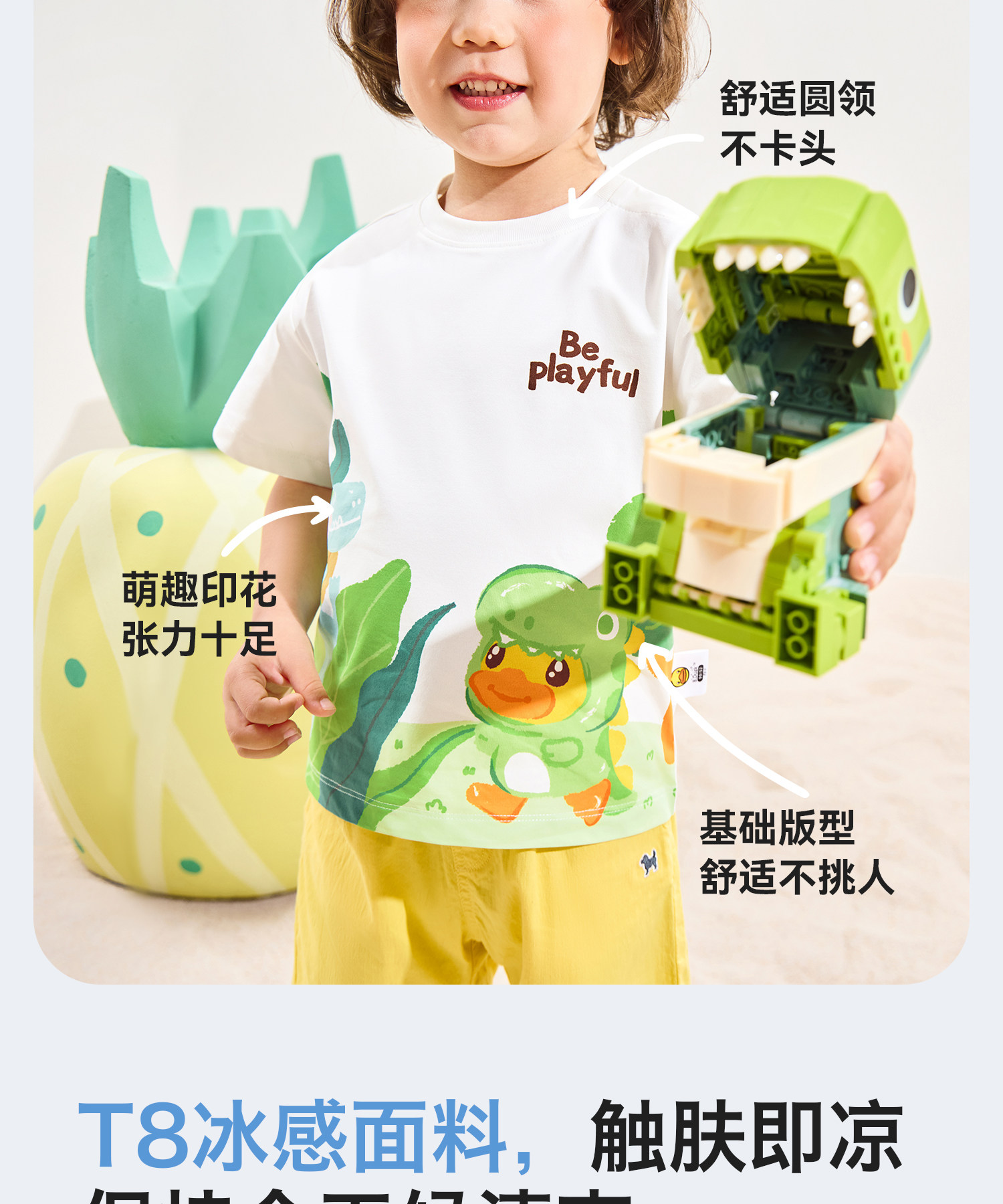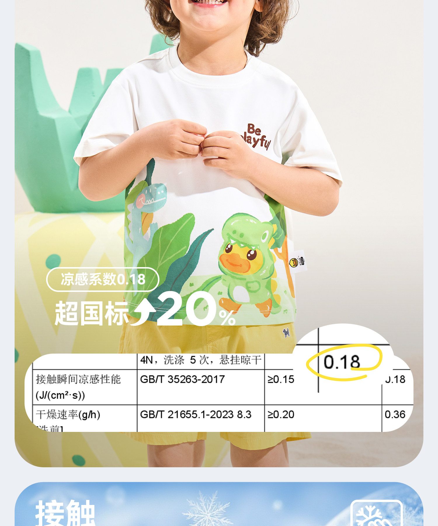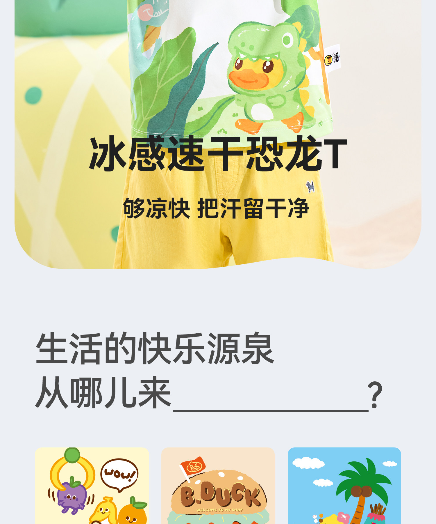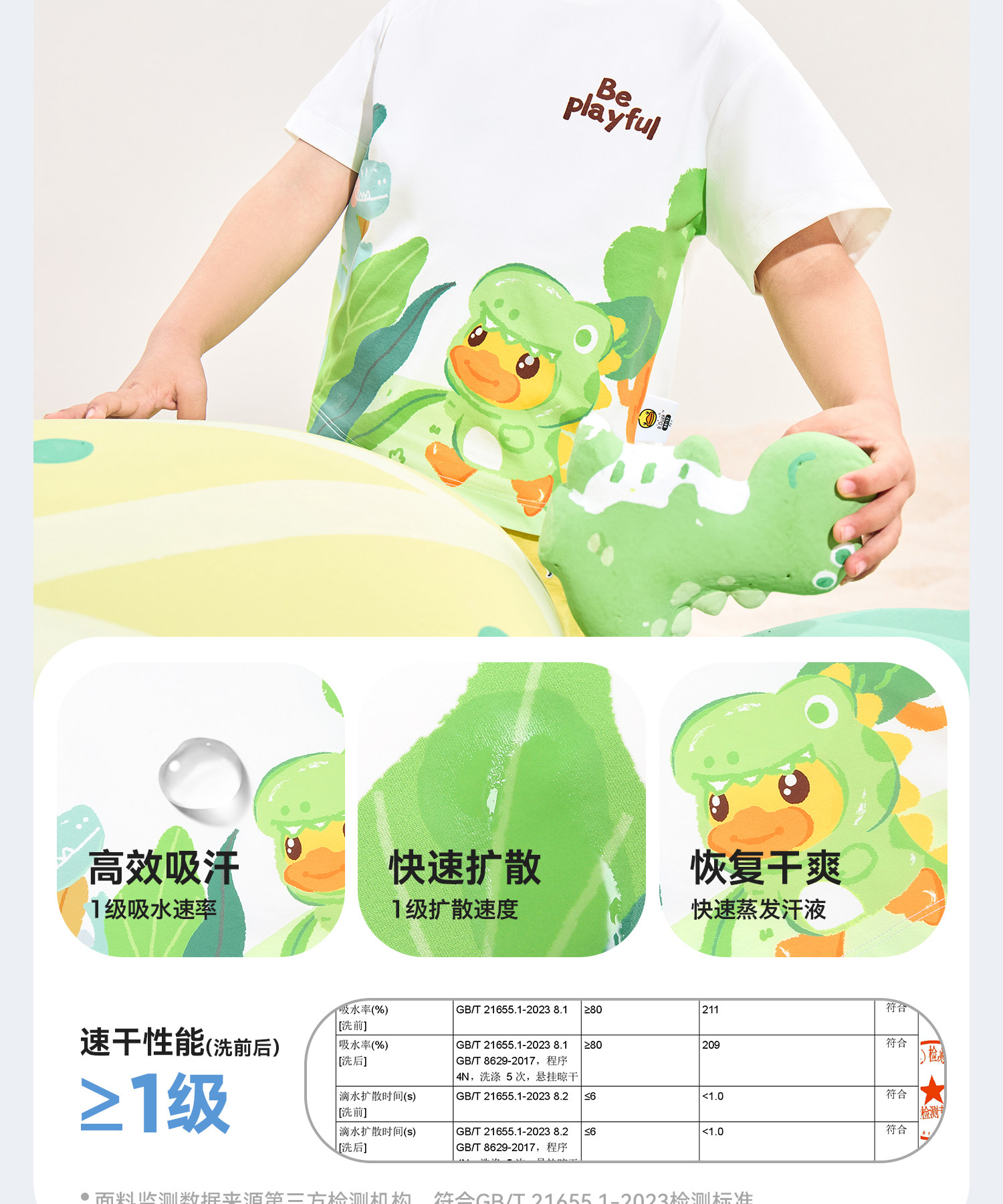 [冰感速干]bduck小黄鸭童装男童短袖t恤儿童速干衣宝宝夏装上衣薄90-140 BF2701079