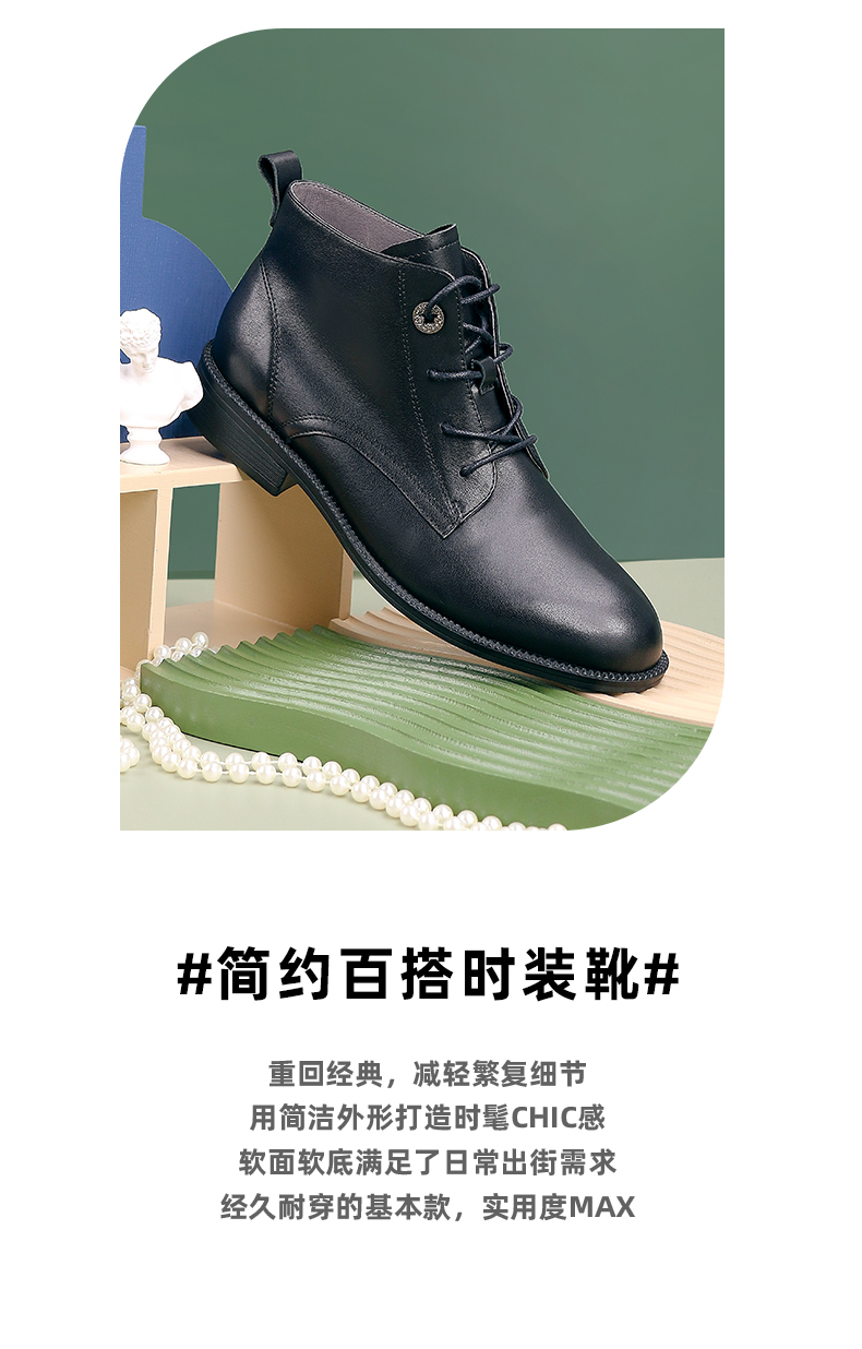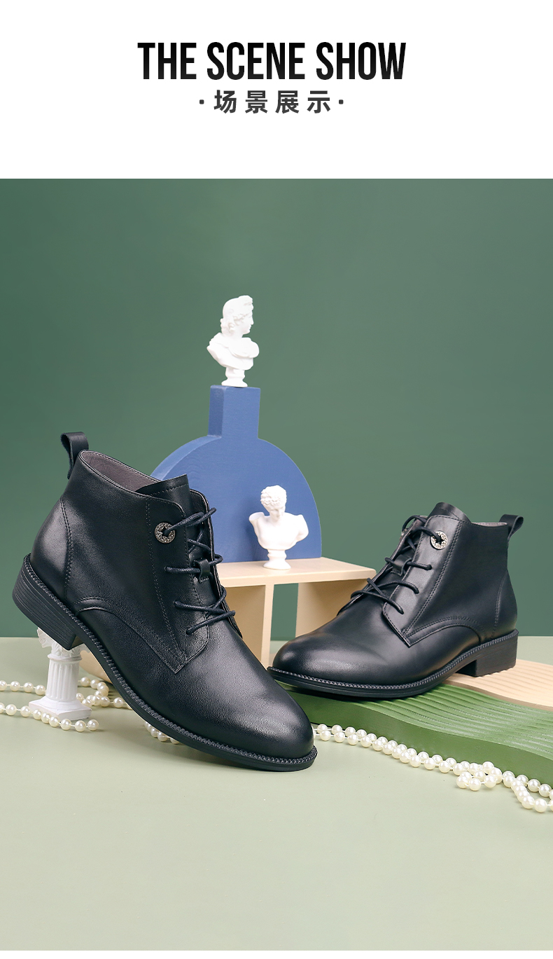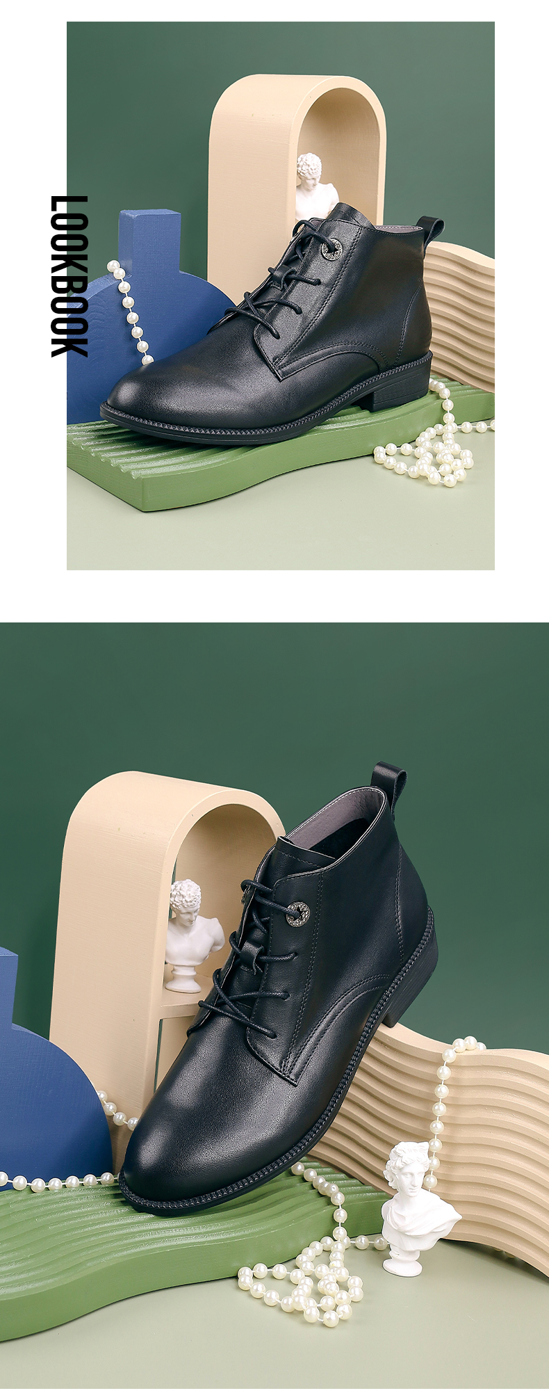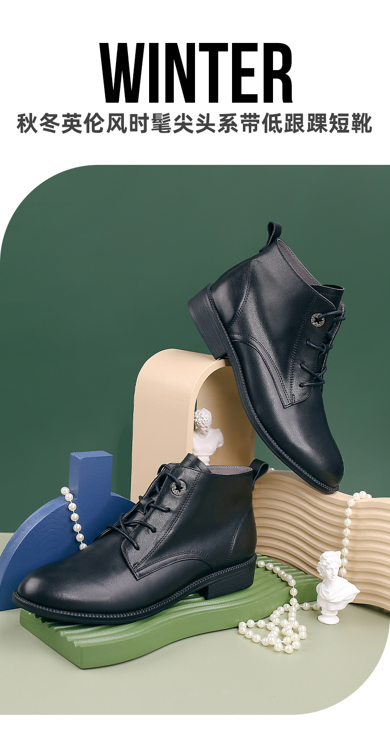 【春节不打烊】Safiya/索菲娅马丁靴2022年冬季新款英伦风百搭黑色系带低跟短靴 SF24116171 商品图2