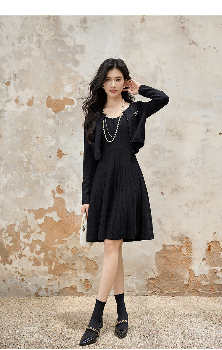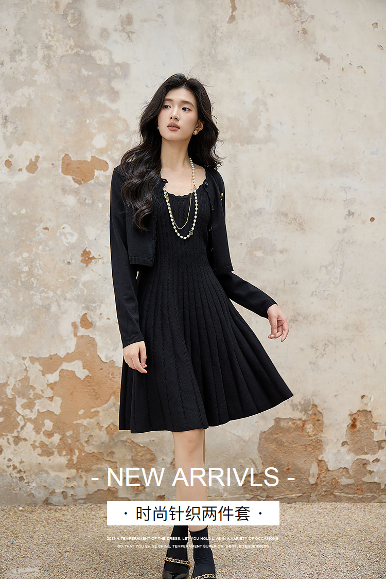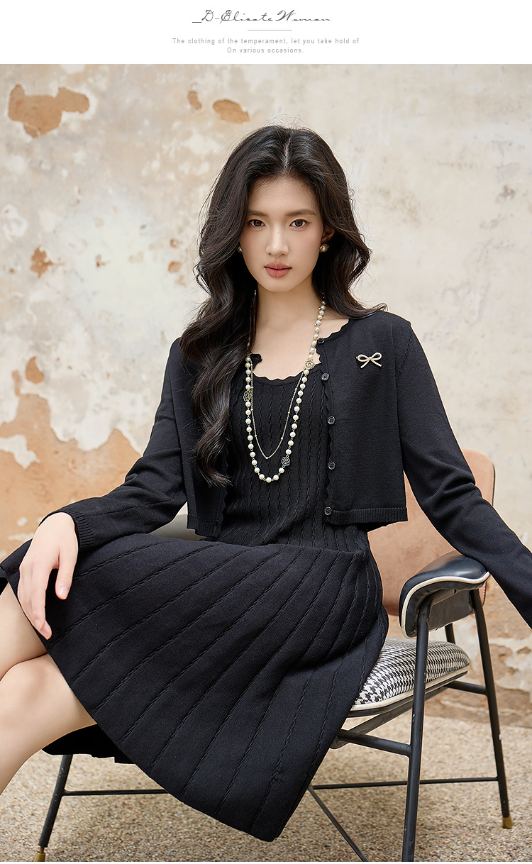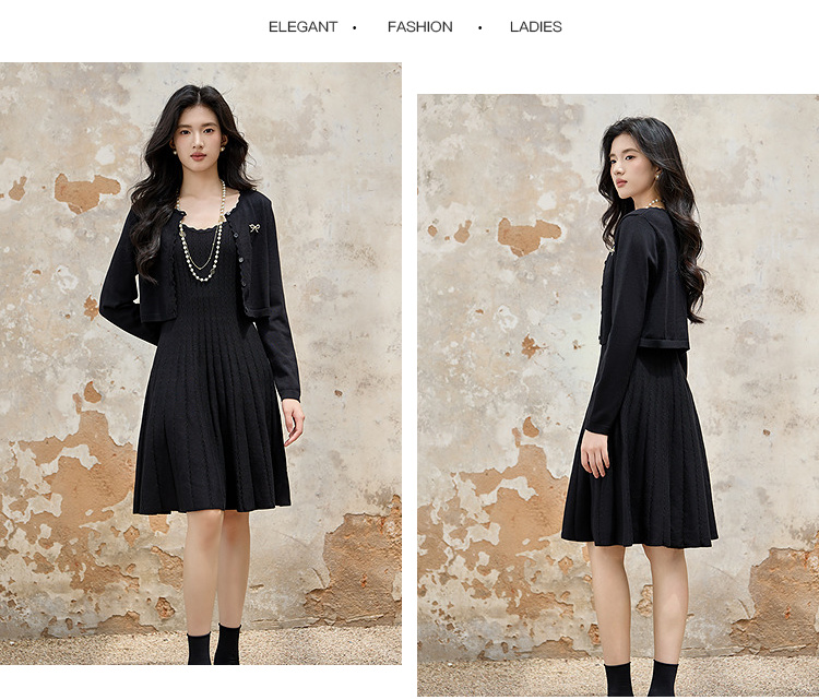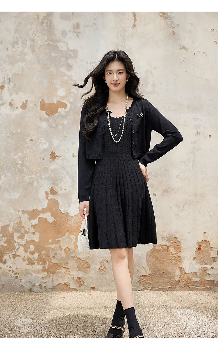 奢姿大码女装2025秋季减龄蝴蝶结针织两件套胖妹妹波浪时尚套装9853990652