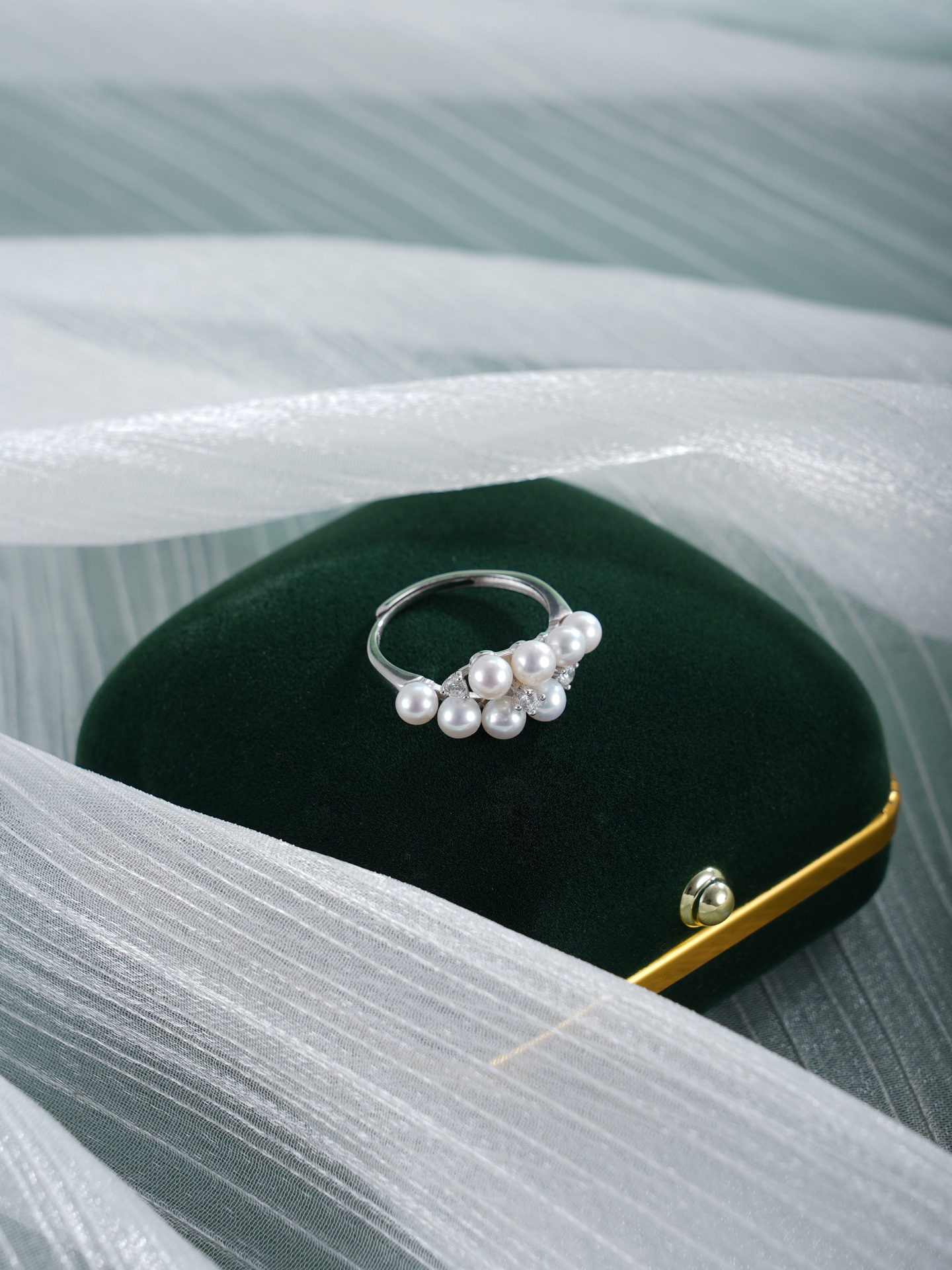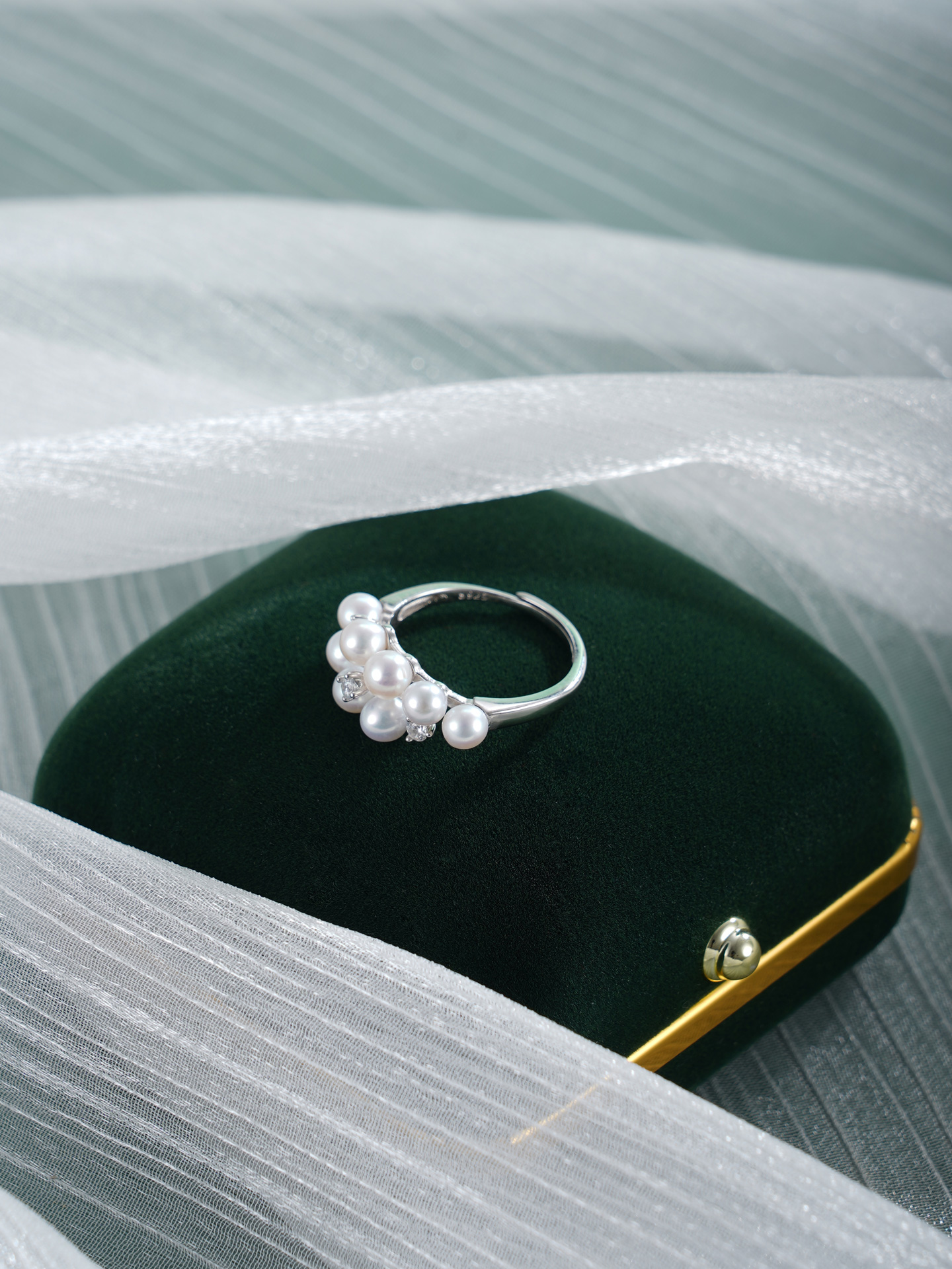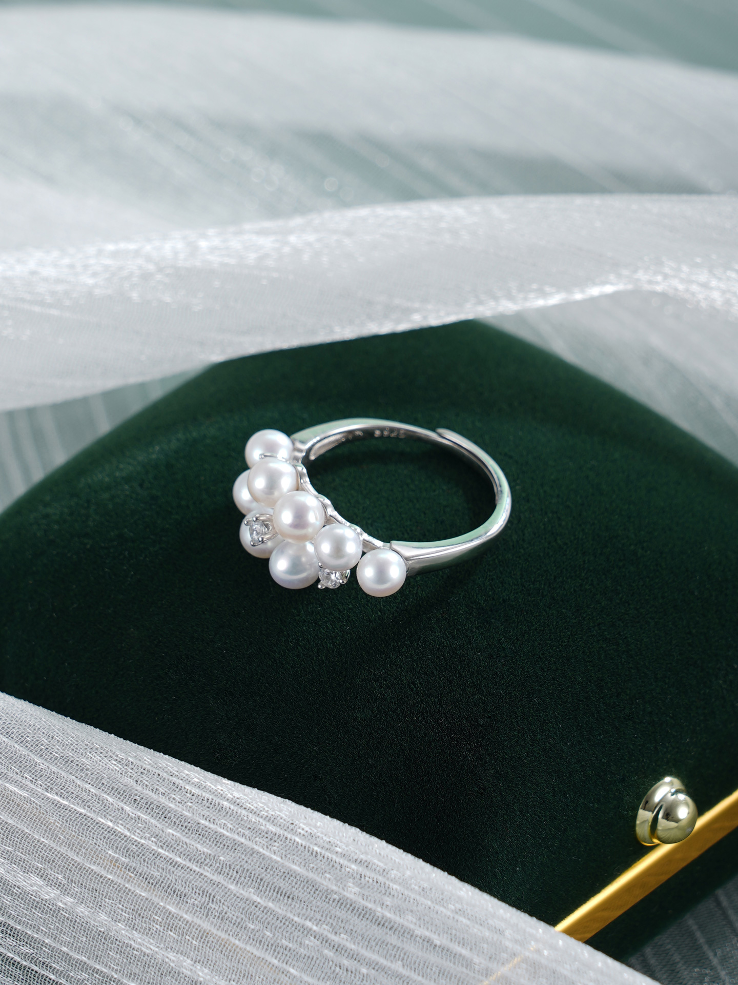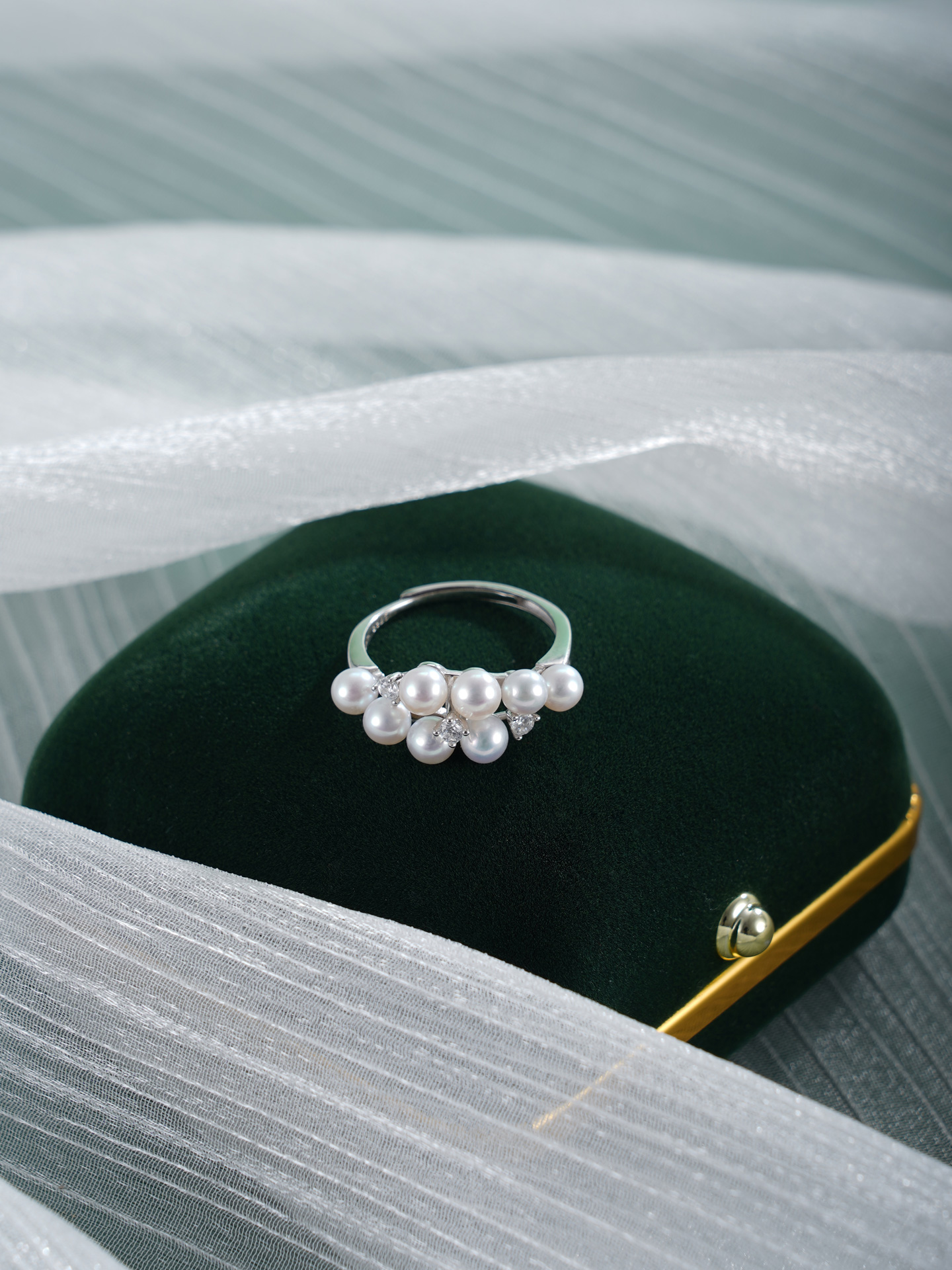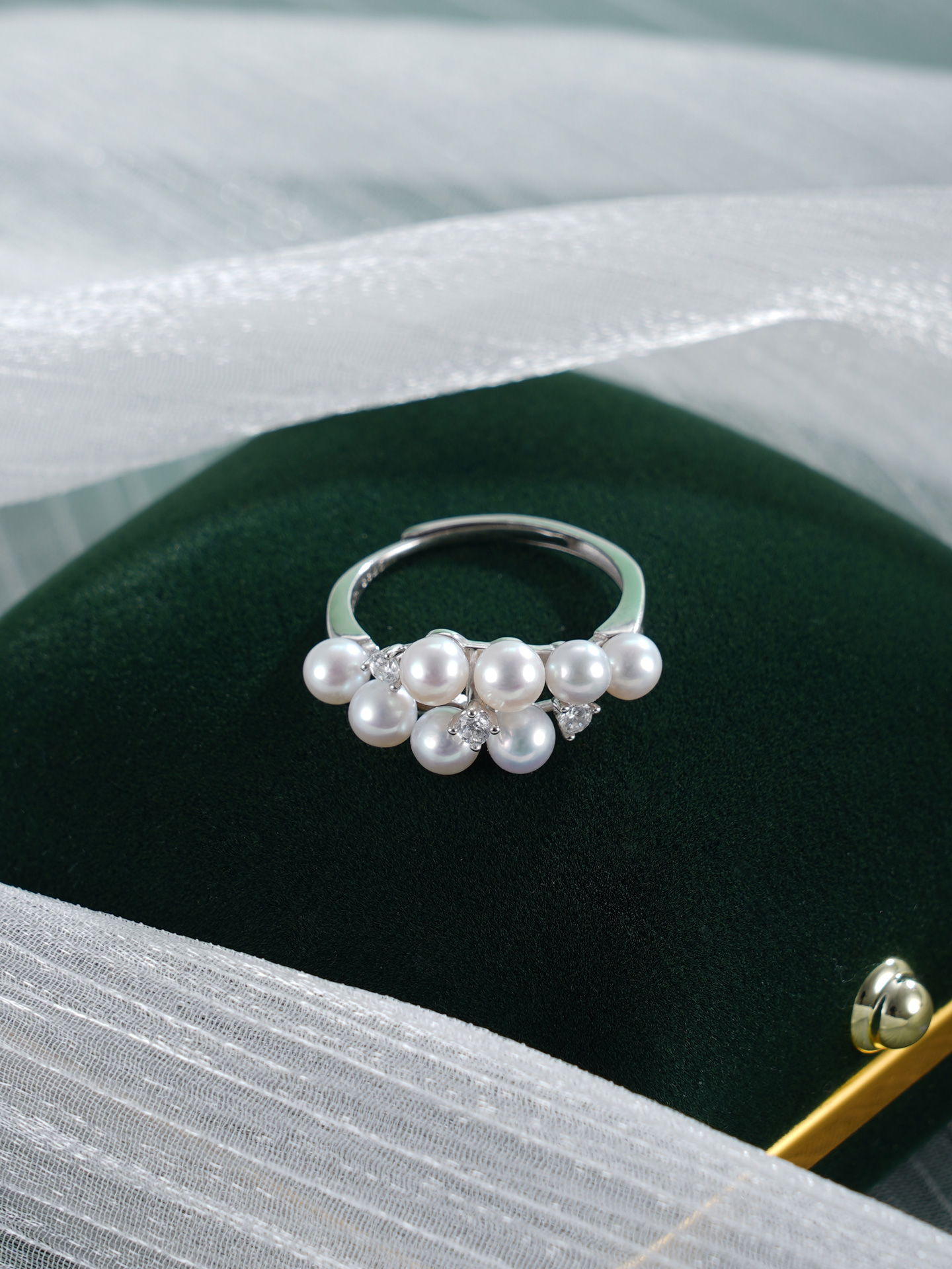 子佩集【珠光叠韵】银S925珍珠AOYA奥雅戒指【MLJZ007】3.8mm珠交错双排2512