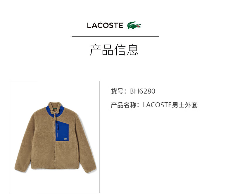 【海南专供价】Lacoste法国鳄鱼男装新款时尚拼色宽松休闲保暖外套BH6280-98