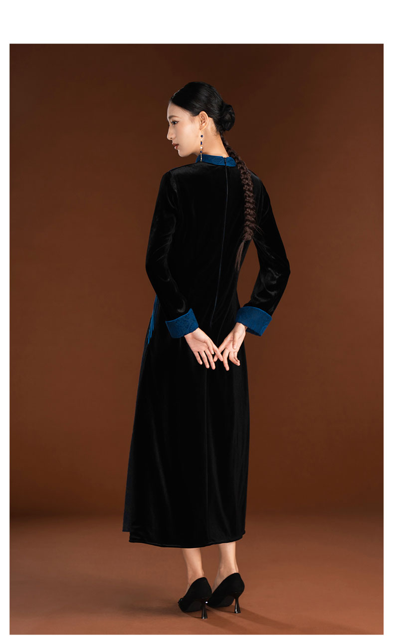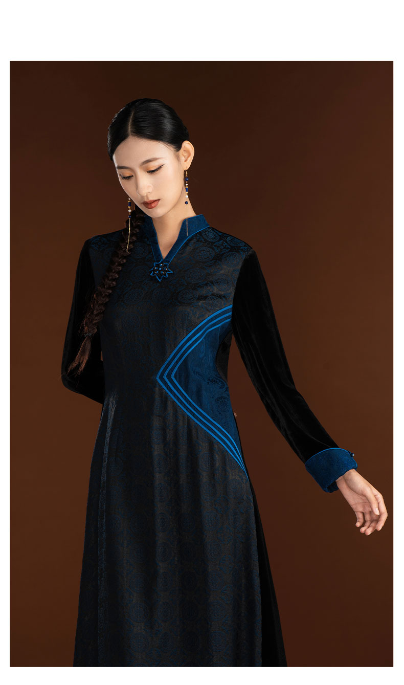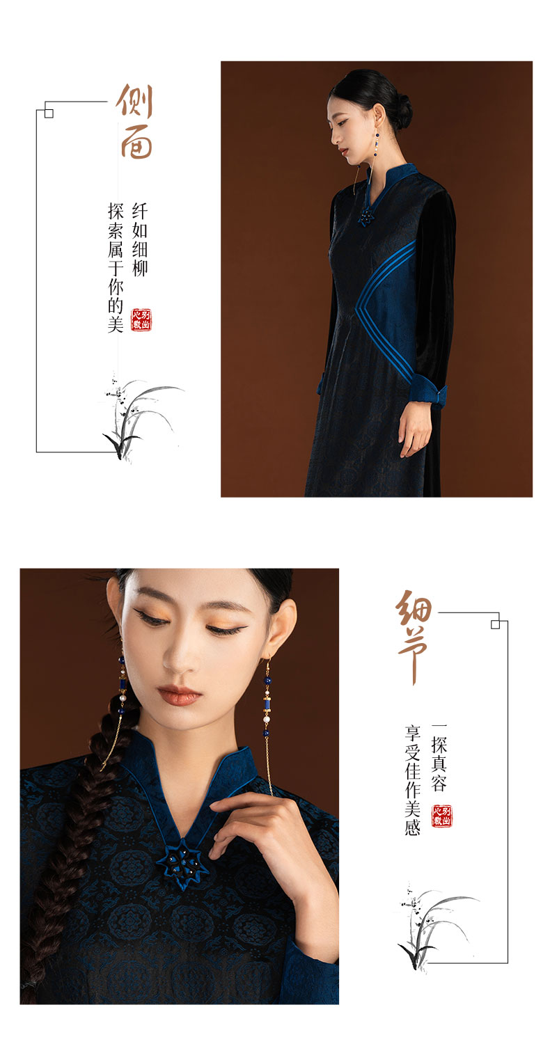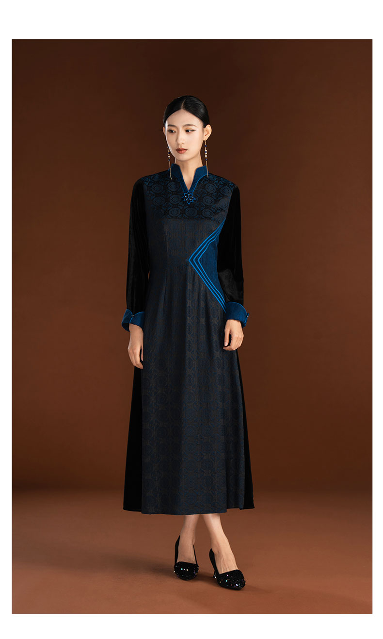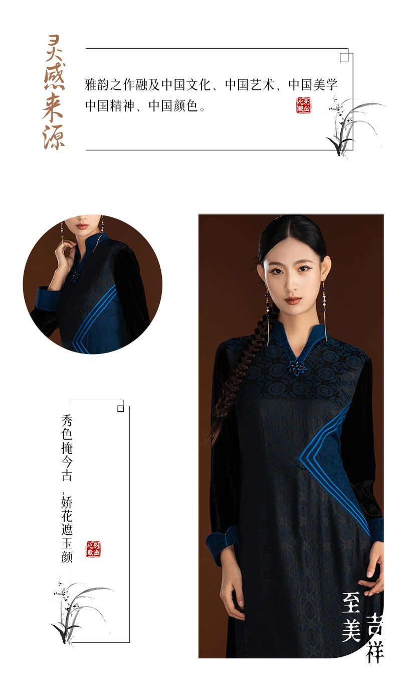 吉祥衣家新中式国风复古春季新款高端显瘦修身女装静姝雅韵连衣裙