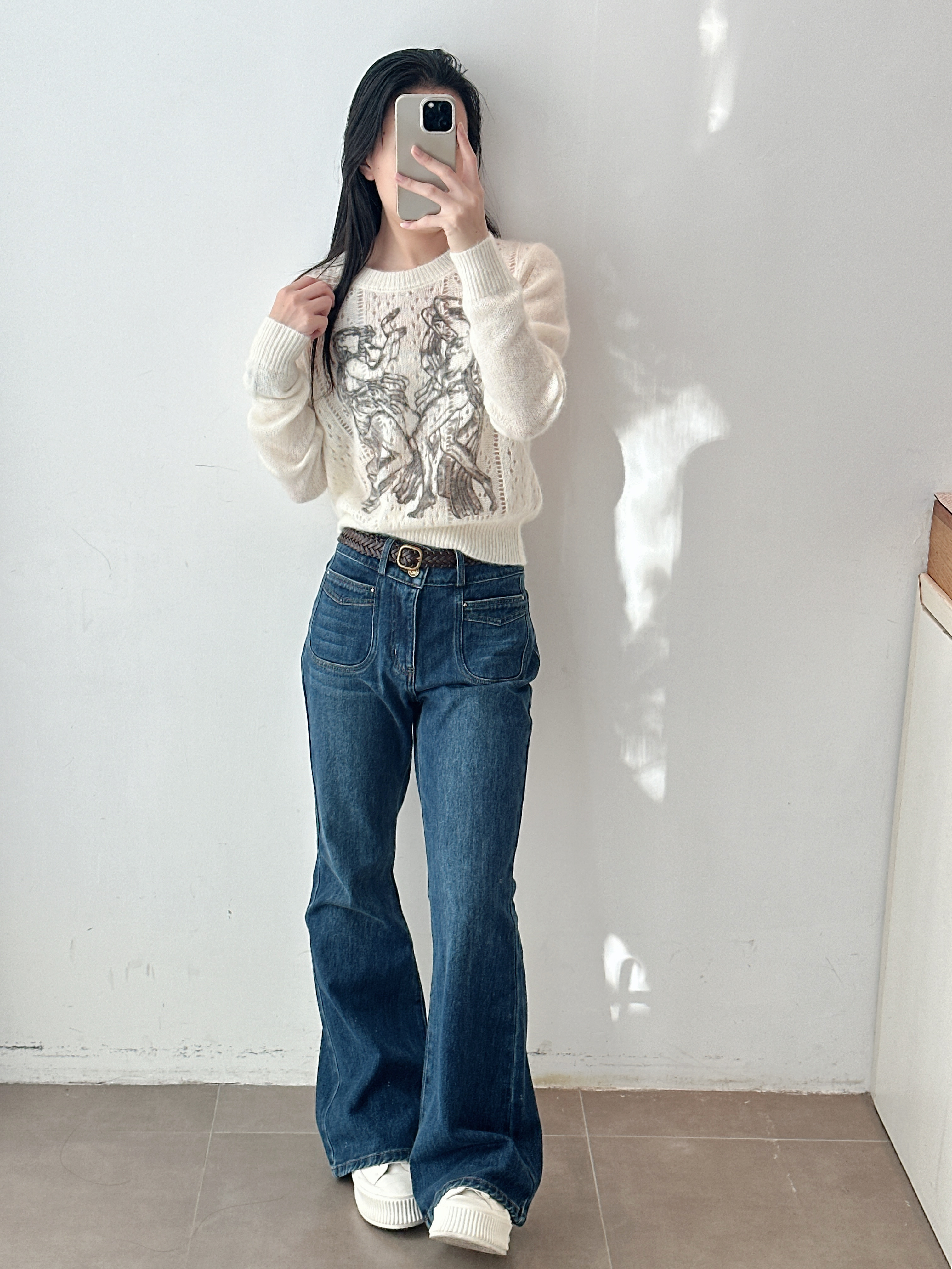 秋季新款牛仔微喇裤高腰修身显瘦时尚百搭潮