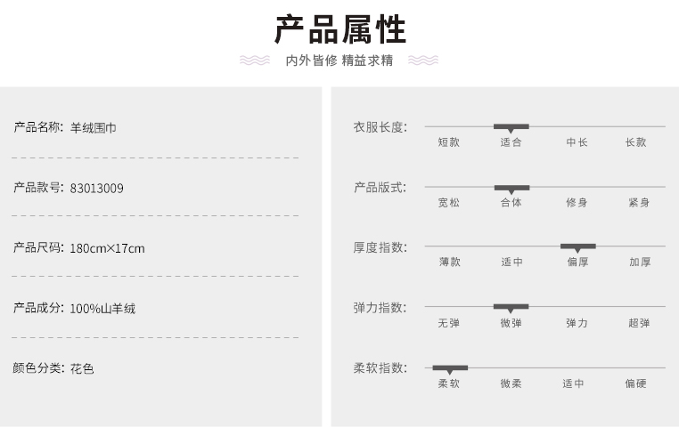 | 材质: 羊绒 | 羊绒支数: 26支 |