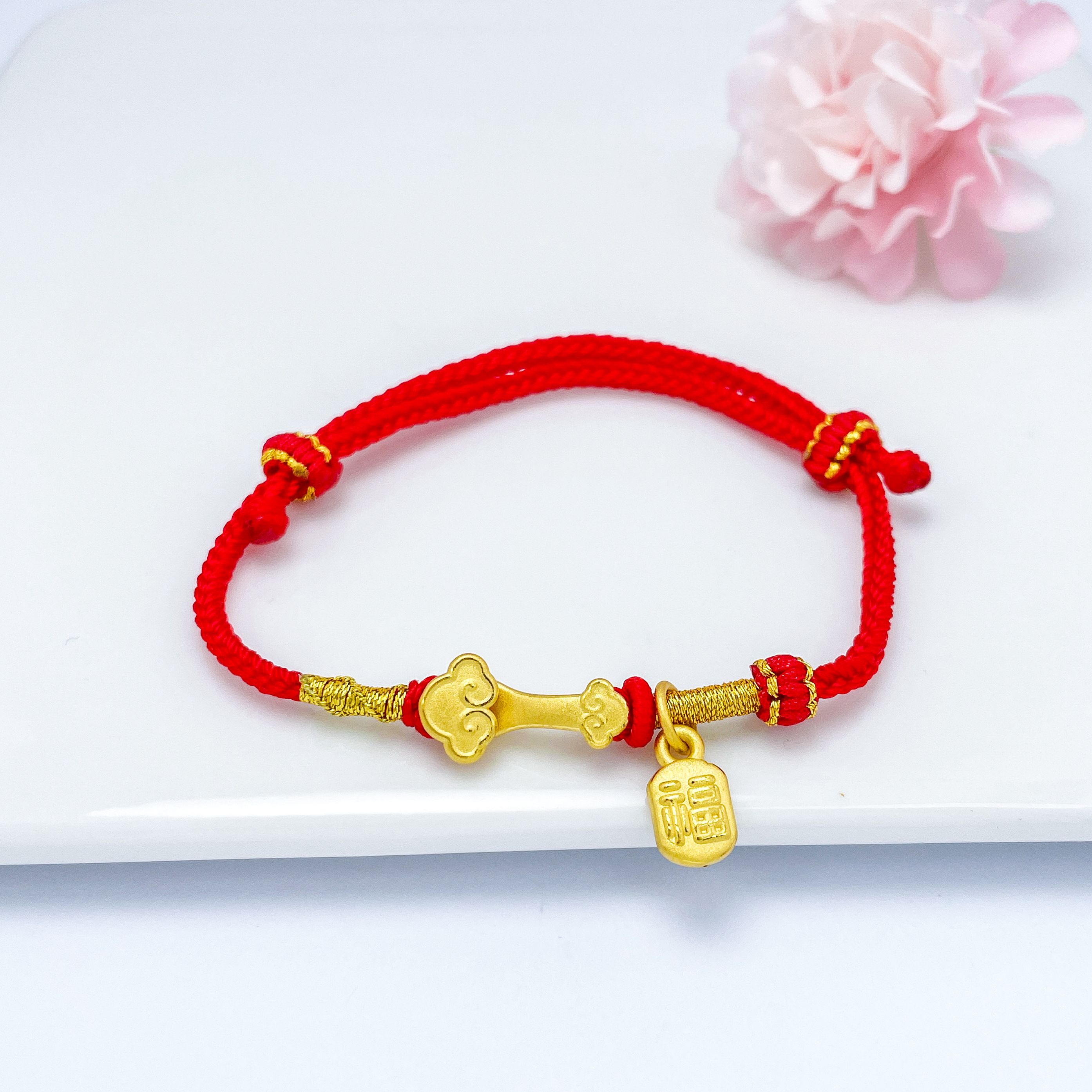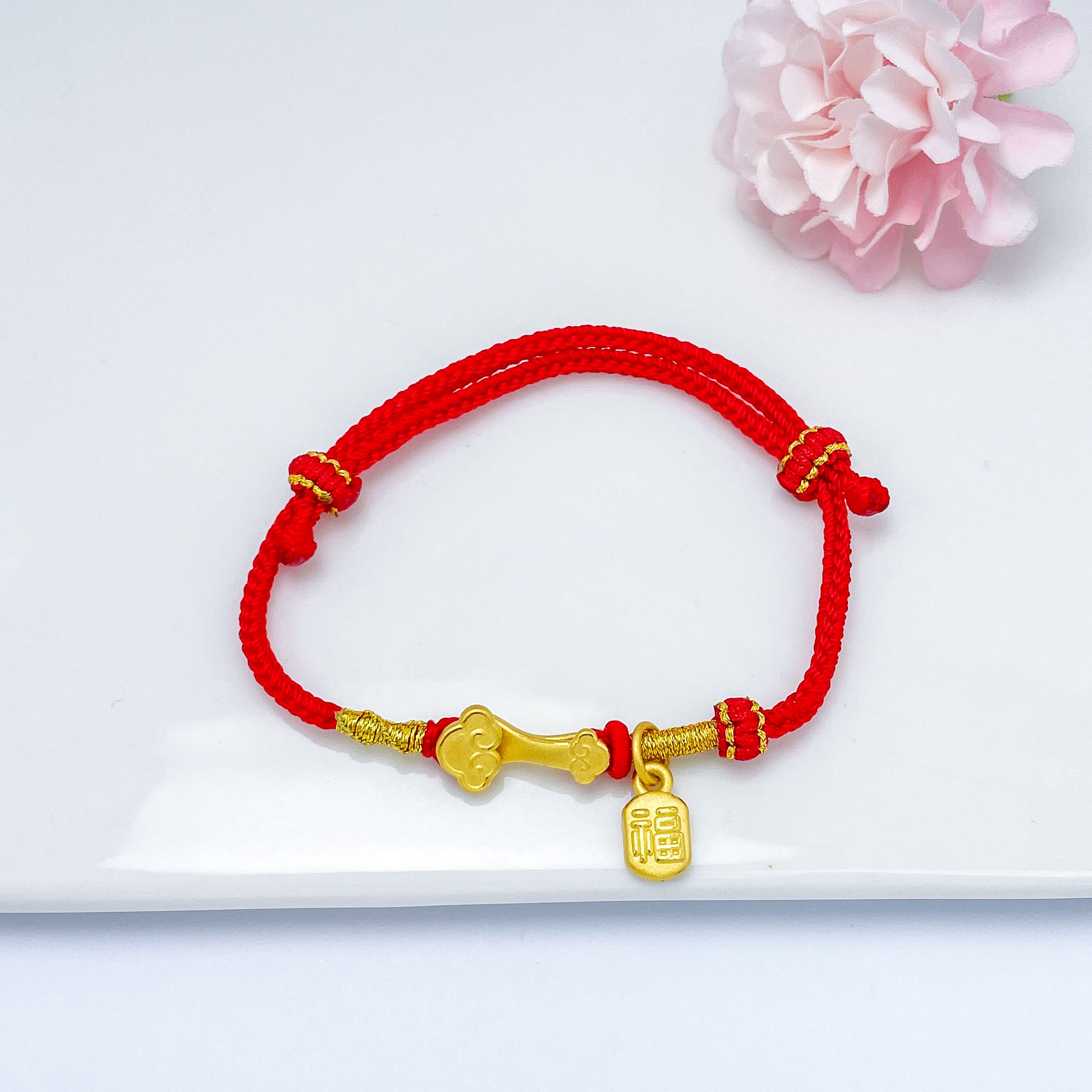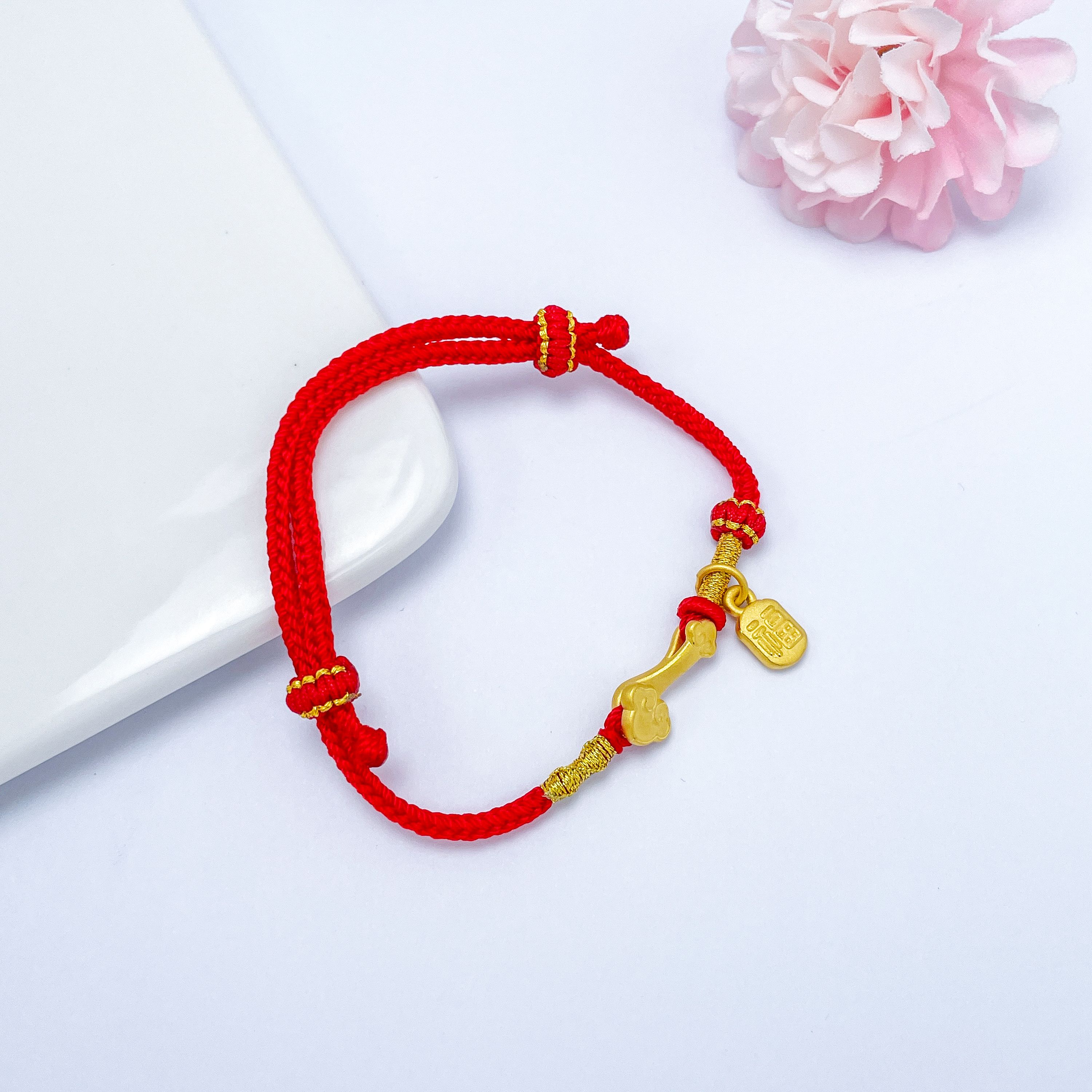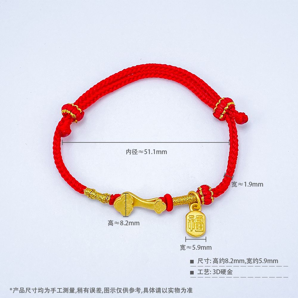 【限时7.5折】【定价黄金】足金 3D硬金如意福字吊饰红绳调节成品手串(AA3DSC00294)(预售产品下单后不退款不退货不换货不补差价)