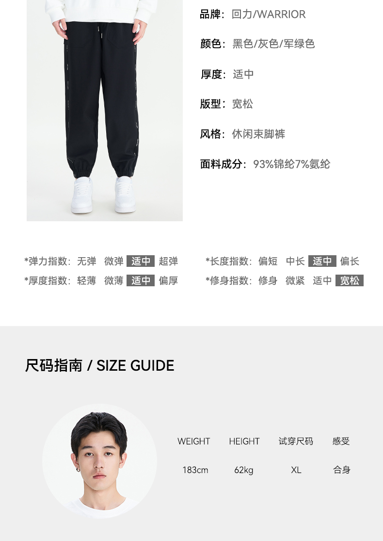 回力工装束脚裤男2025新款休闲裤秋季宽松运动裤卡其色裤子春秋款