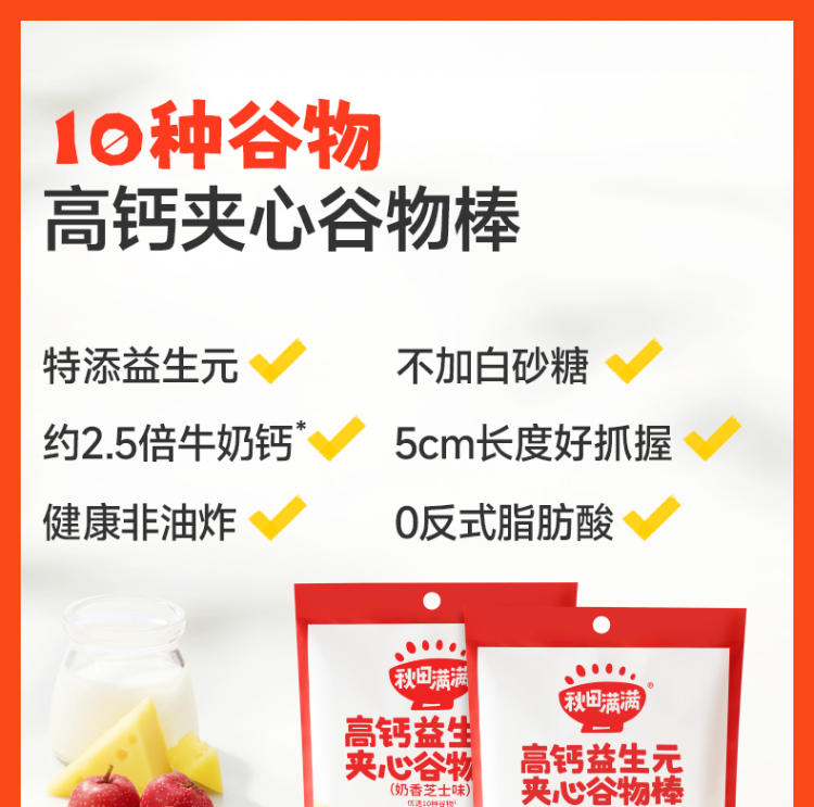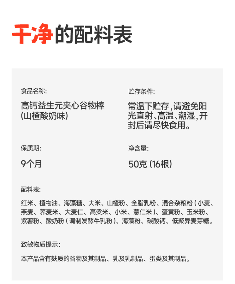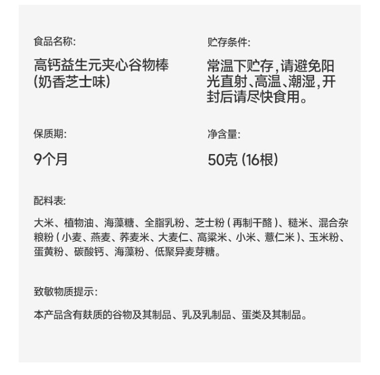 高钙益生元夹心谷物棒(奶香芝士味)/(山楂酸奶味) 50g(16根) 1岁+