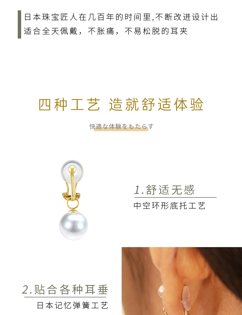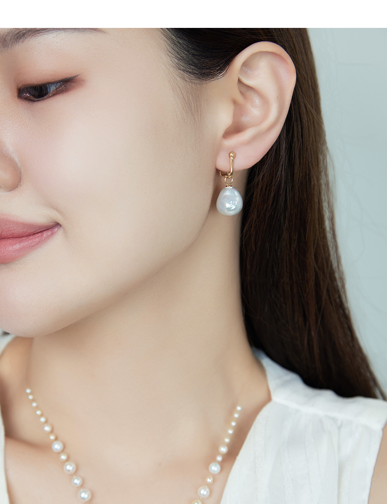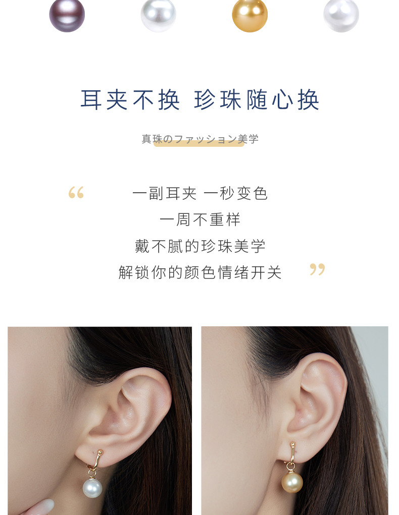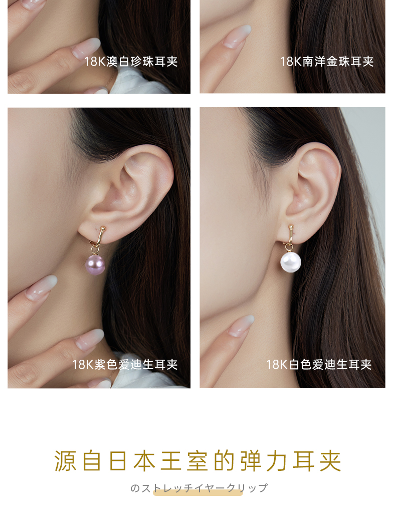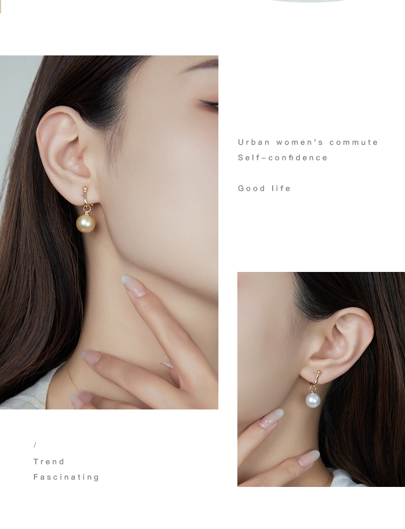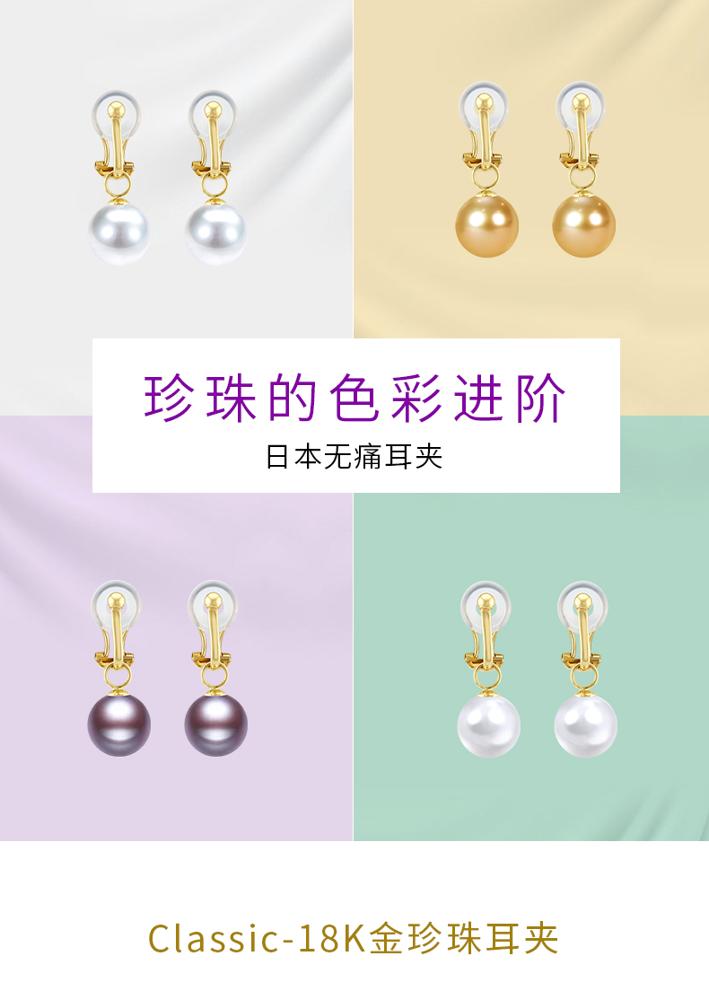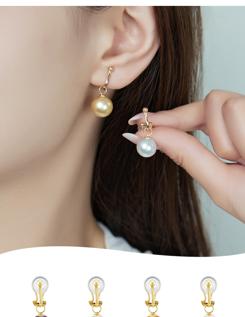 【挚友限定】(经典款/挂珠款)18K金澳白珍珠耳夹 真科研凤凰等级
