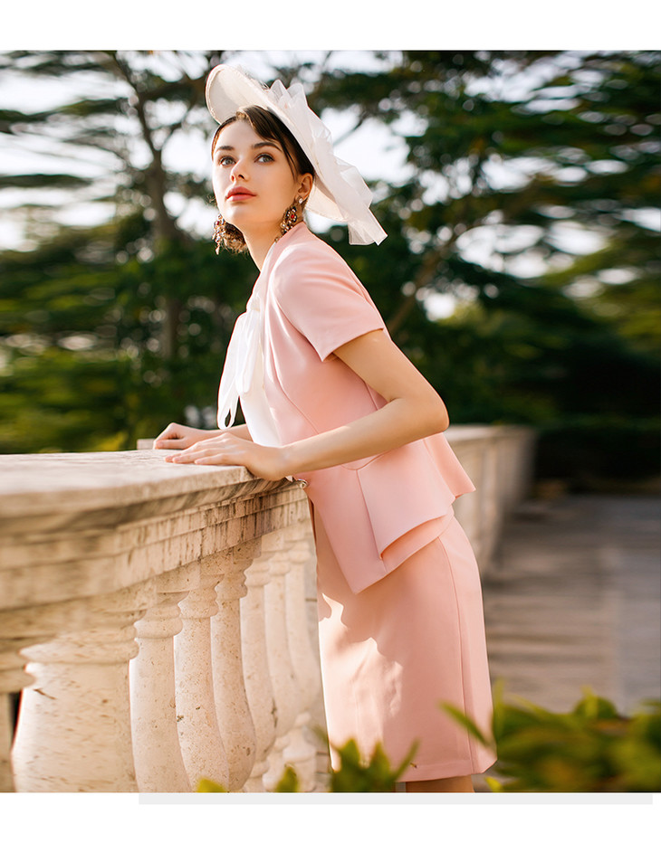 IWY/ 女士粉色短袖西装半裙套装优雅套裙CS255+B67