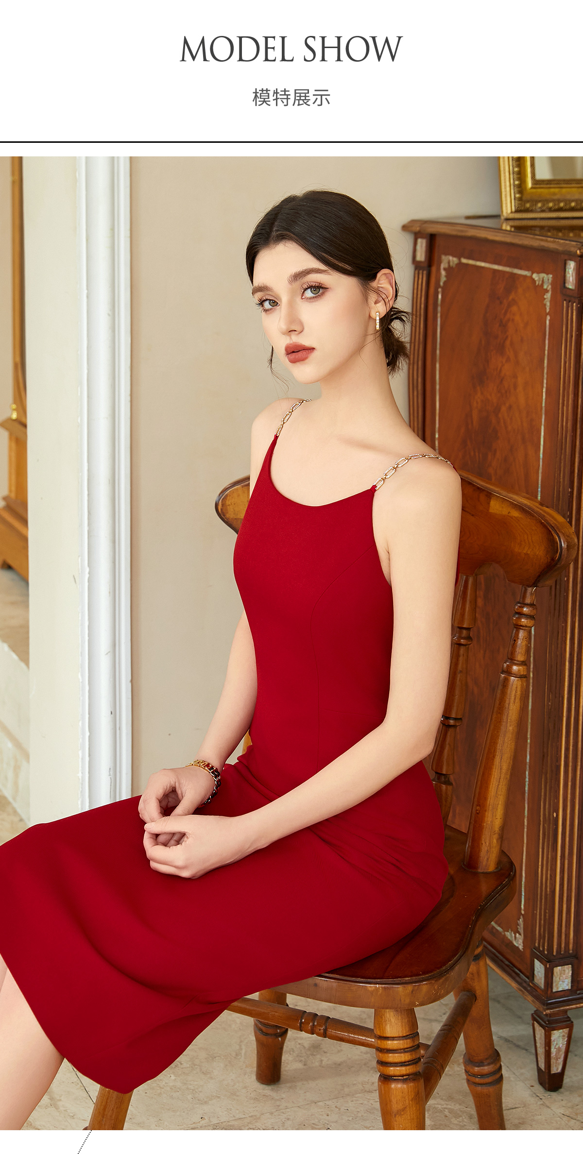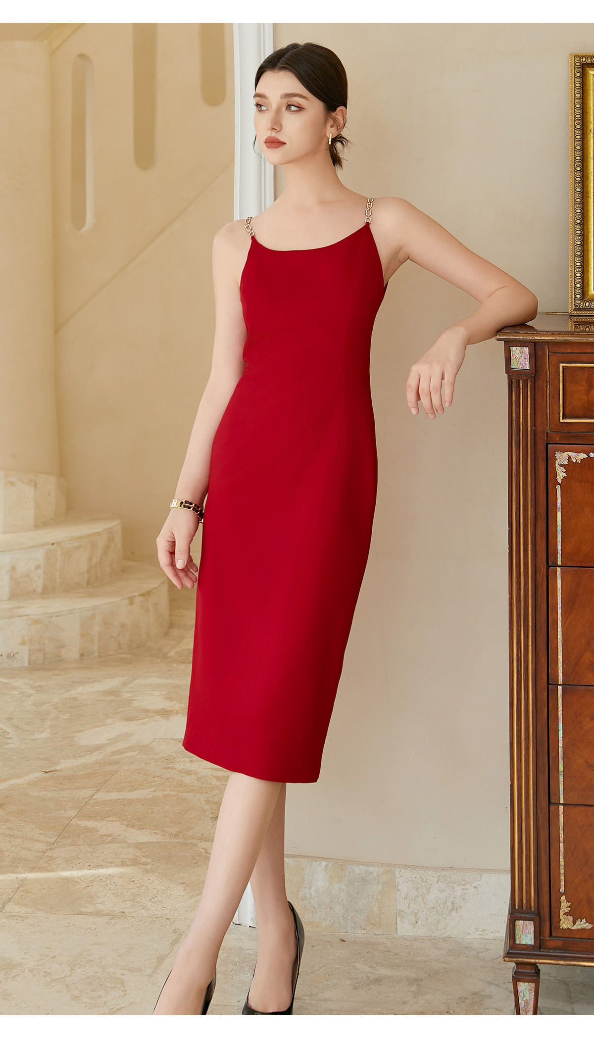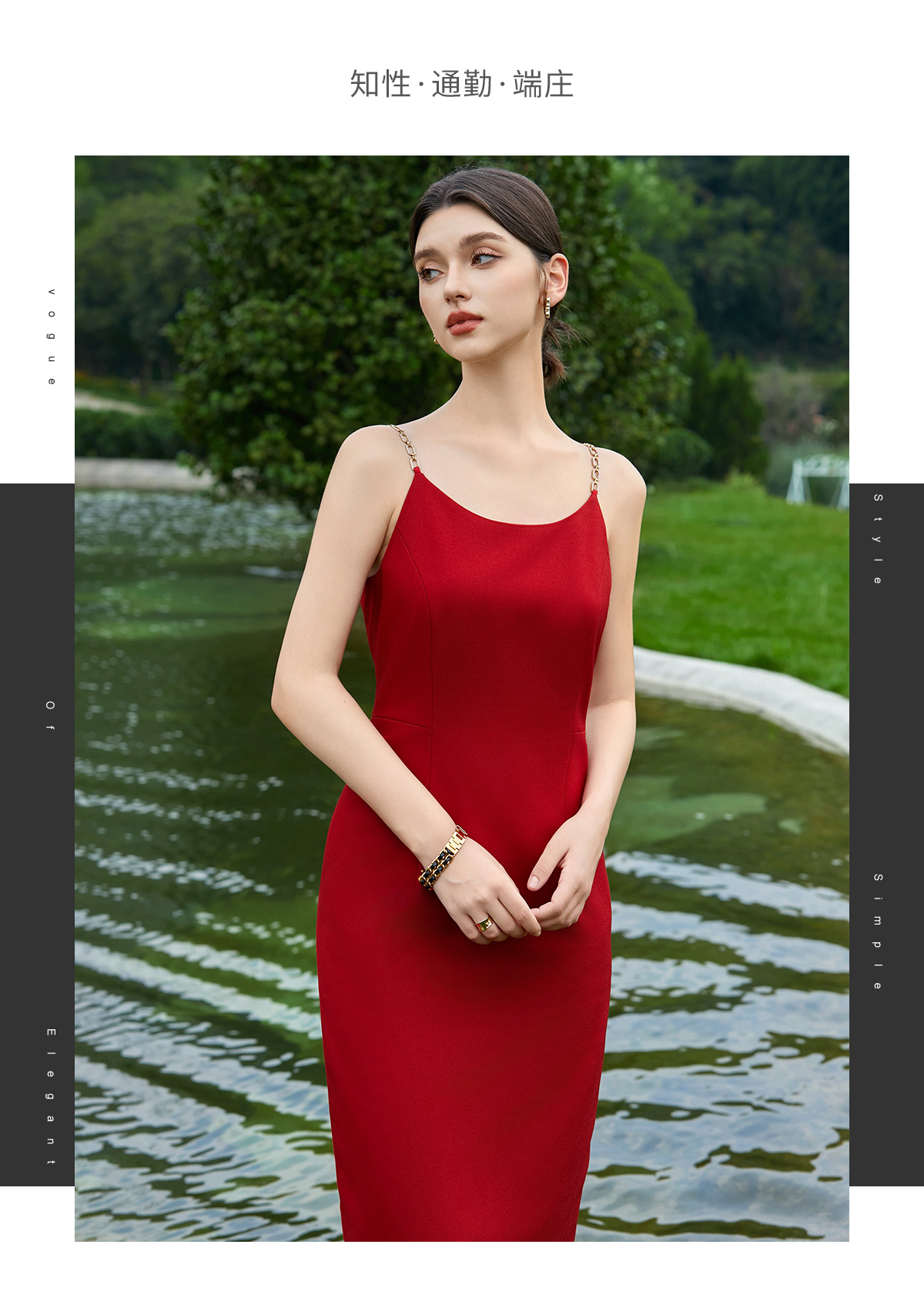 IWY/红色收腰显瘦吊带连衣裙修身中长款御姐范百搭包臀职业连衣裙Q1192