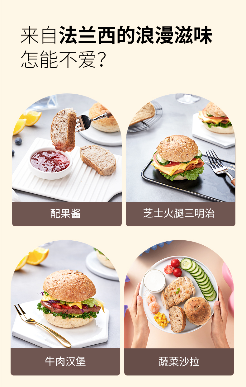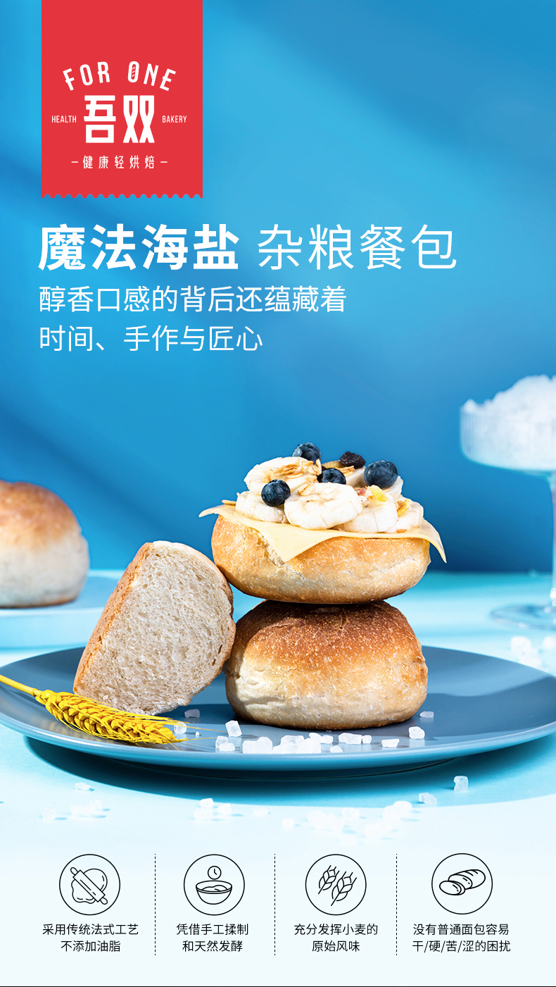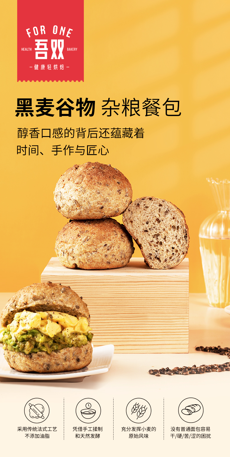 【代发】吾双面包汉堡胚餐包早餐 黑麦谷物/魔法海盐 冷冻品发货后不接受拦截