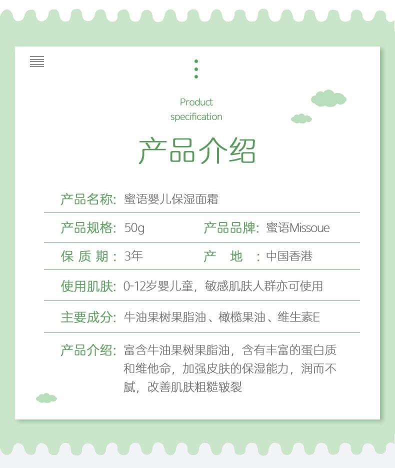 中国香港蜜语婴儿保湿面霜50g/110003 一瓶多效滋养保湿亲肤好吸收