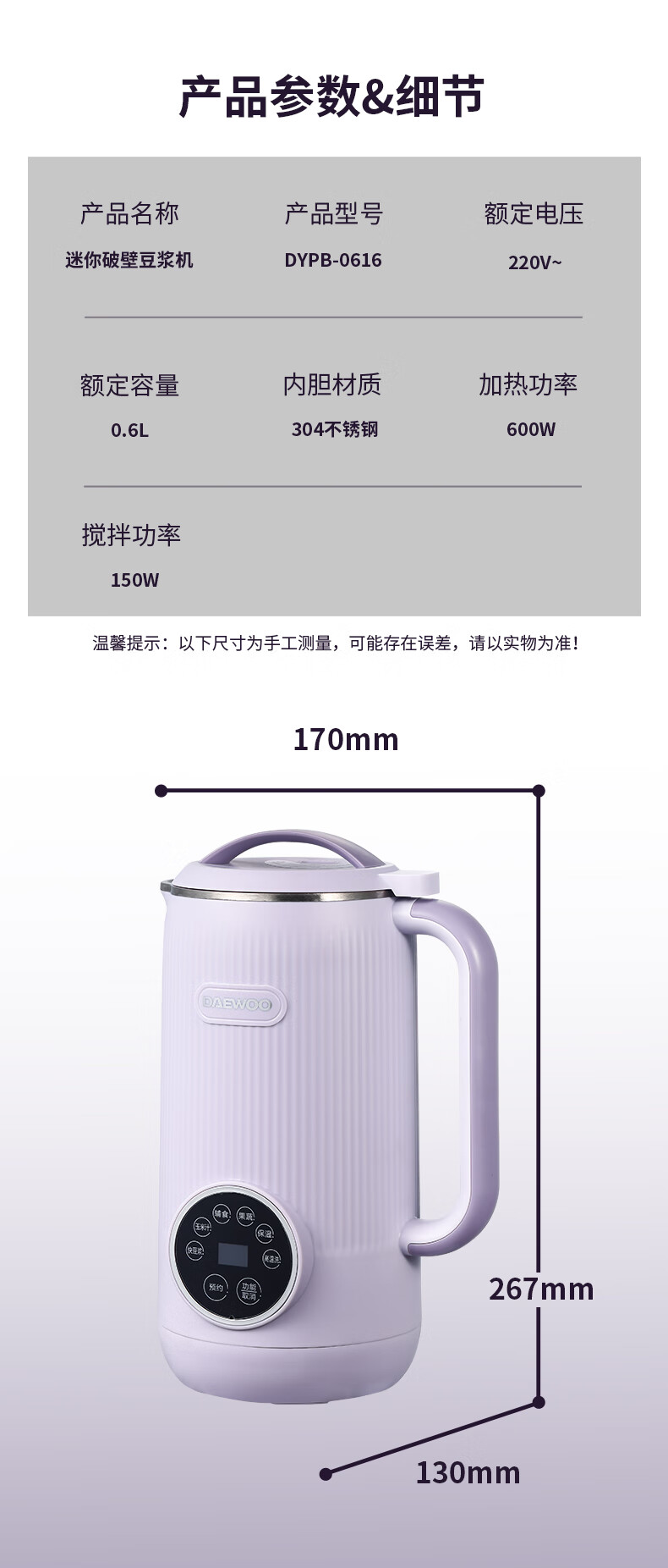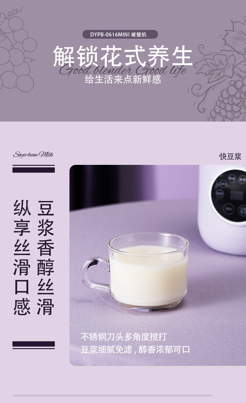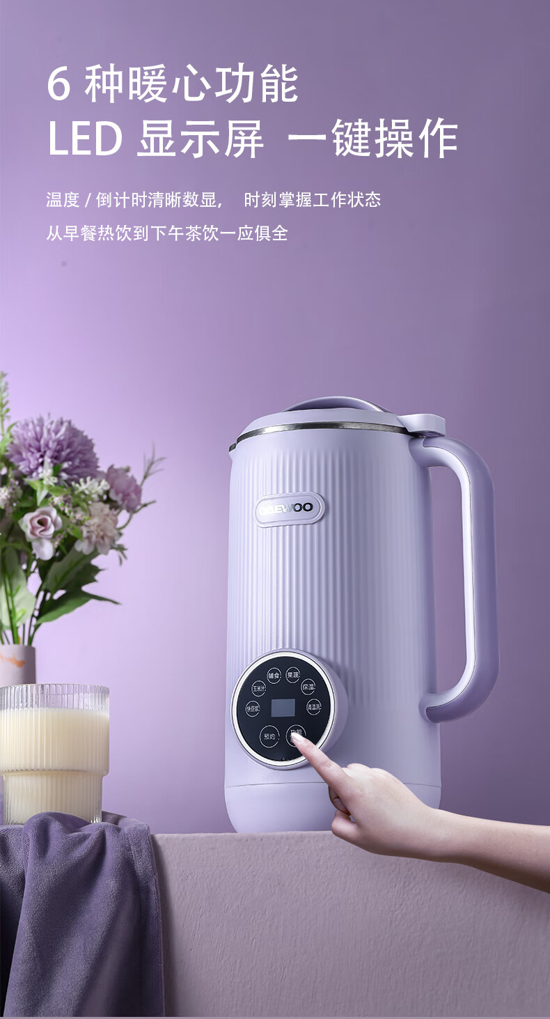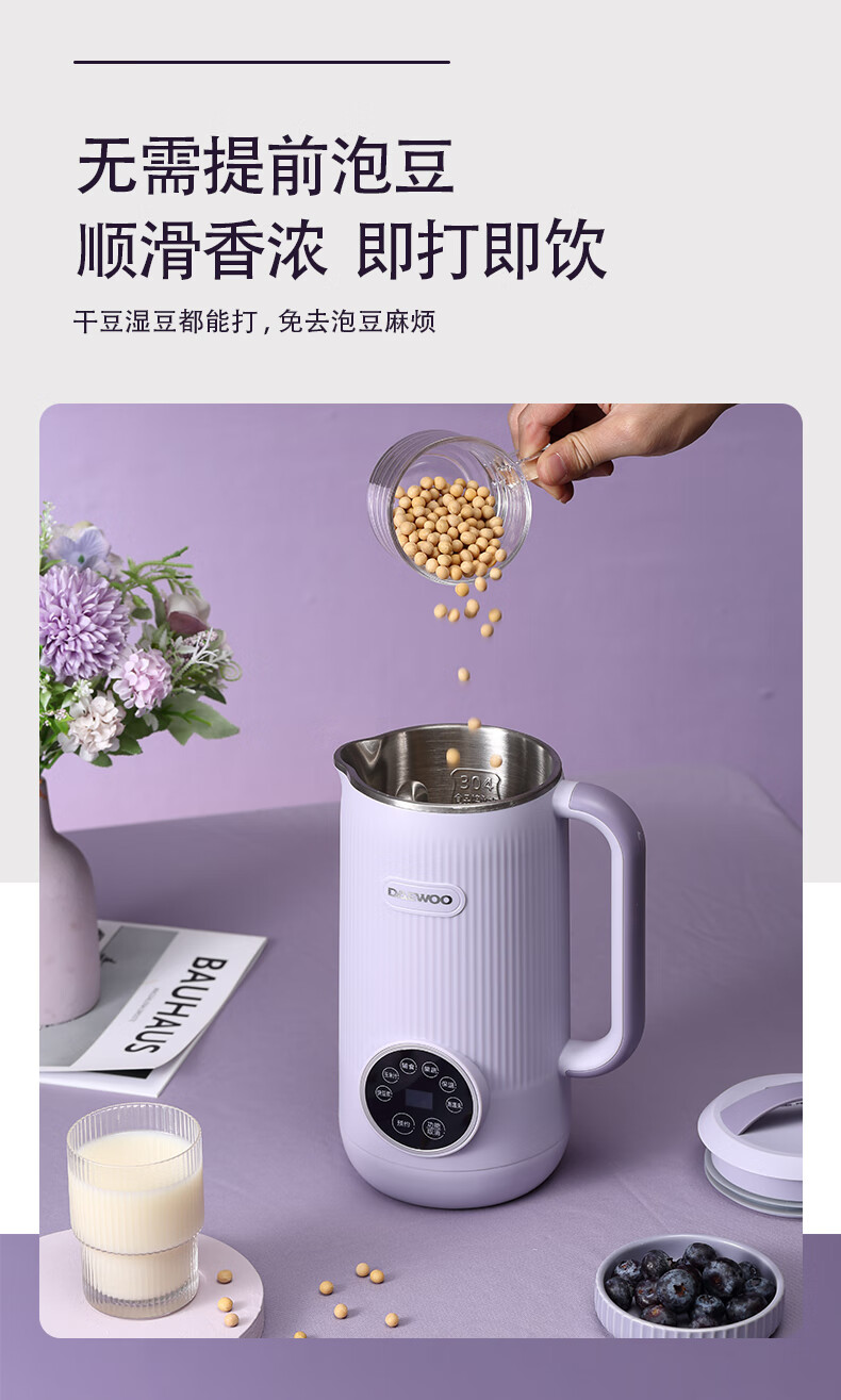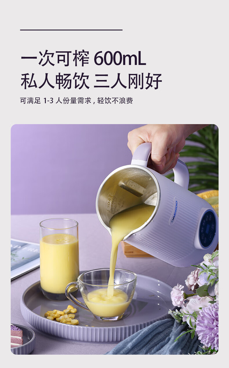 大宇(DAEWOO) 家用辅食多功能全自动迷你破壁豆浆机 DYPB-0616(紫色) 0.6L