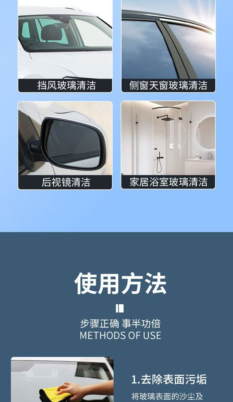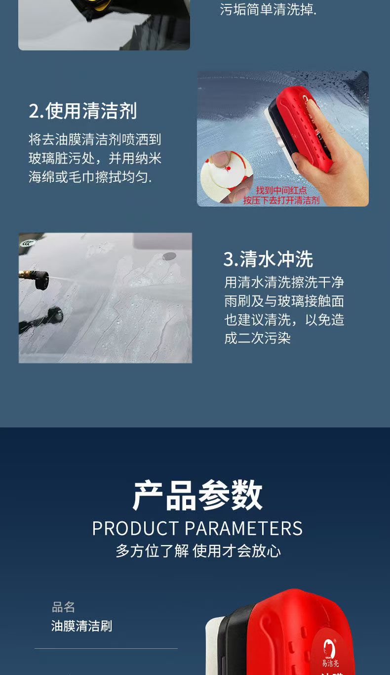 汽车玻璃油膜擦去除强力去污净前挡侧窗后视镜镀膜剂清洁刷