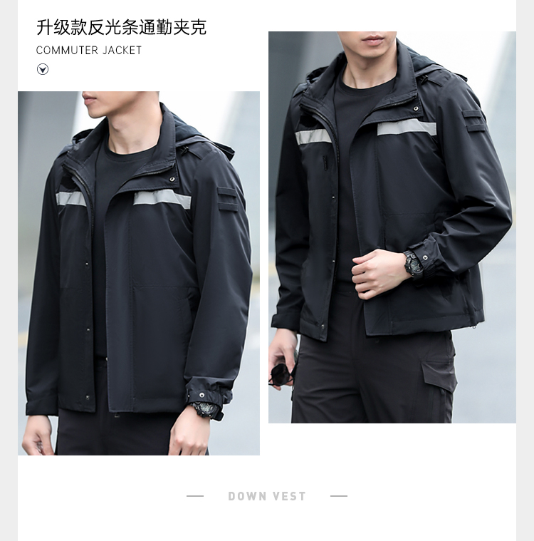 【实付满399送保温杯】【升级款反光条通勤夹克】男款连帽透气 户外训练防风外套
