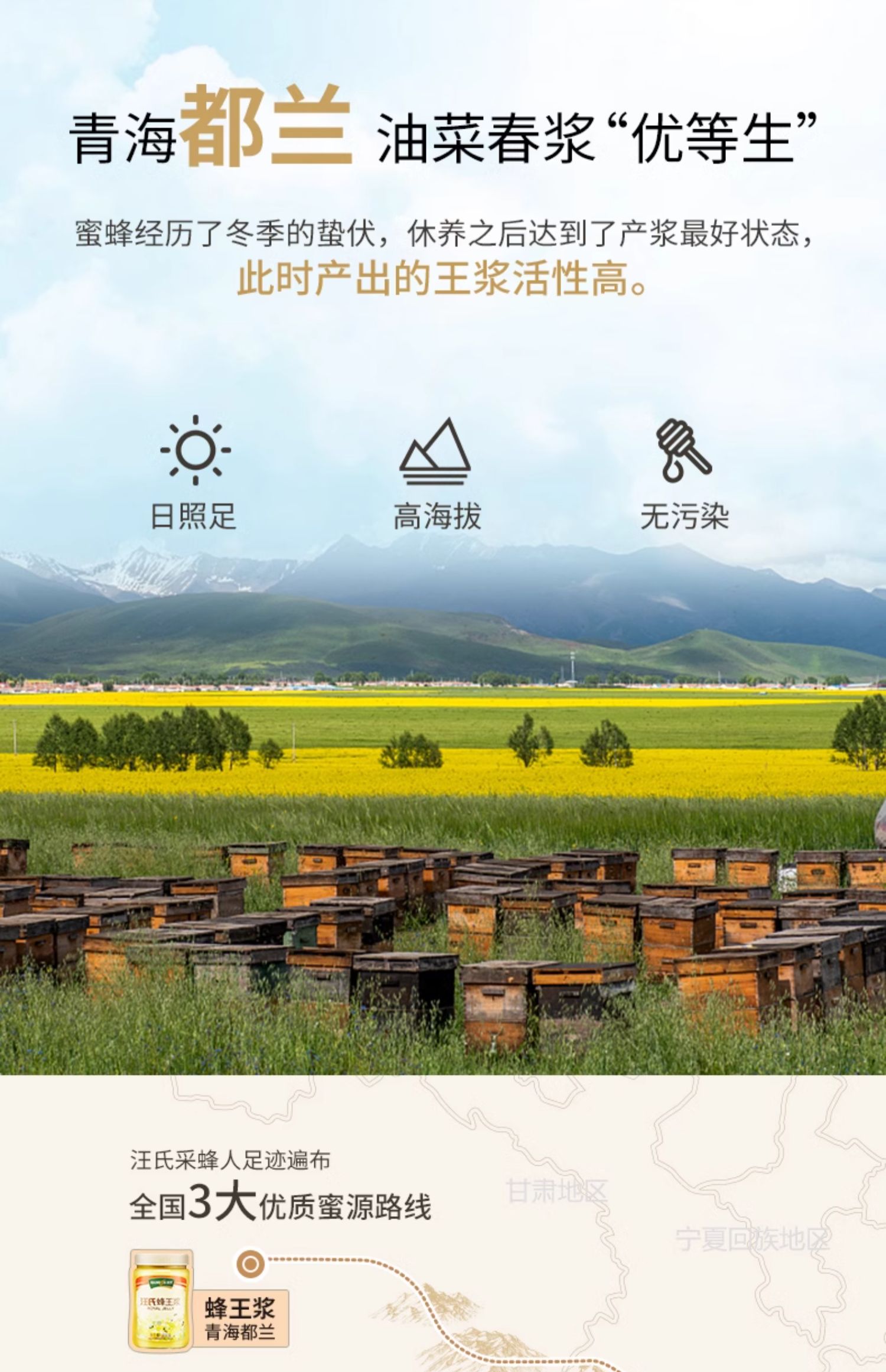 汪氏官方鲜蜂王浆 青海野生天然蜂皇浆蜂乳 顺丰