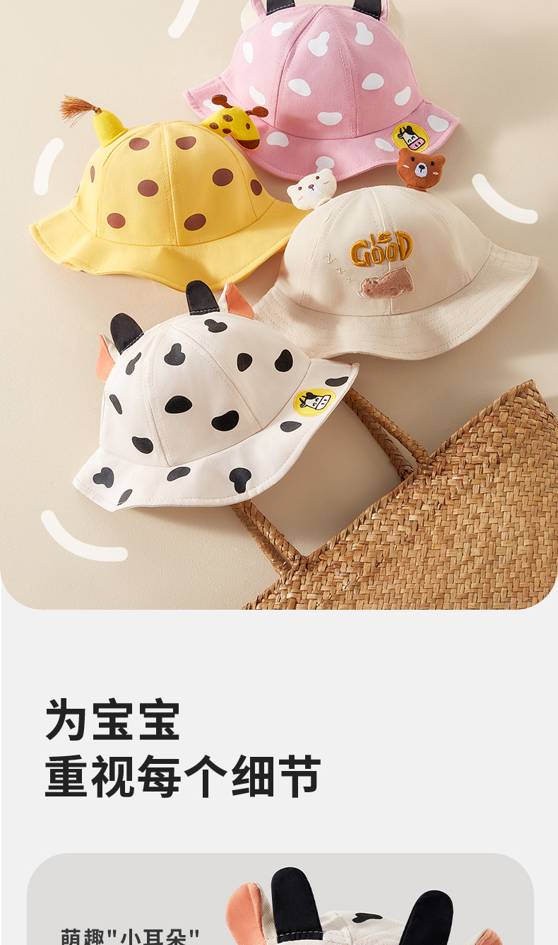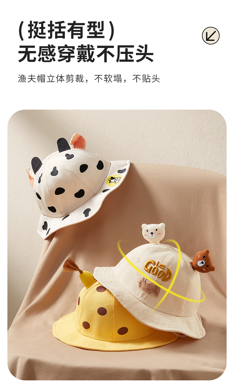 儿童宝宝帽子婴儿春夏款透气防晒帽遮阳男女童渔夫婴幼儿网眼(纯棉材质洗后缩水介意慎拍)