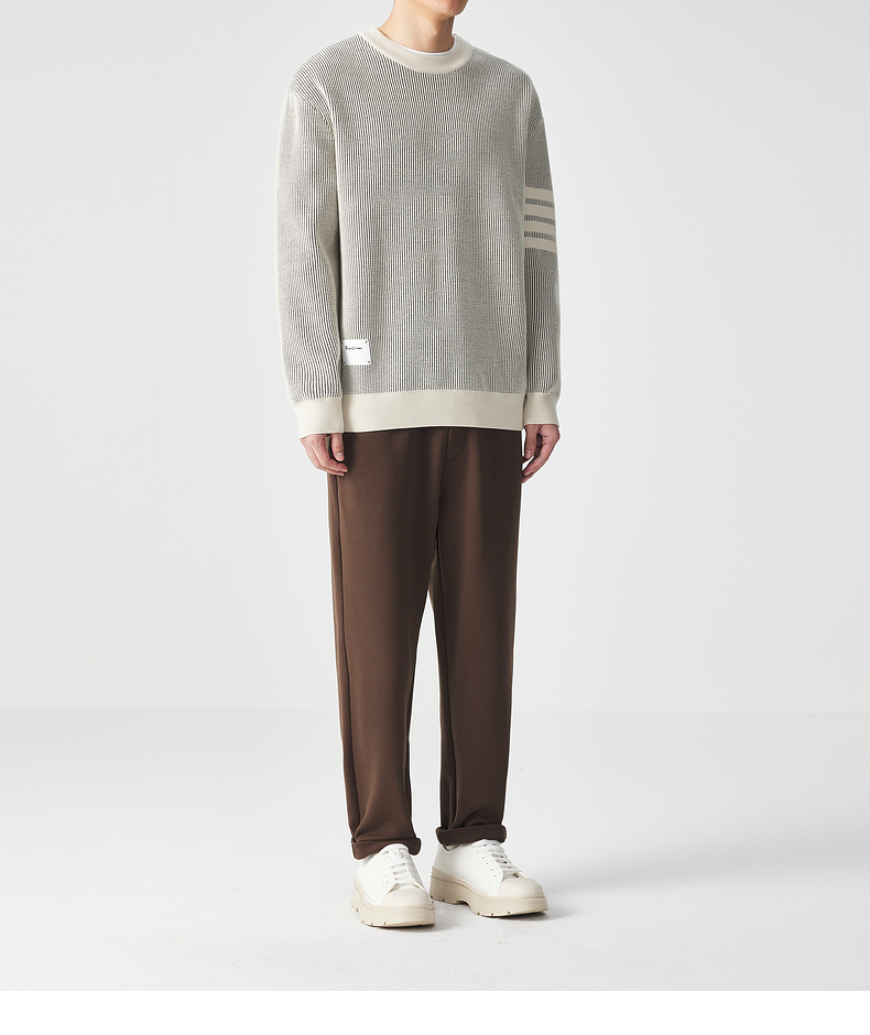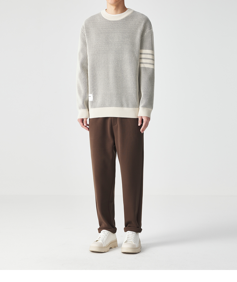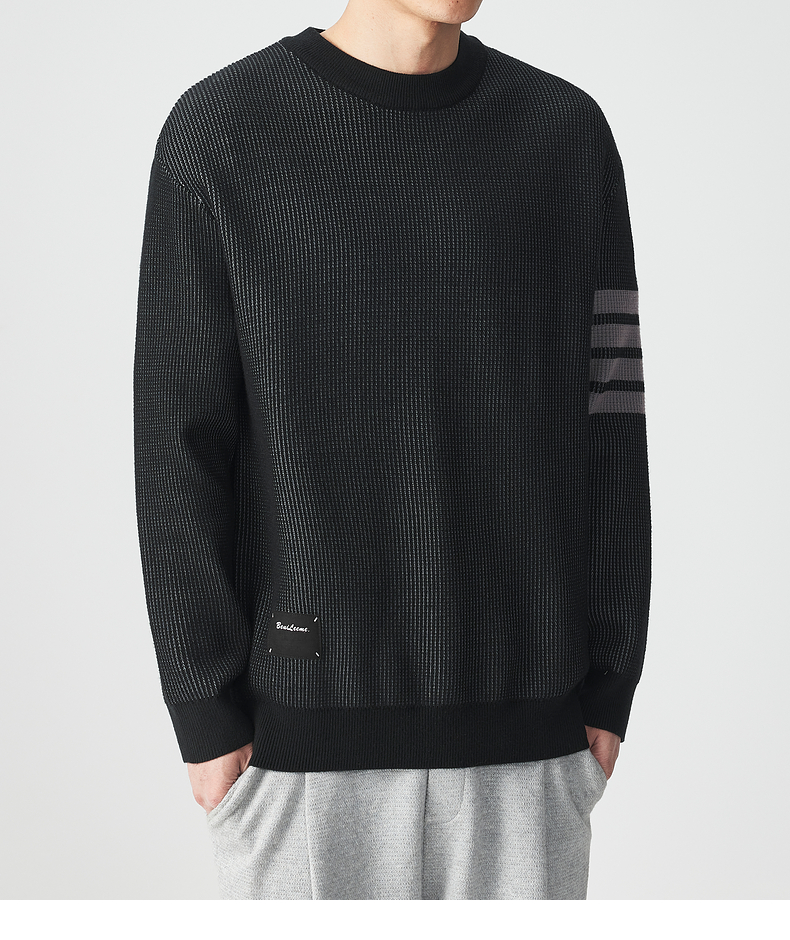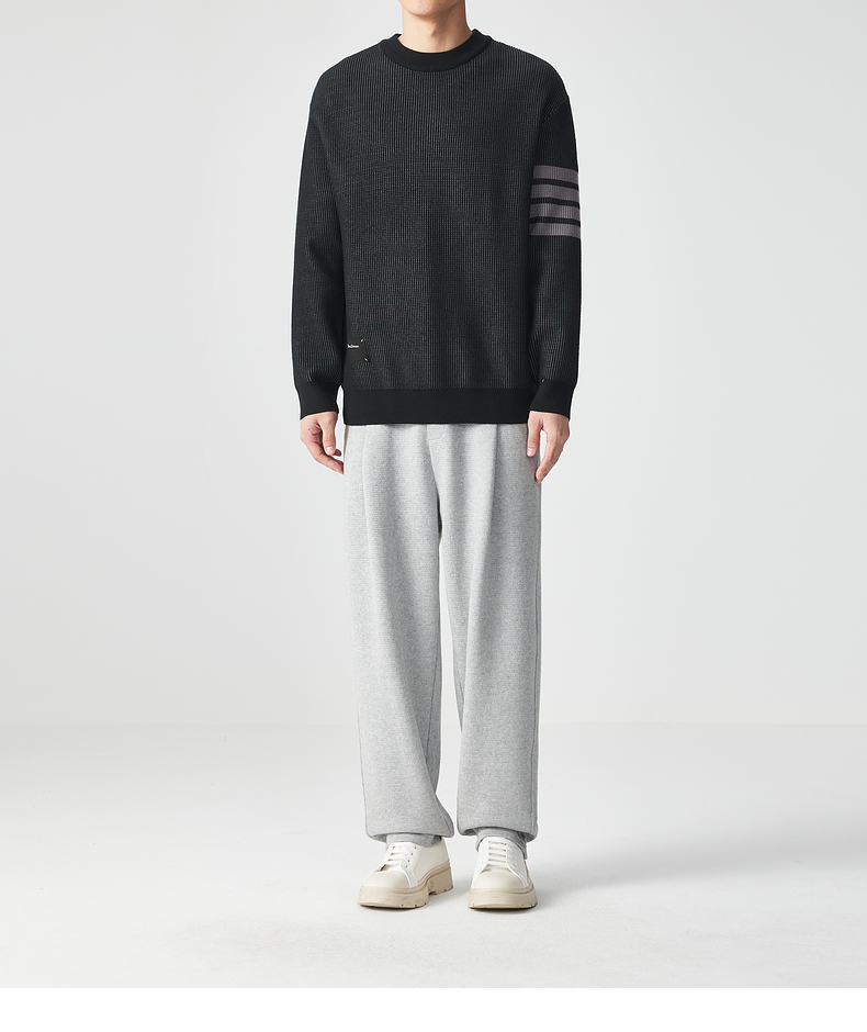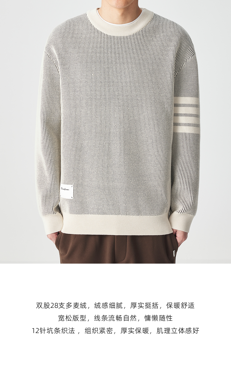 墨麦客男装多麦绒撞色圆领针织衫冬季新款条纹提花加厚宽松毛衣男
