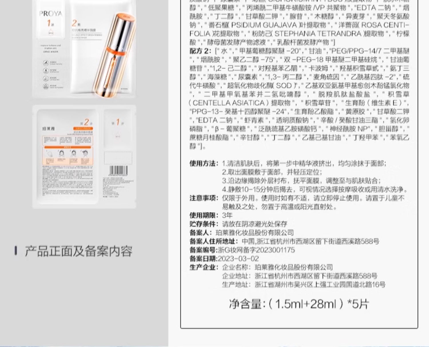 珀莱雅双抗焕亮精华面膜5片 3.0版 (240247)
