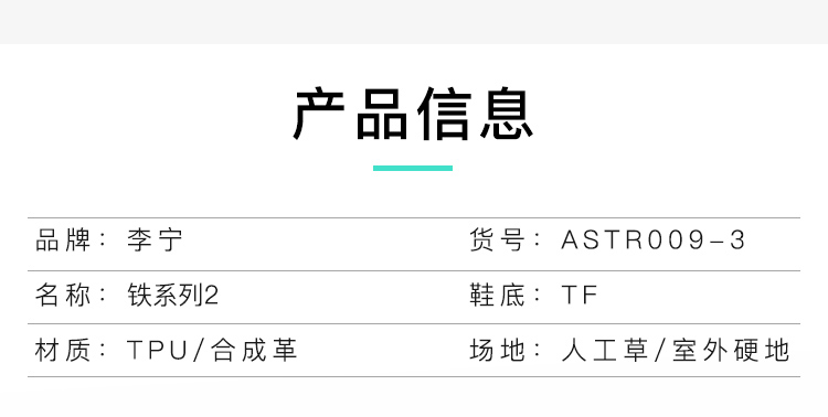 小李子:正品Lining/李宁铁系列2 TF碎钉人工草足球鞋男ASTR009-3