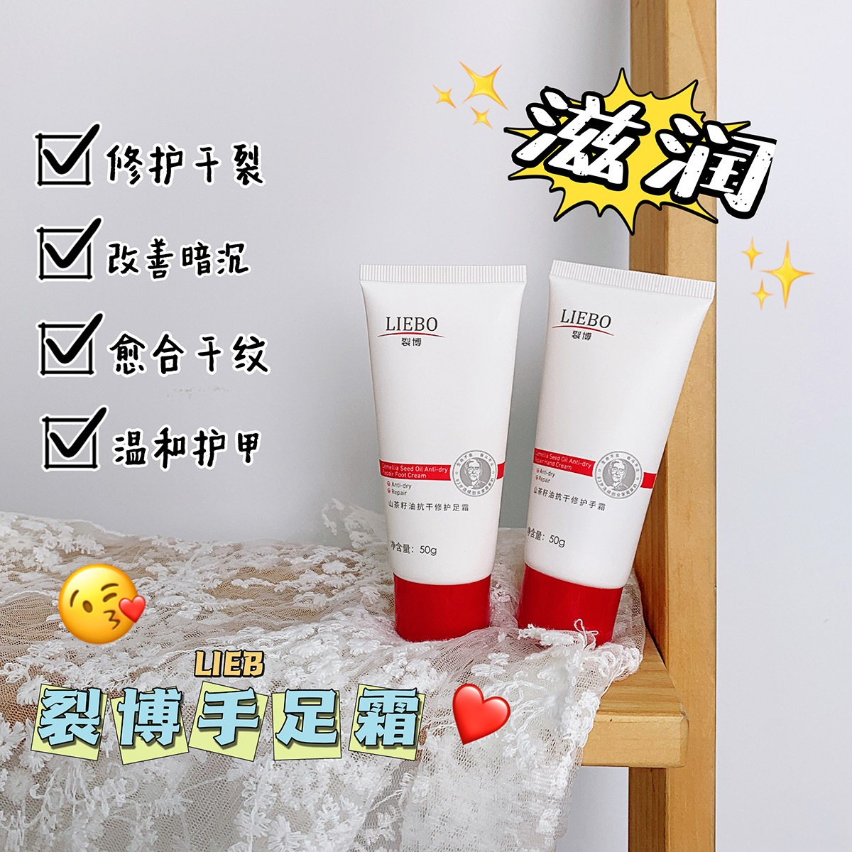 【名称】裂博山茶籽油抗裂修护手霜、足霜