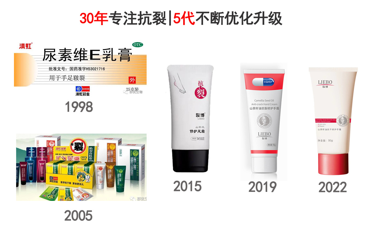 同年,滇虹药业细分手霜、足霜等系列产品,把抗裂霜从药房卖到化妆品店,成为“抗裂”药企出品的知名品牌。