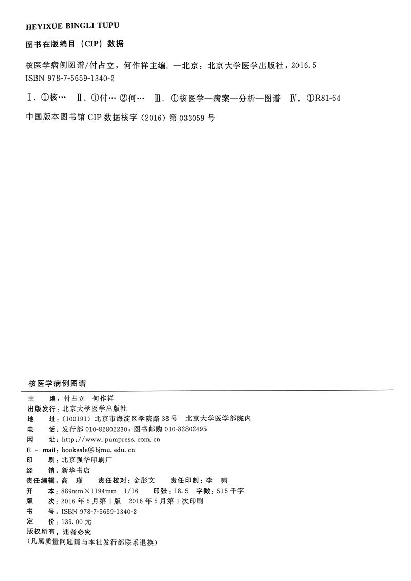 核医学病例图谱 付占立 何作祥 主编 本书通过典型病例与影像使您认识疾病并积累临床经验 9787565913402 北京大学医学出版社