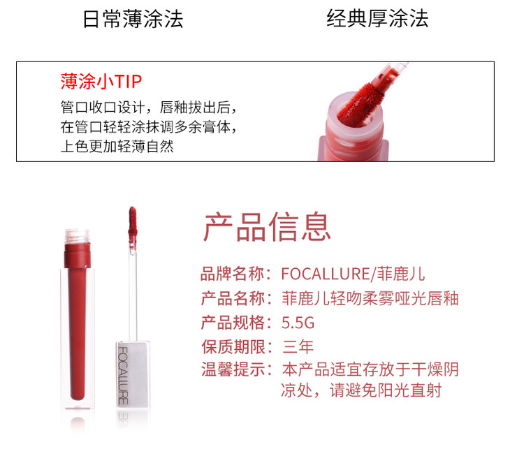 【新品】菲鹿儿水丝绒唇釉秋冬轻薄雾面口红显白裸色素颜女