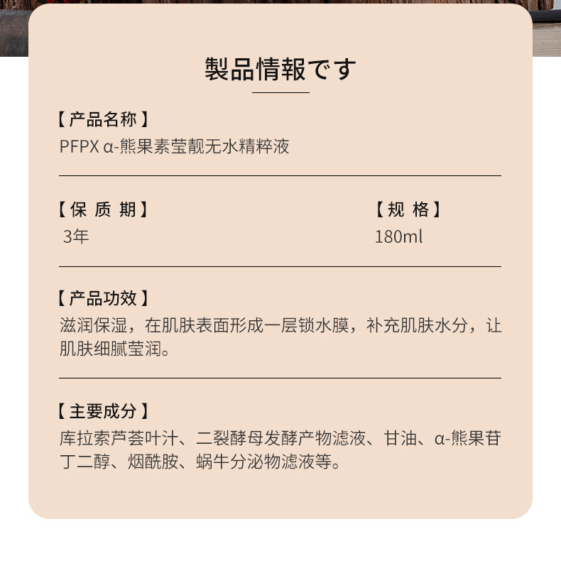【沁透补水❗淡化暗沉】PFPX-a-熊果素莹靓无水精粹液滋润补水保湿熊果苷精华爽肤水。xa