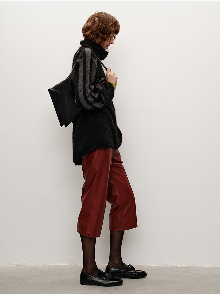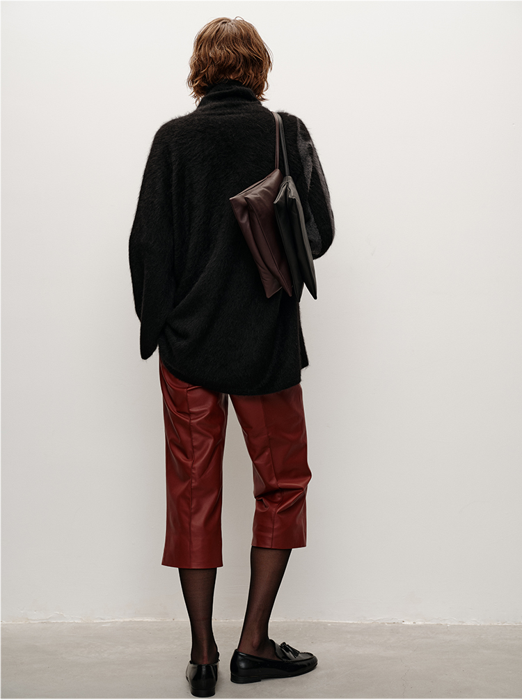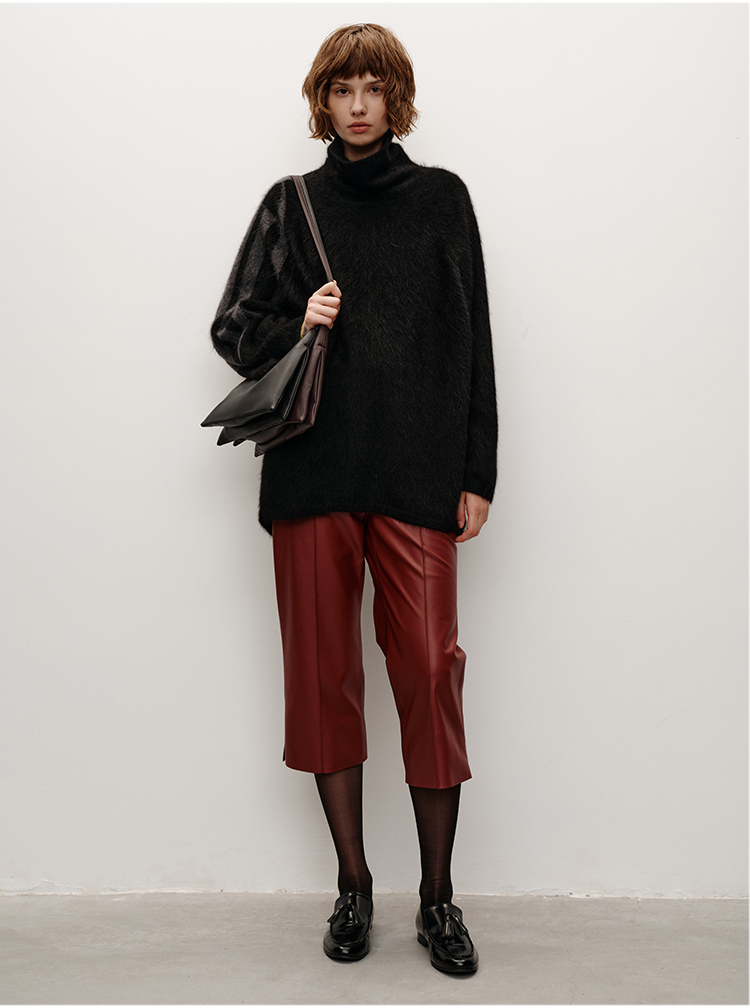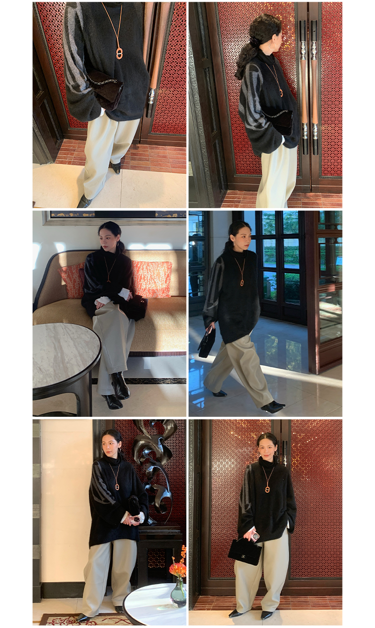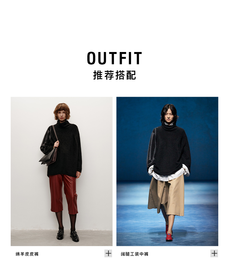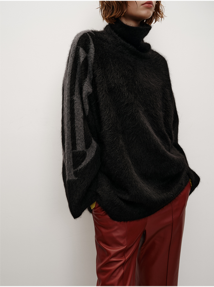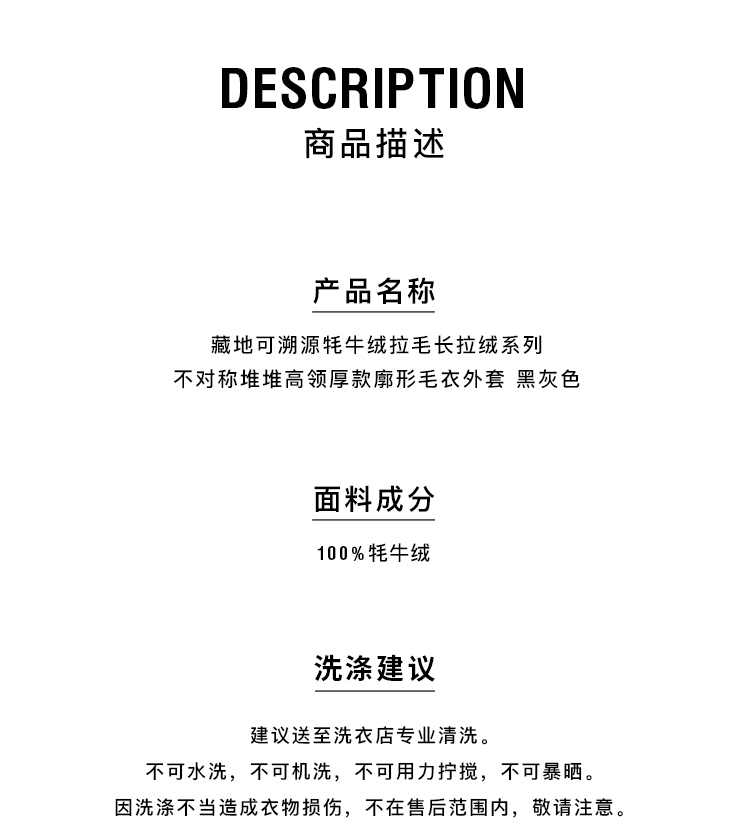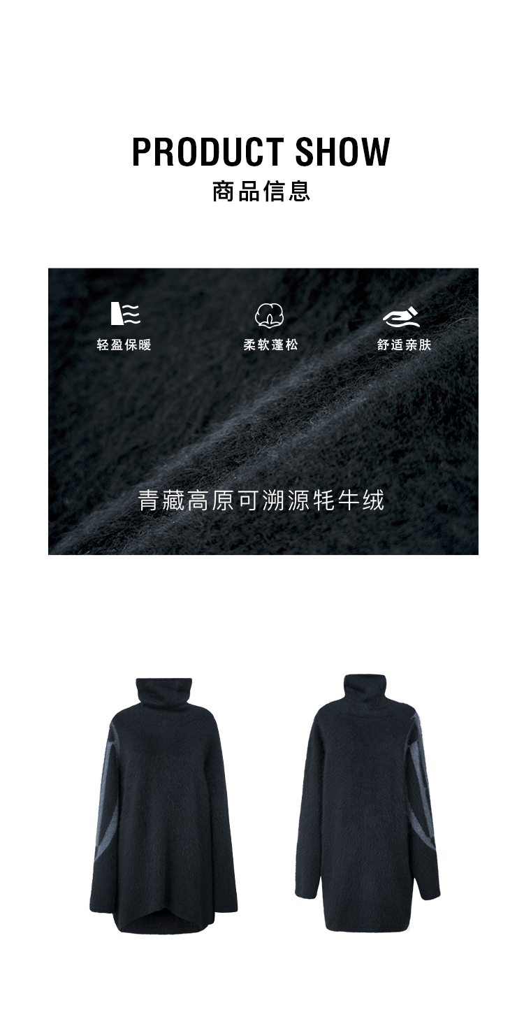 HIDEMI 大秀款藏地可溯源牦牛绒拉毛长拉绒系列不对称堆堆高领厚款廓形毛衣外套