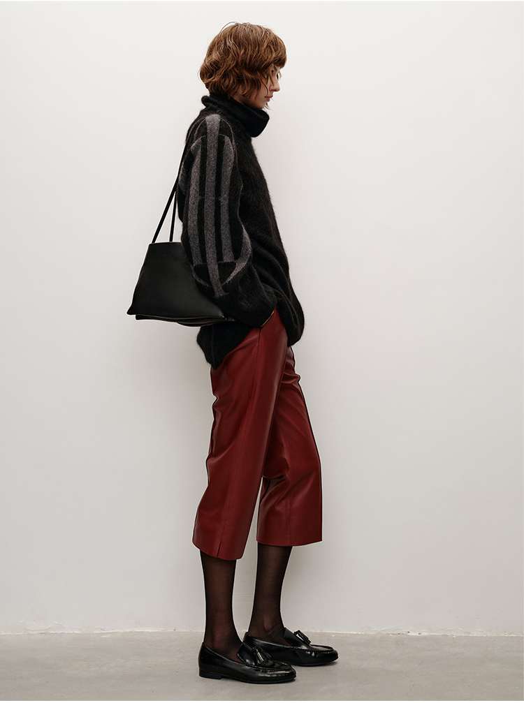 HIDEMI 美利奴超细羊毛立体交叉打结款V领修身毛衣 原白色/深摩卡/黑色