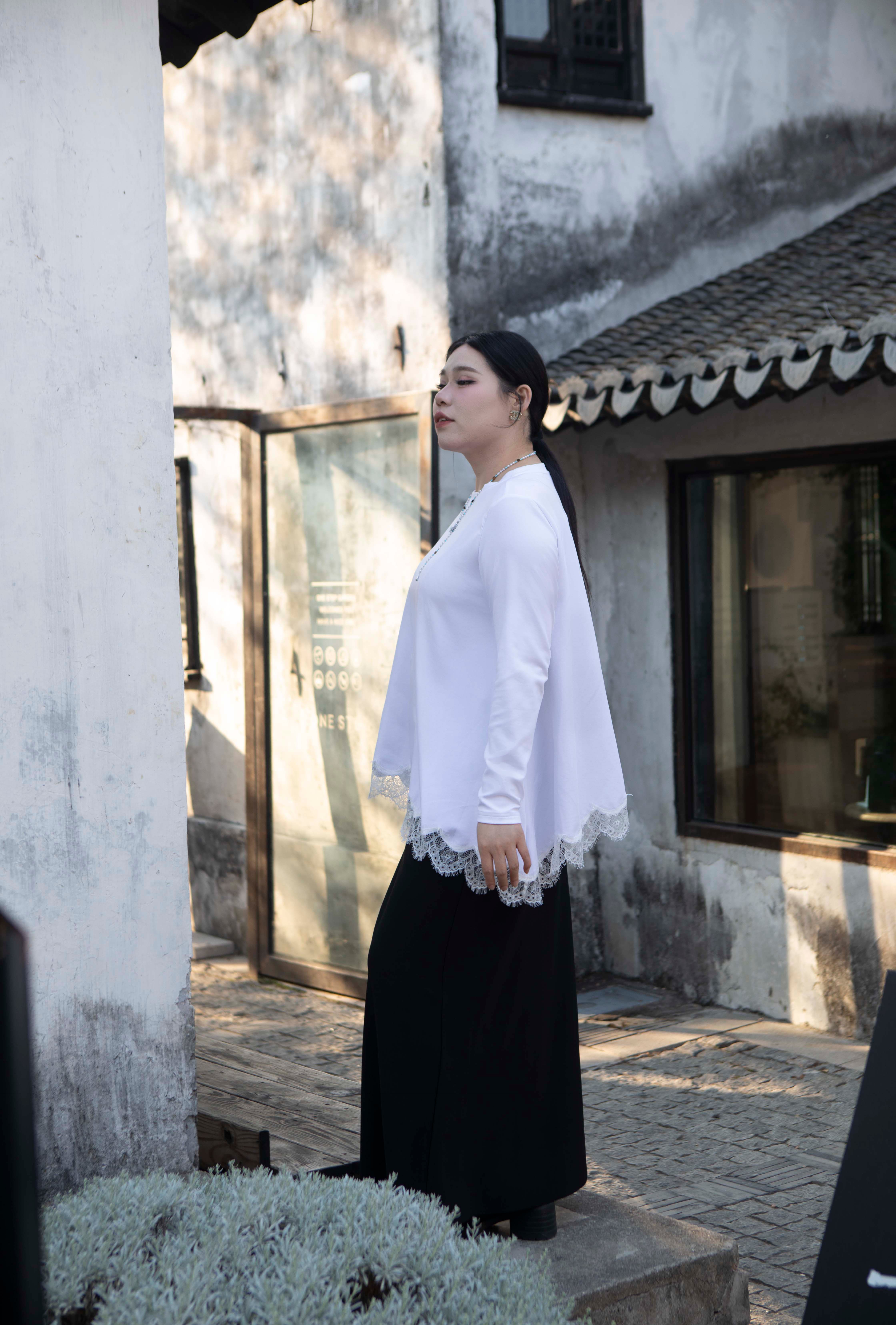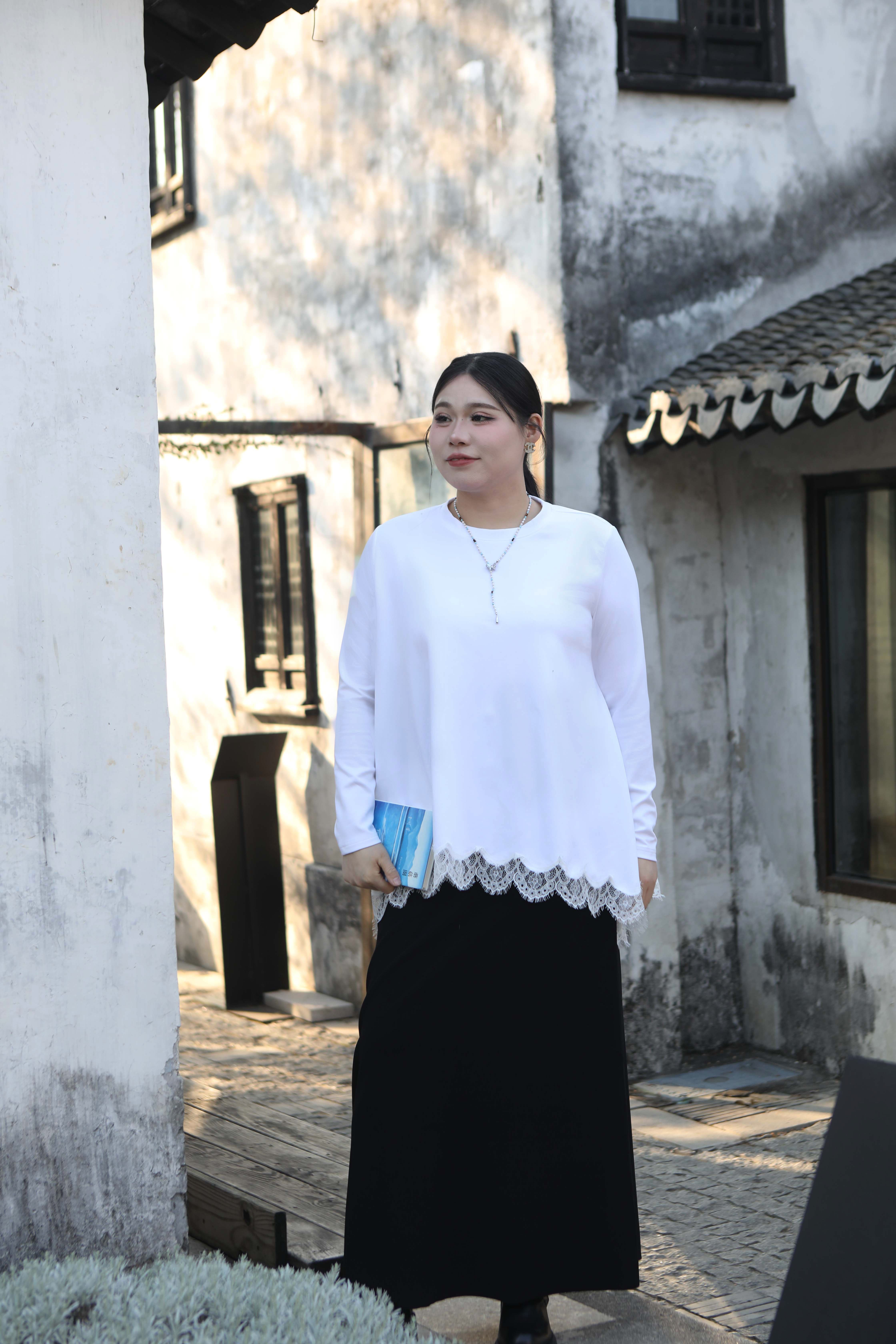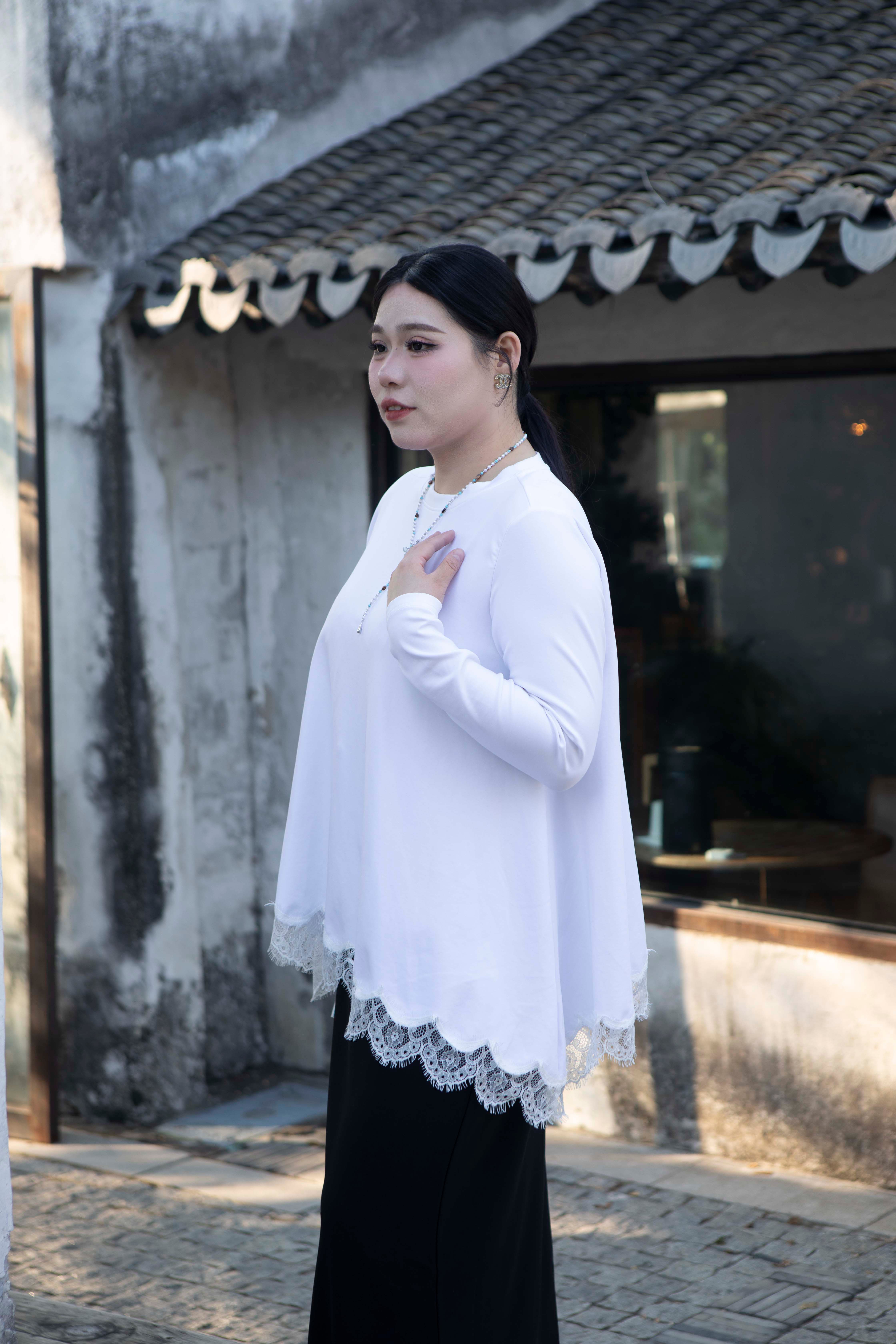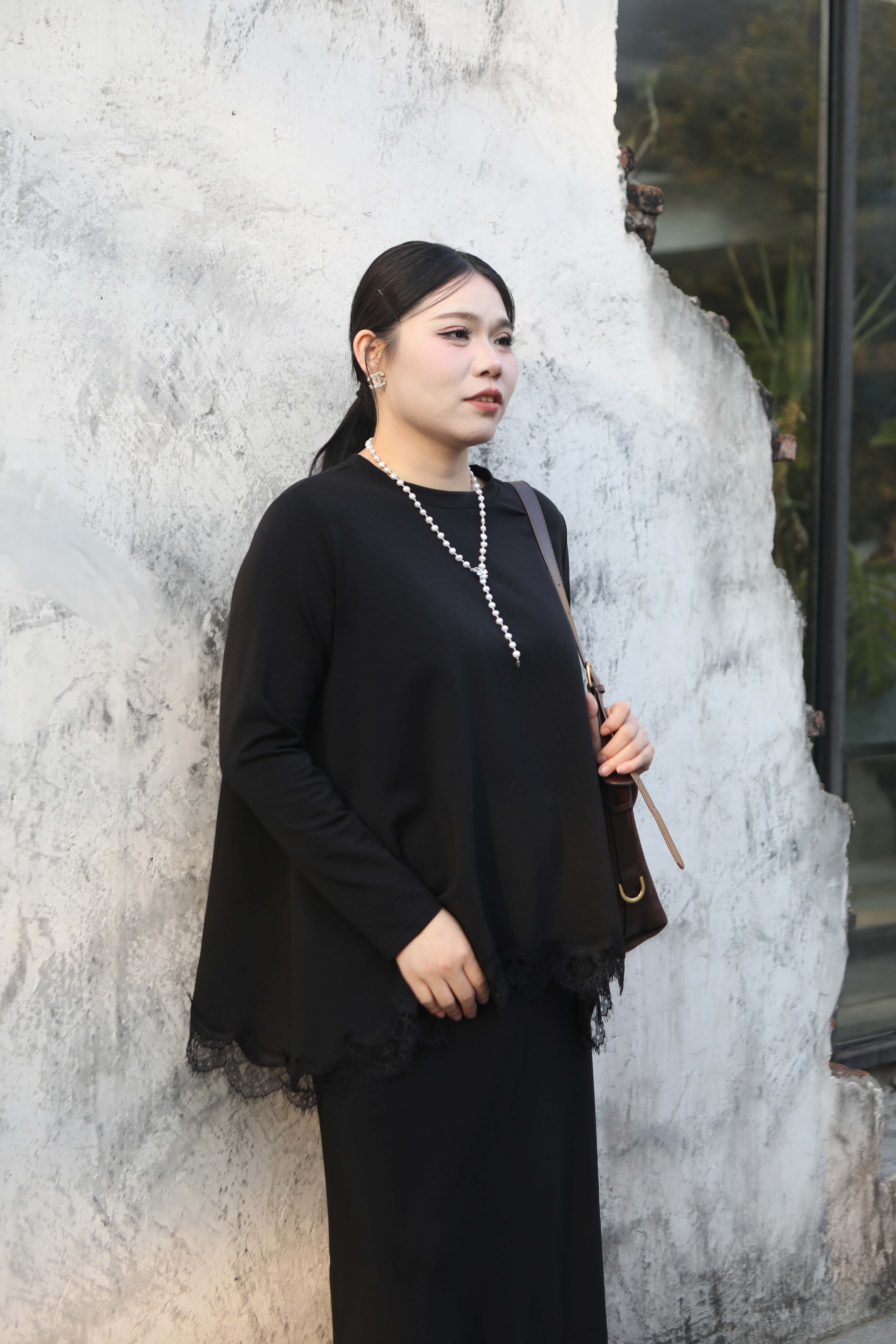 一周发货【薄绒蕾丝花边套头衫】「浪漫蕾丝边」软fufu莱塞尔套头衫|弧形裁切自带层次感,宽松衣身藏肉绝了!!!韩国出口款,成分莱赛尔29% 棉29% 聚酯纤维30%氨纶12%