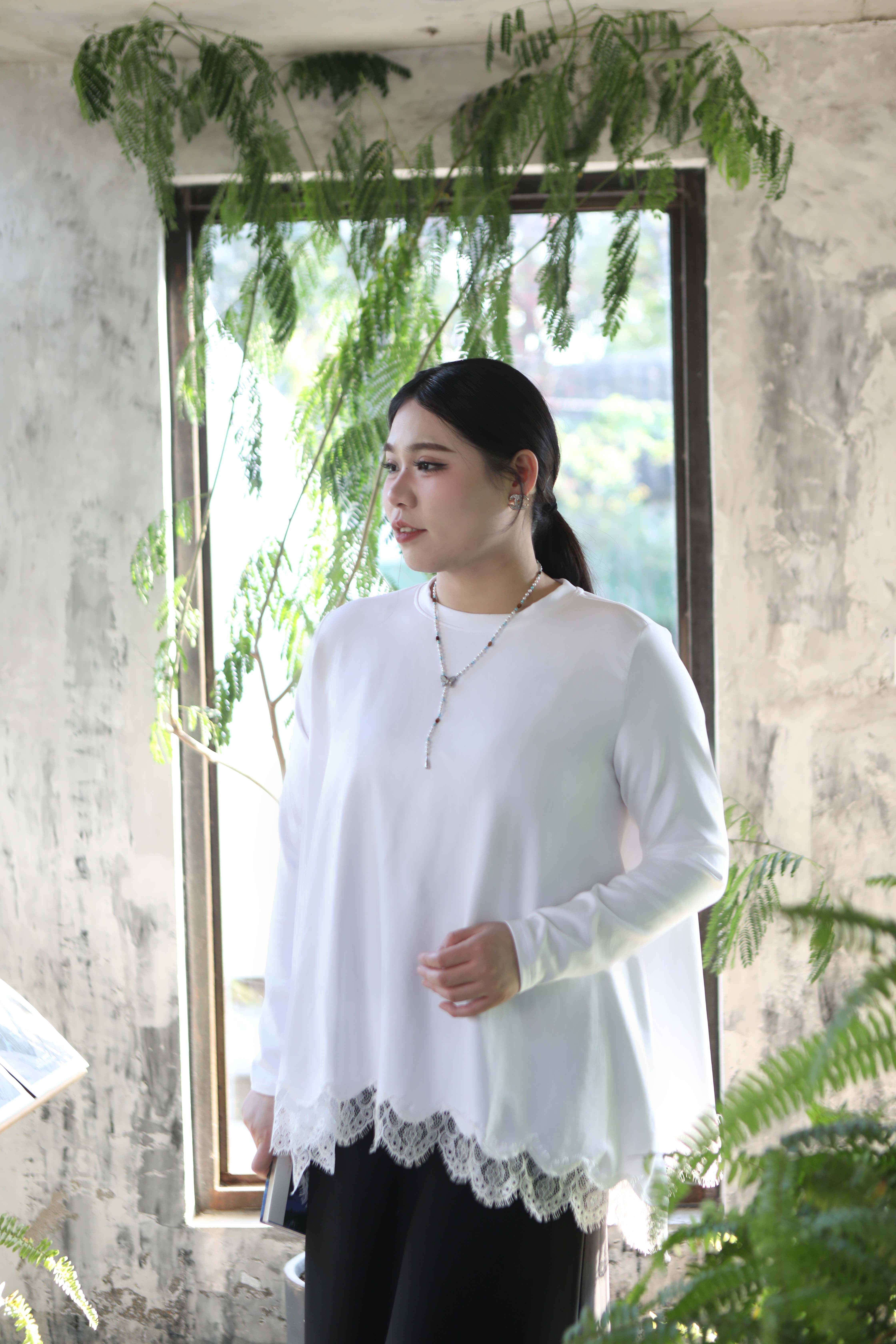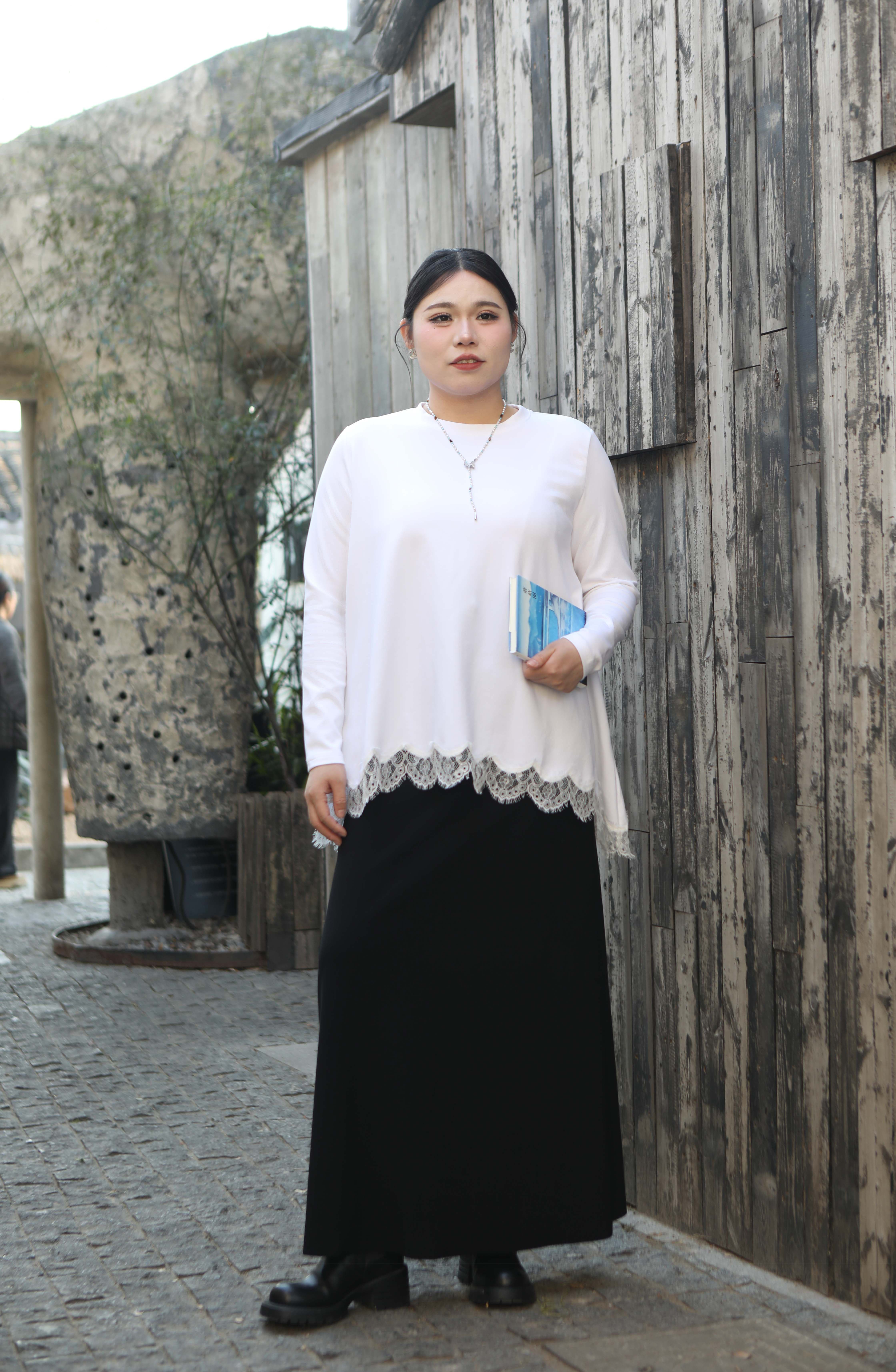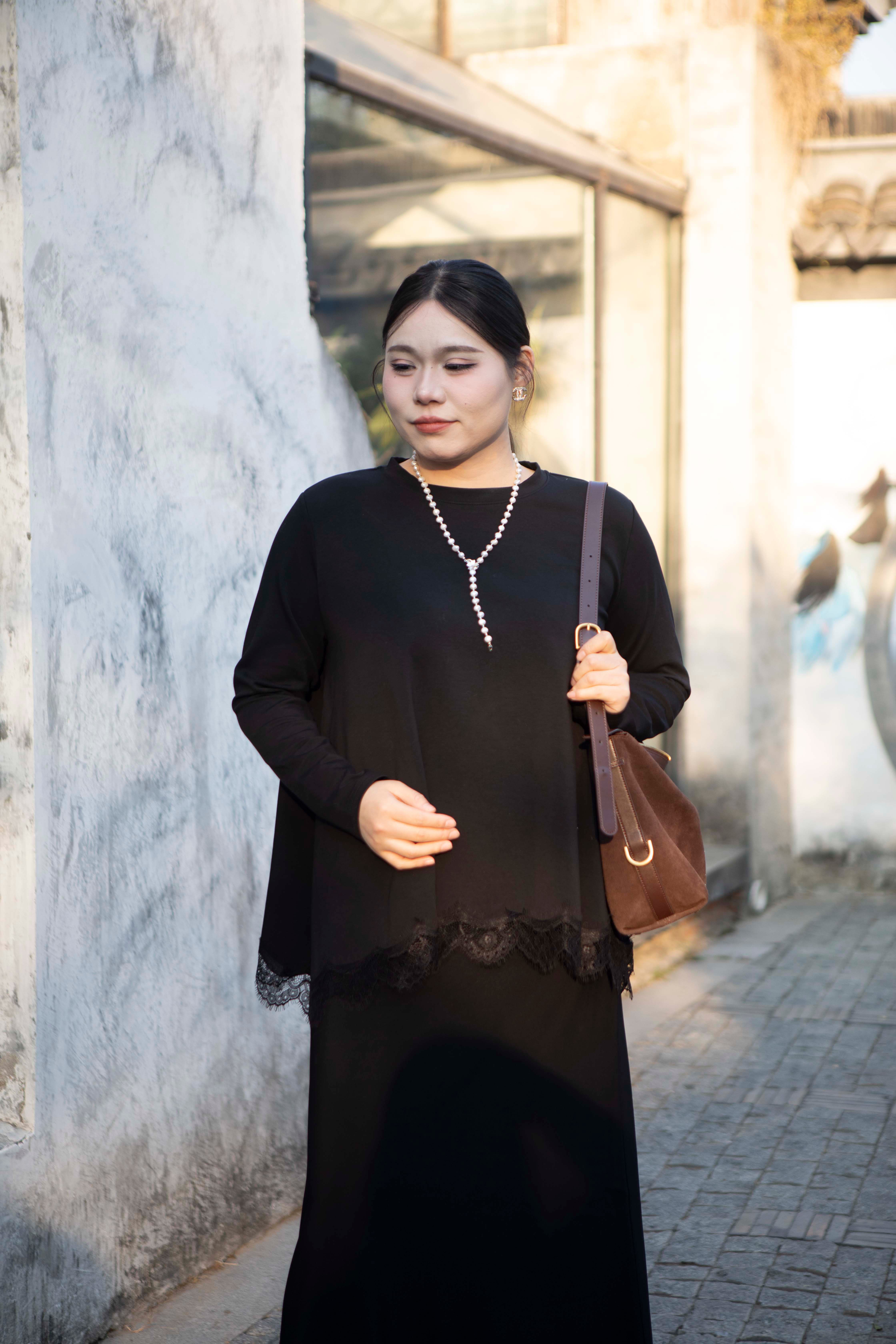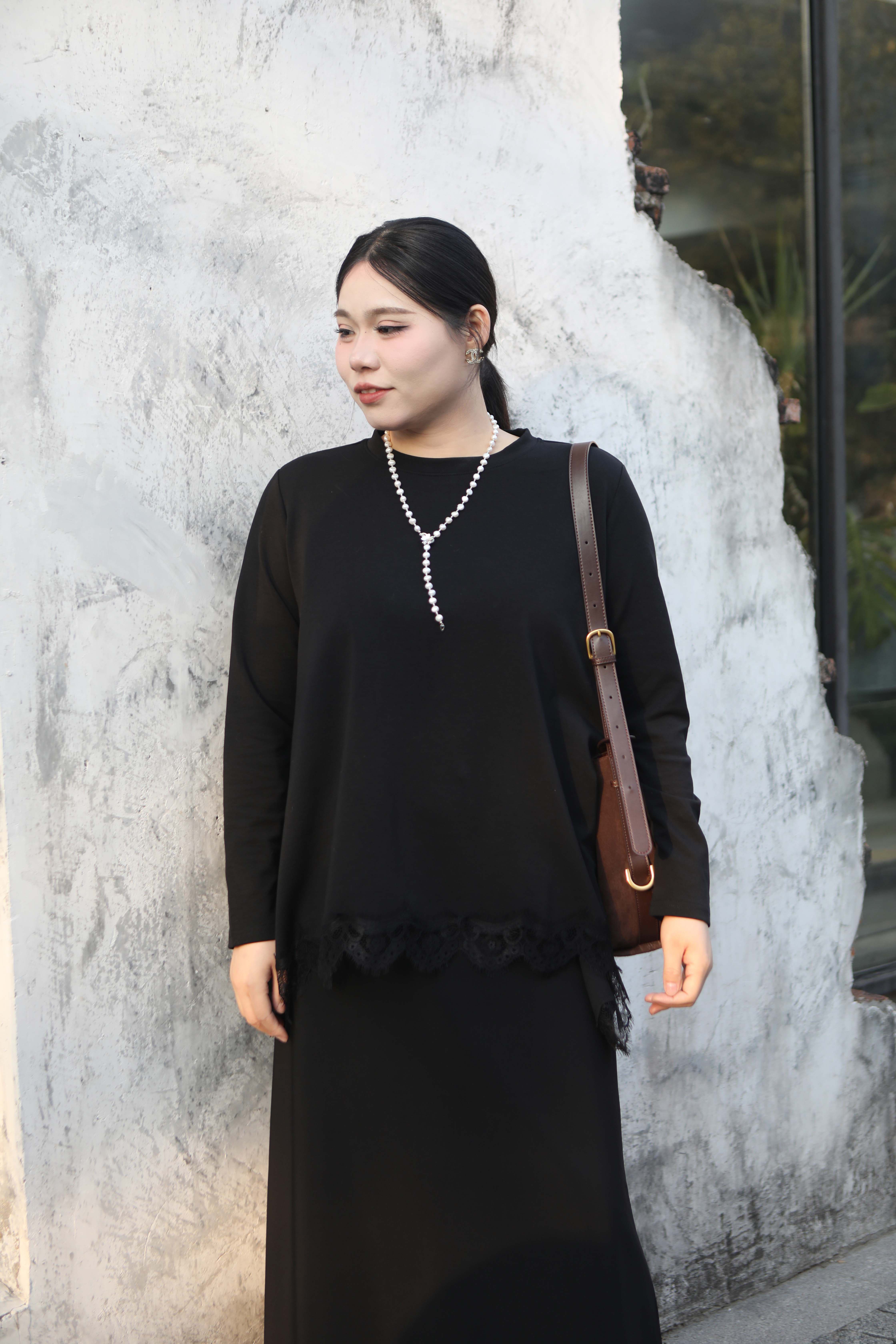 一周发货【薄绒蕾丝花边套头衫】「浪漫蕾丝边」软fufu莱塞尔套头衫|弧形裁切自带层次感,宽松衣身藏肉绝了!!!韩国出口款,成分莱赛尔29% 棉29% 聚酯纤维30%氨纶12%