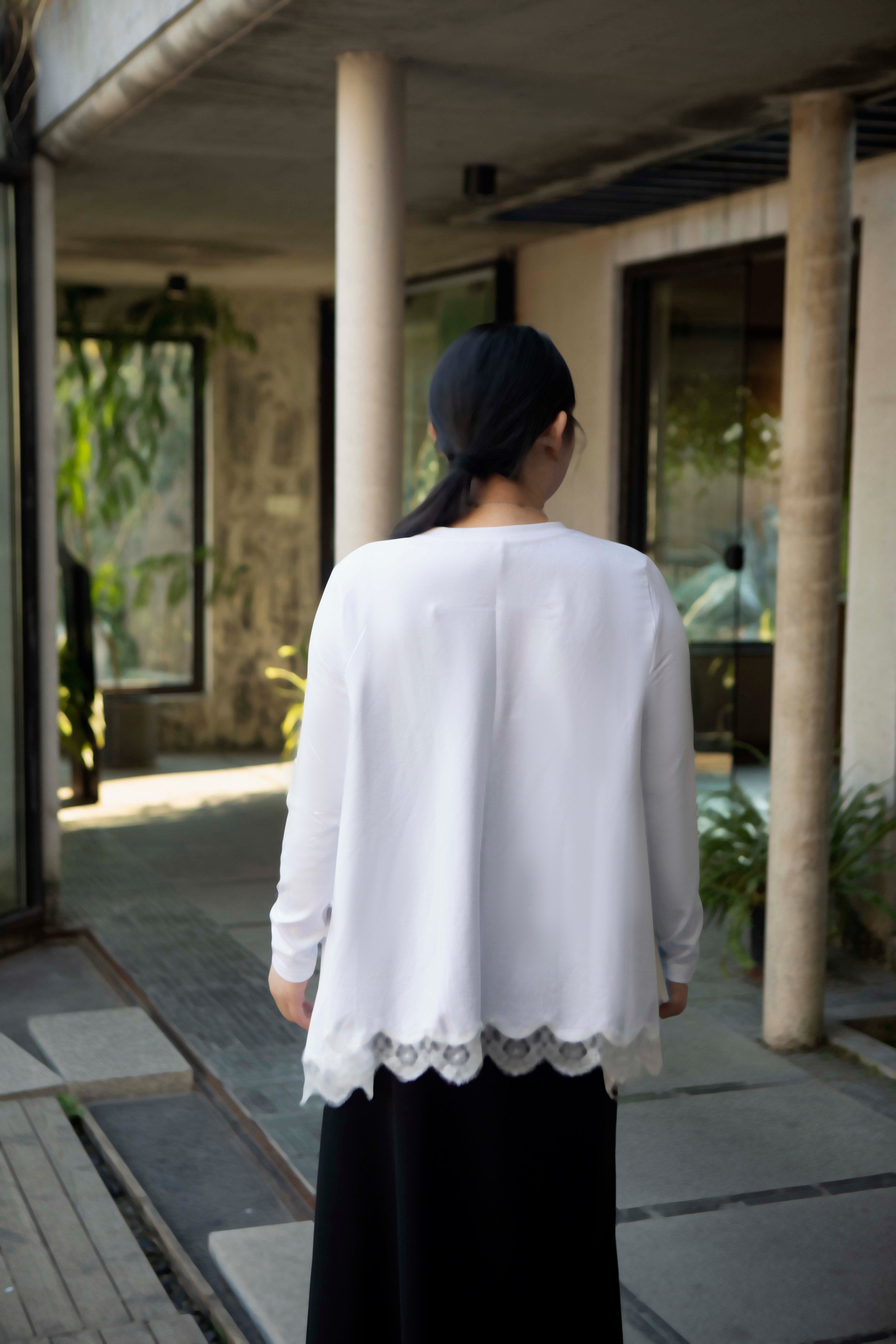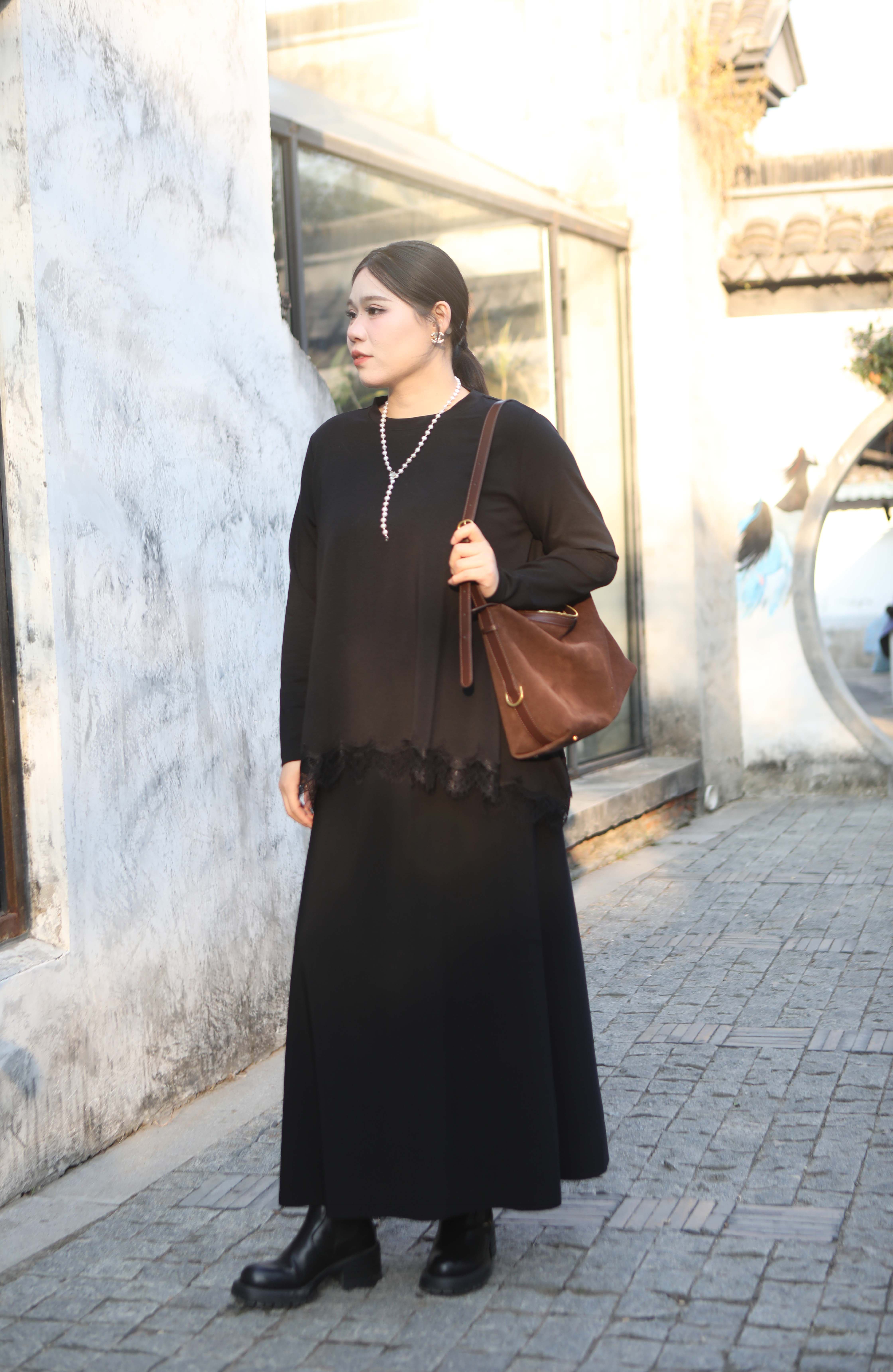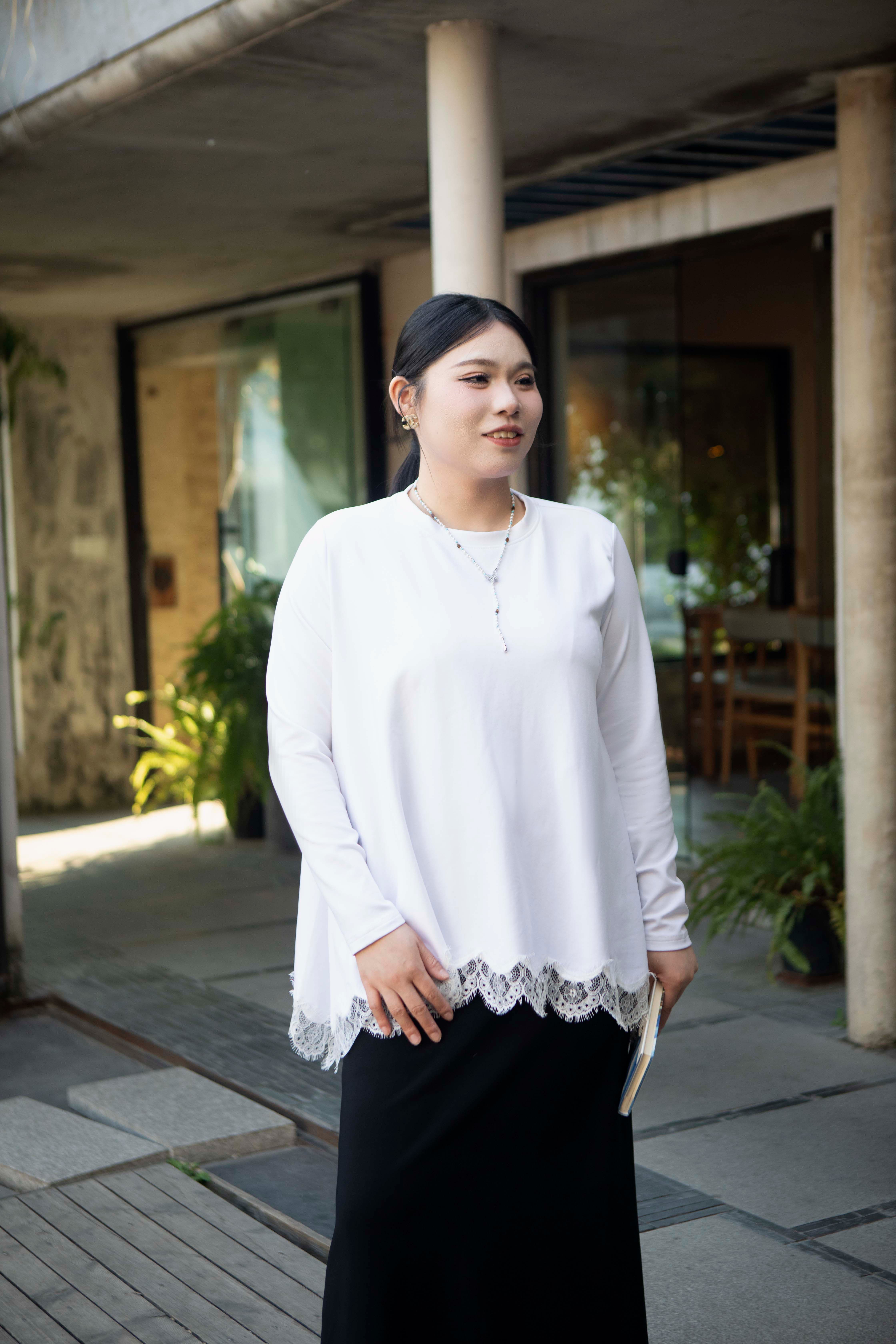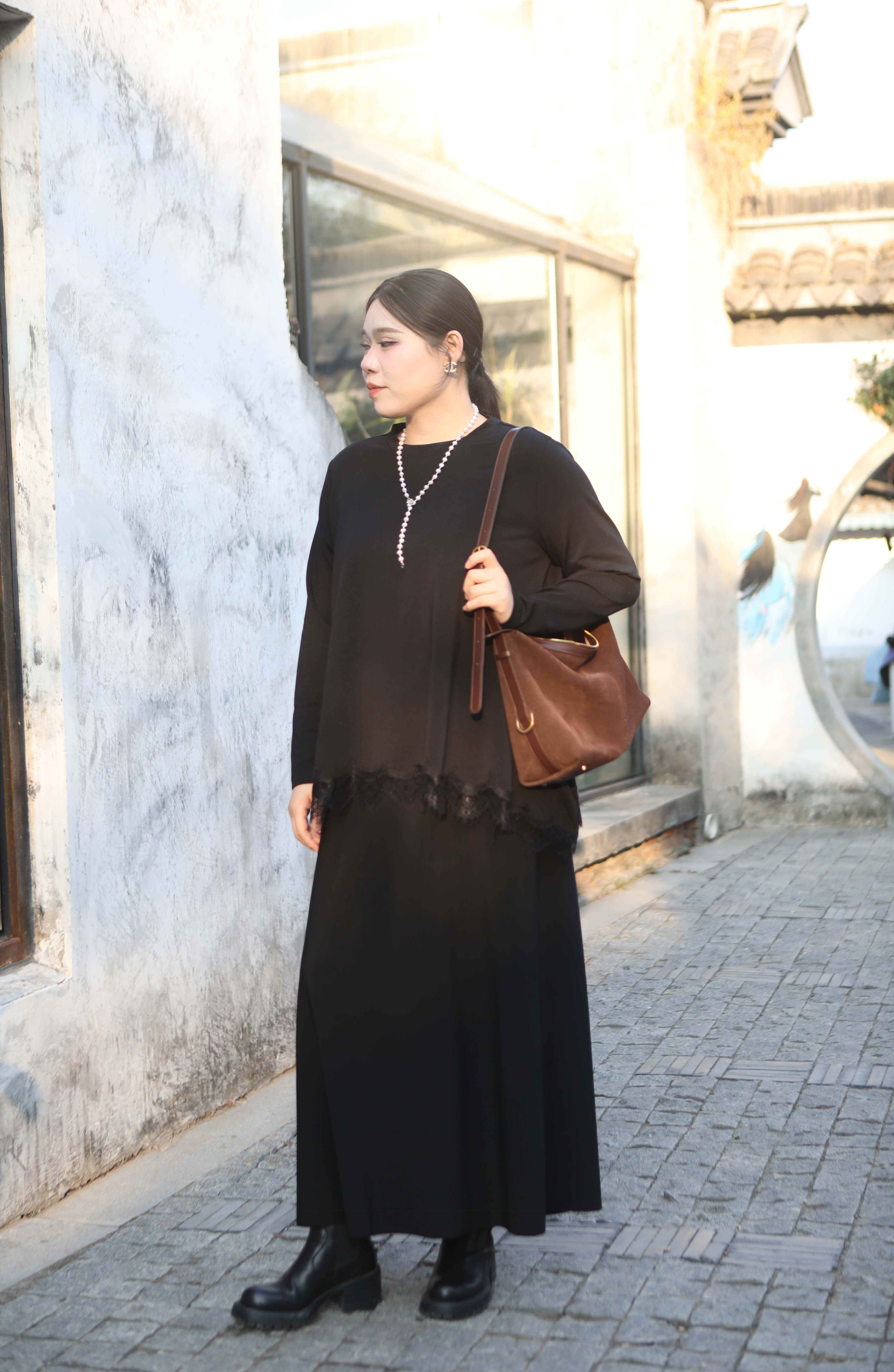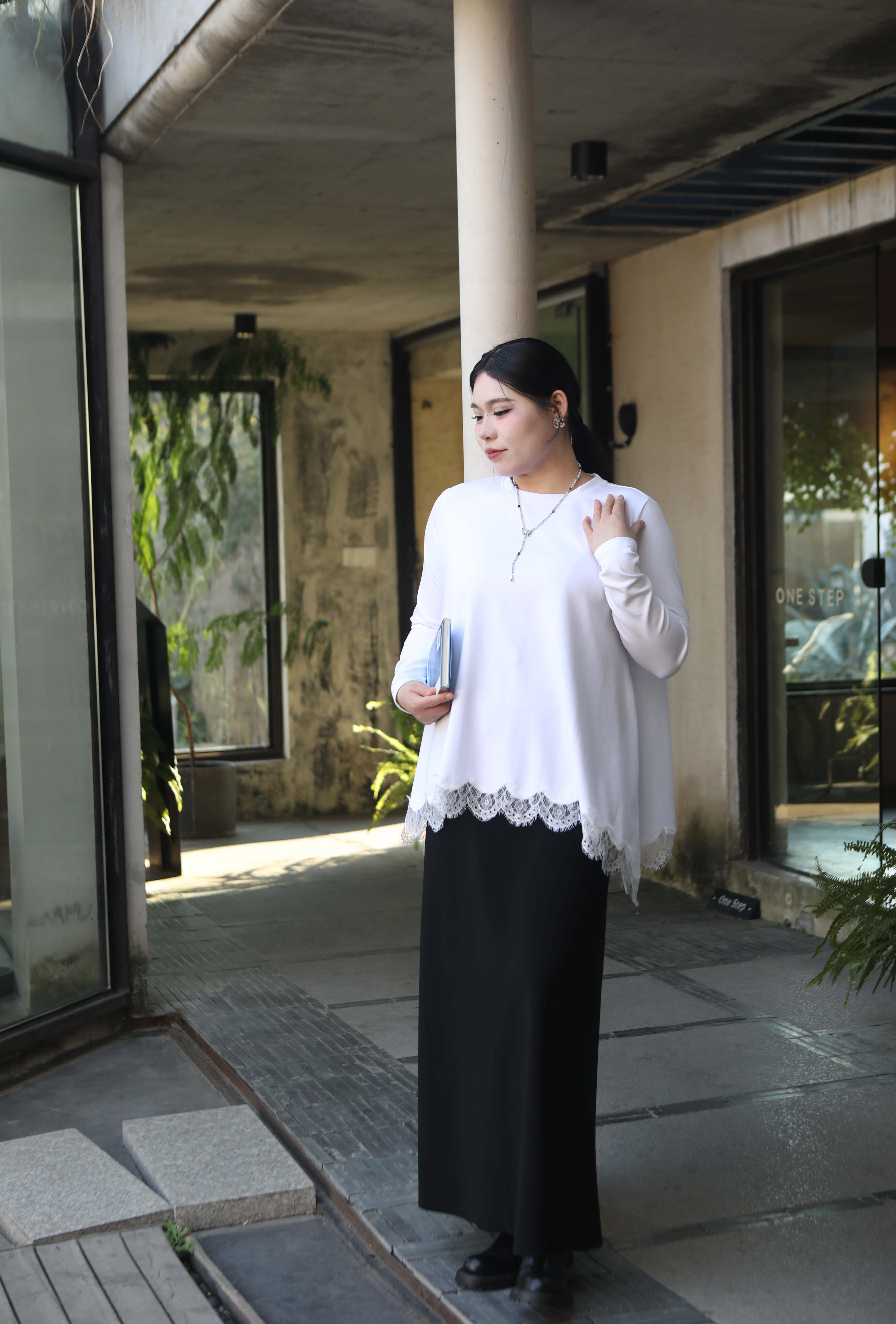 一周发货【薄绒蕾丝花边套头衫】「浪漫蕾丝边」软fufu莱塞尔套头衫|弧形裁切自带层次感,宽松衣身藏肉绝了!!!韩国出口款,成分莱赛尔29% 棉29% 聚酯纤维30%氨纶12%