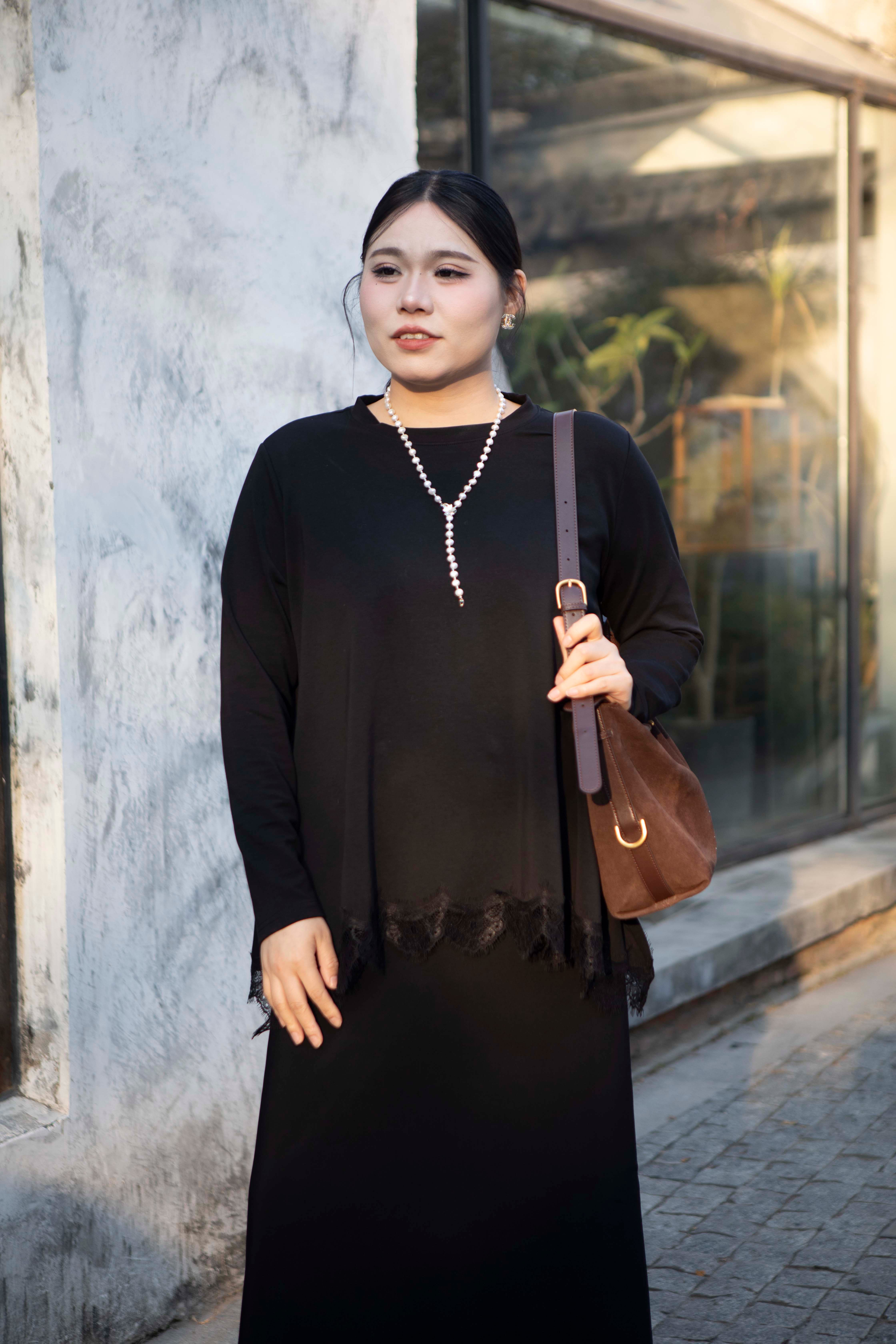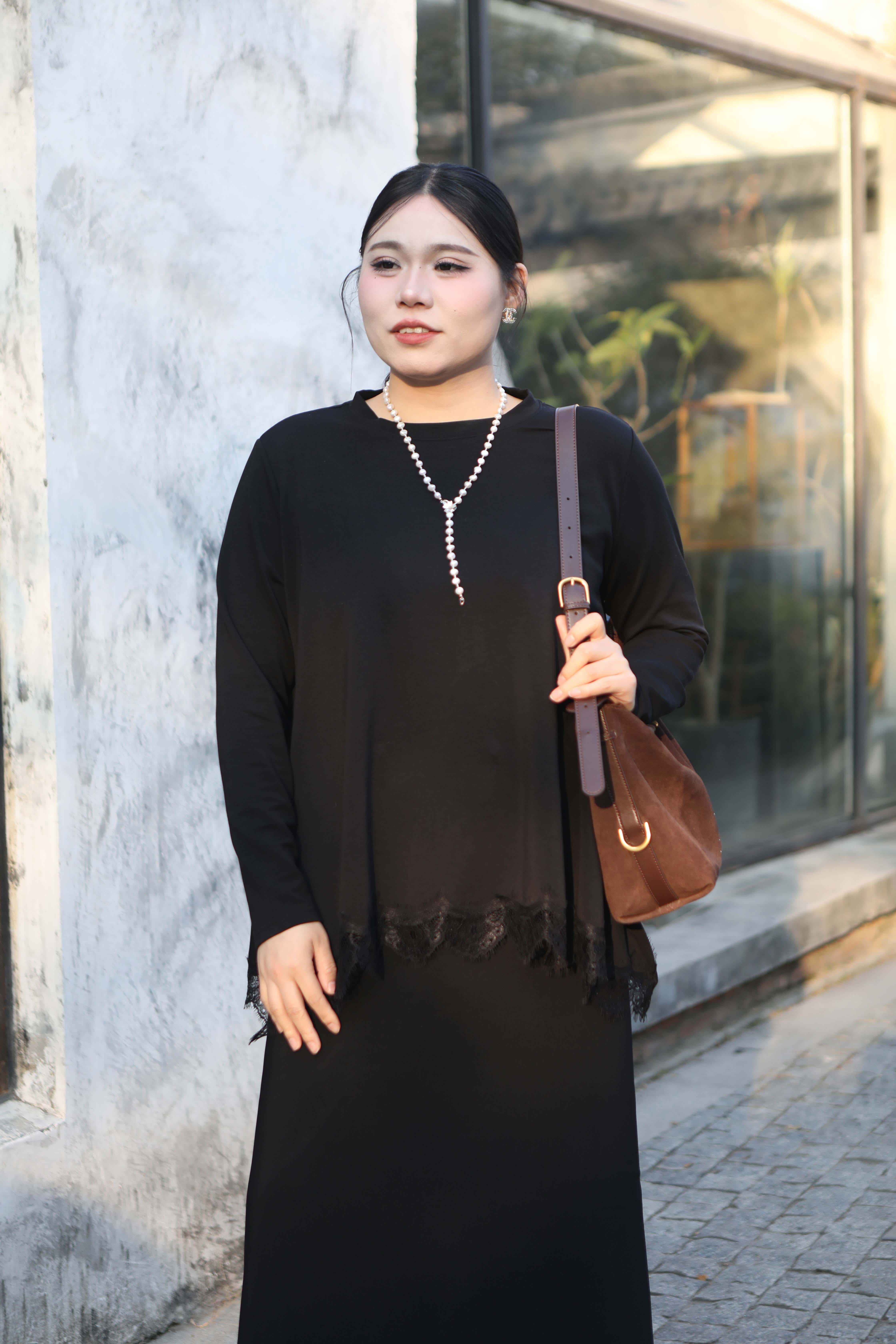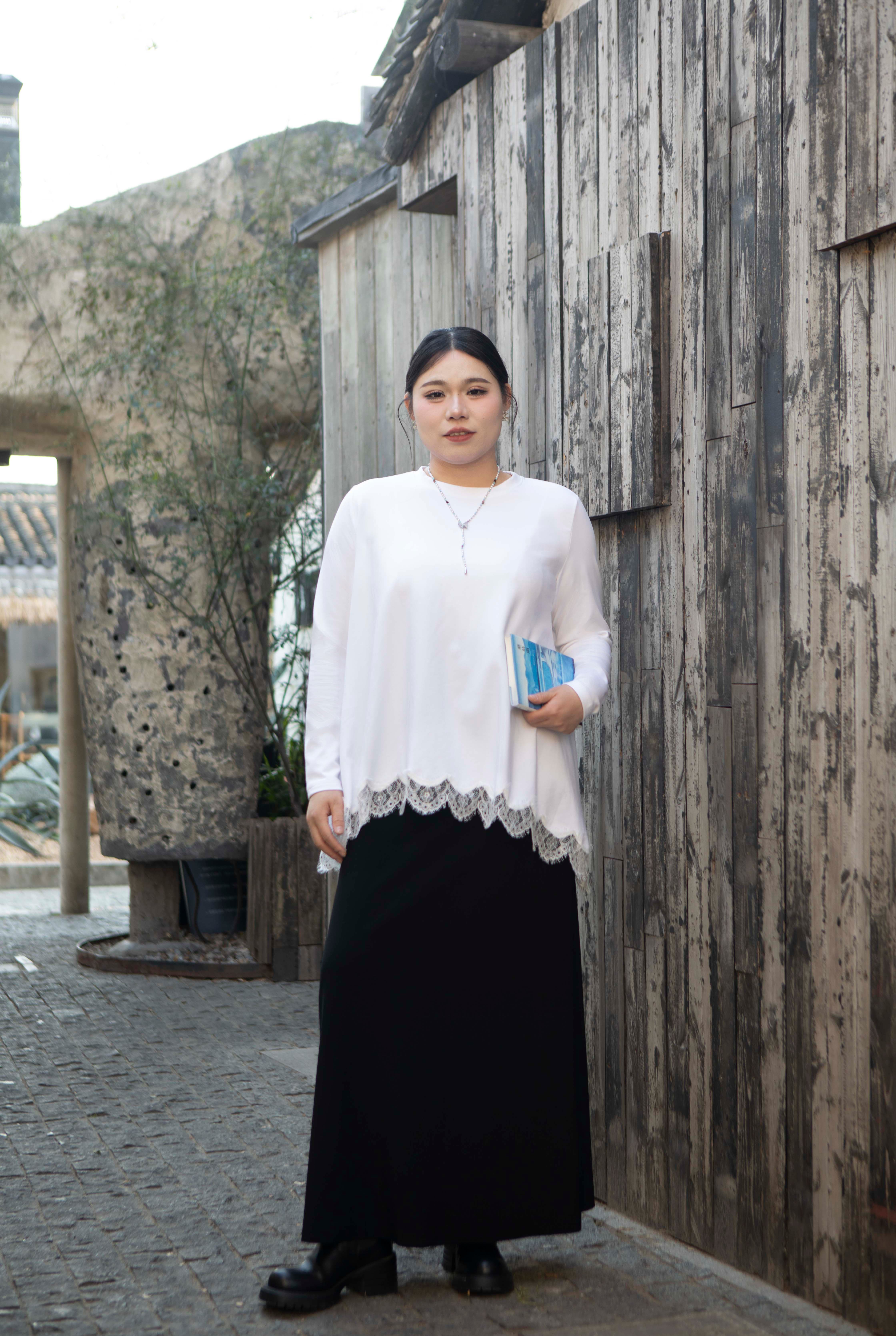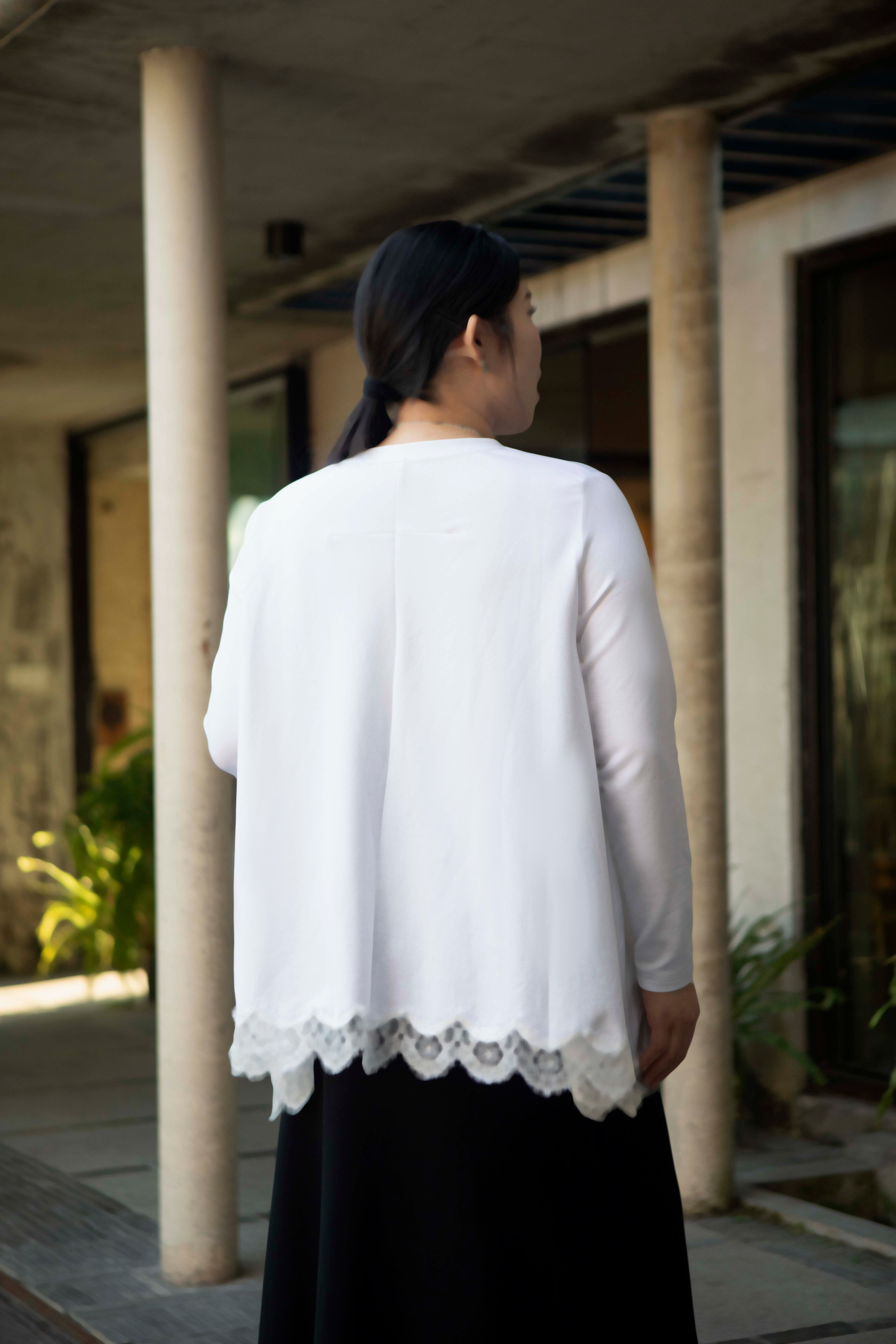 一周发货【薄绒蕾丝花边套头衫】「浪漫蕾丝边」软fufu莱塞尔套头衫|弧形裁切自带层次感,宽松衣身藏肉绝了!!!韩国出口款,成分莱赛尔29% 棉29% 聚酯纤维30%氨纶12%