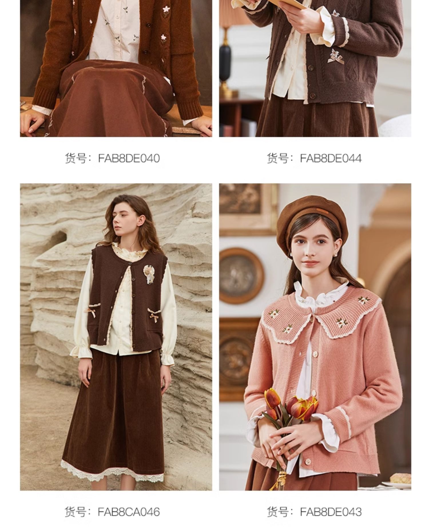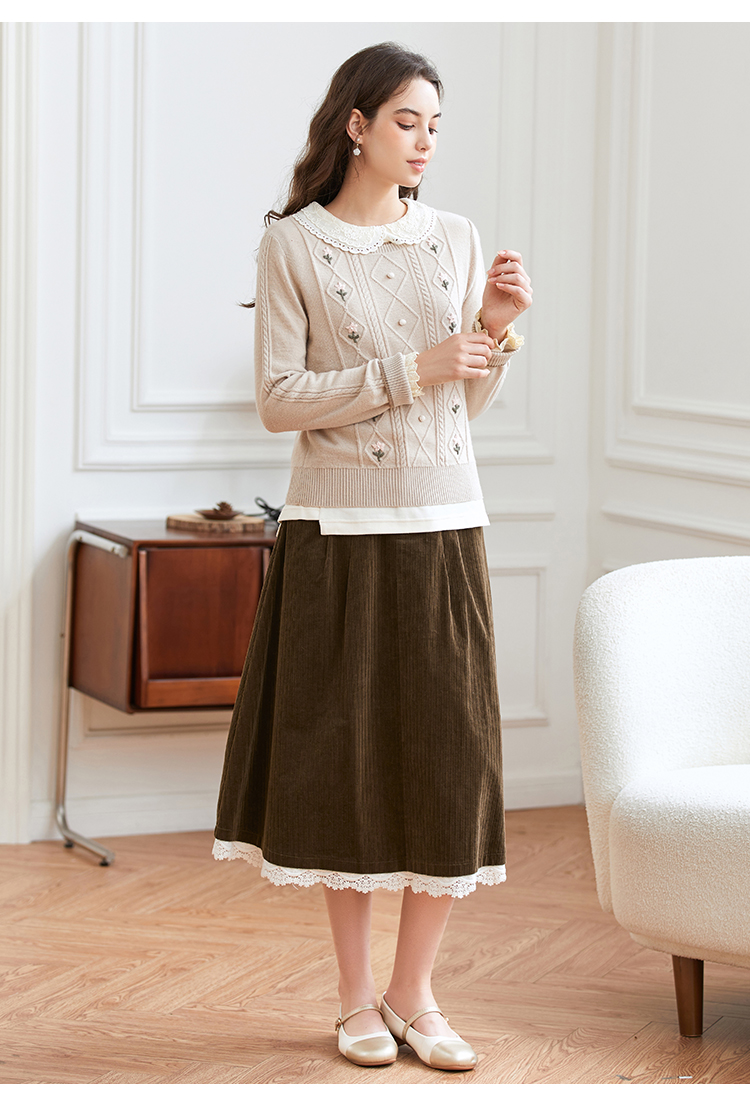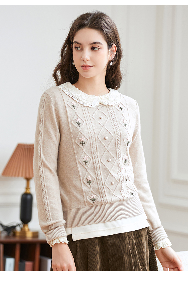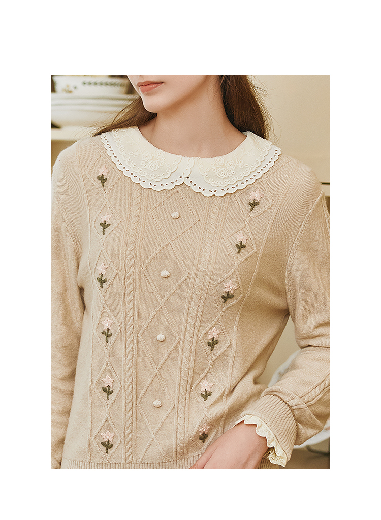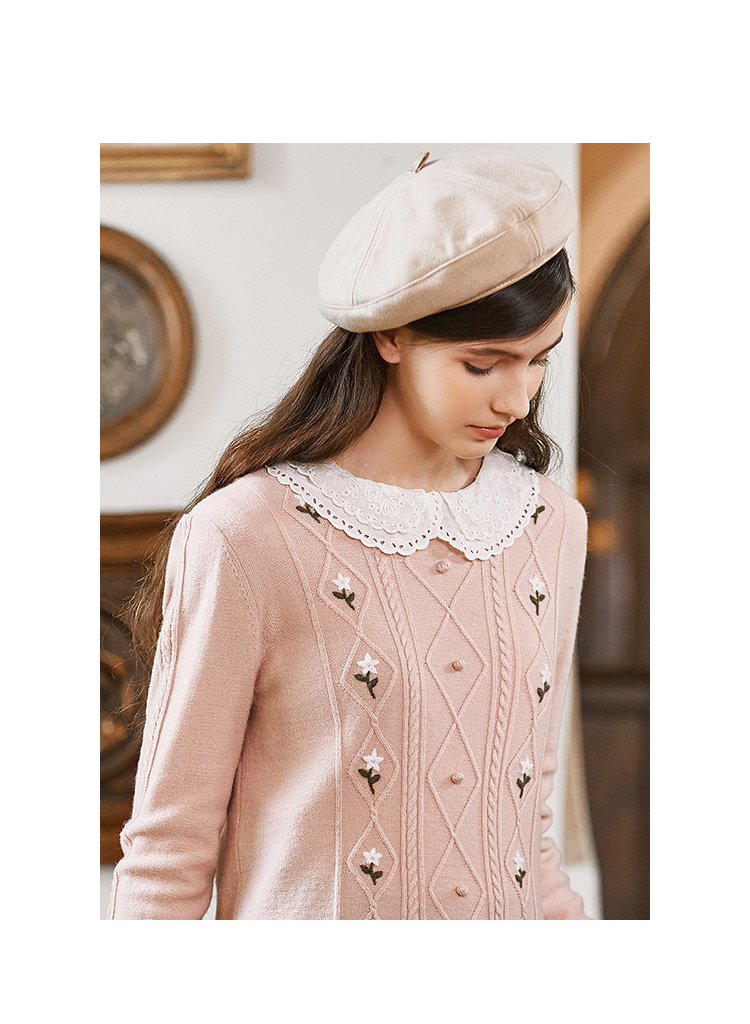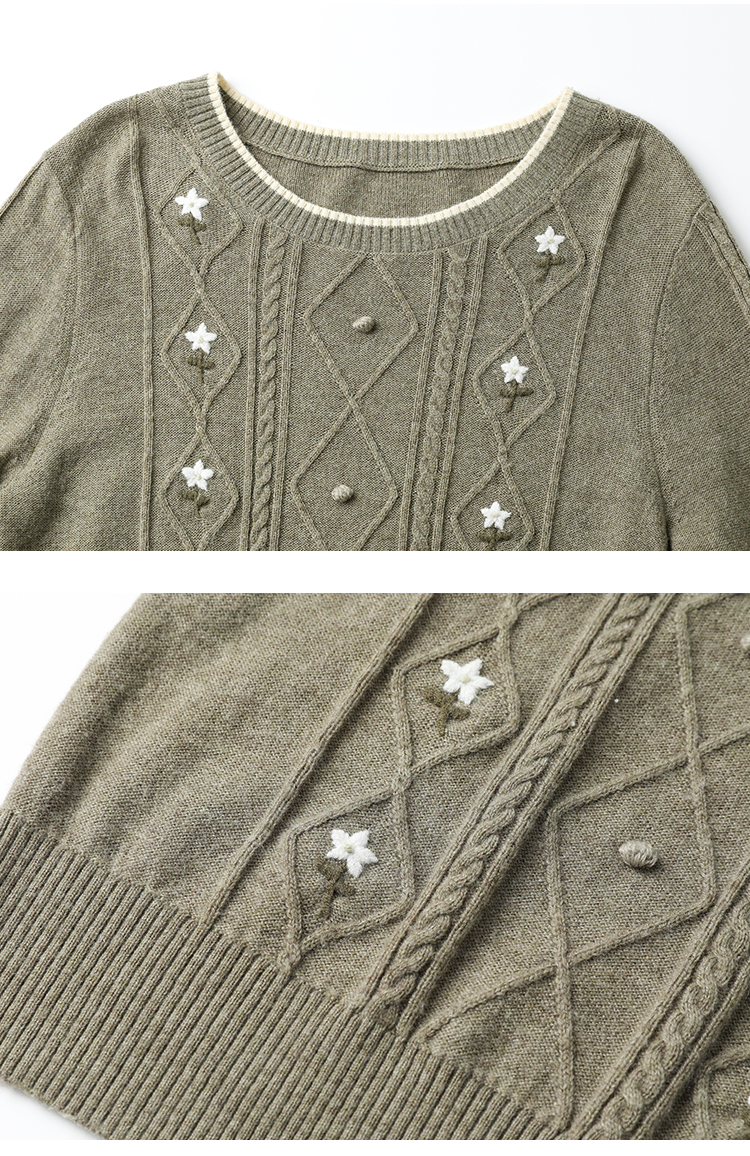 Famecoco范可儿圆领重工钩花套头毛衣秋冬FAB8DB040