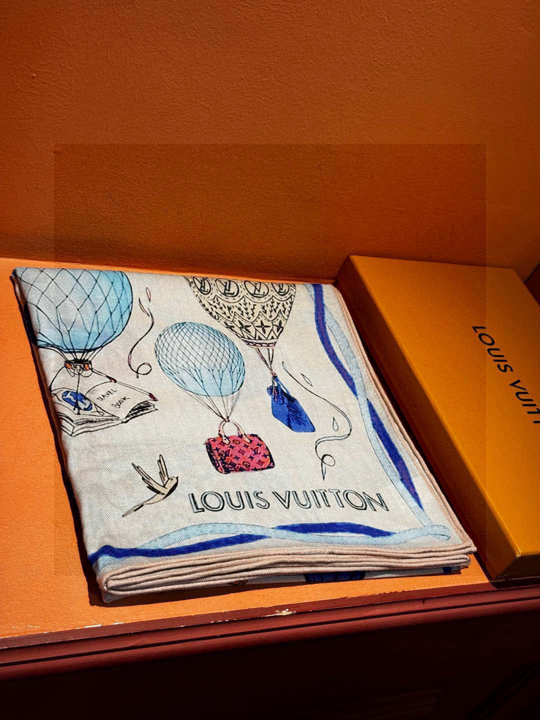 秋冬特惠💰420 LV围巾【双面同色】Lv140cm丝绒方巾《热气球》本款方巾全新加入 and Away 系列