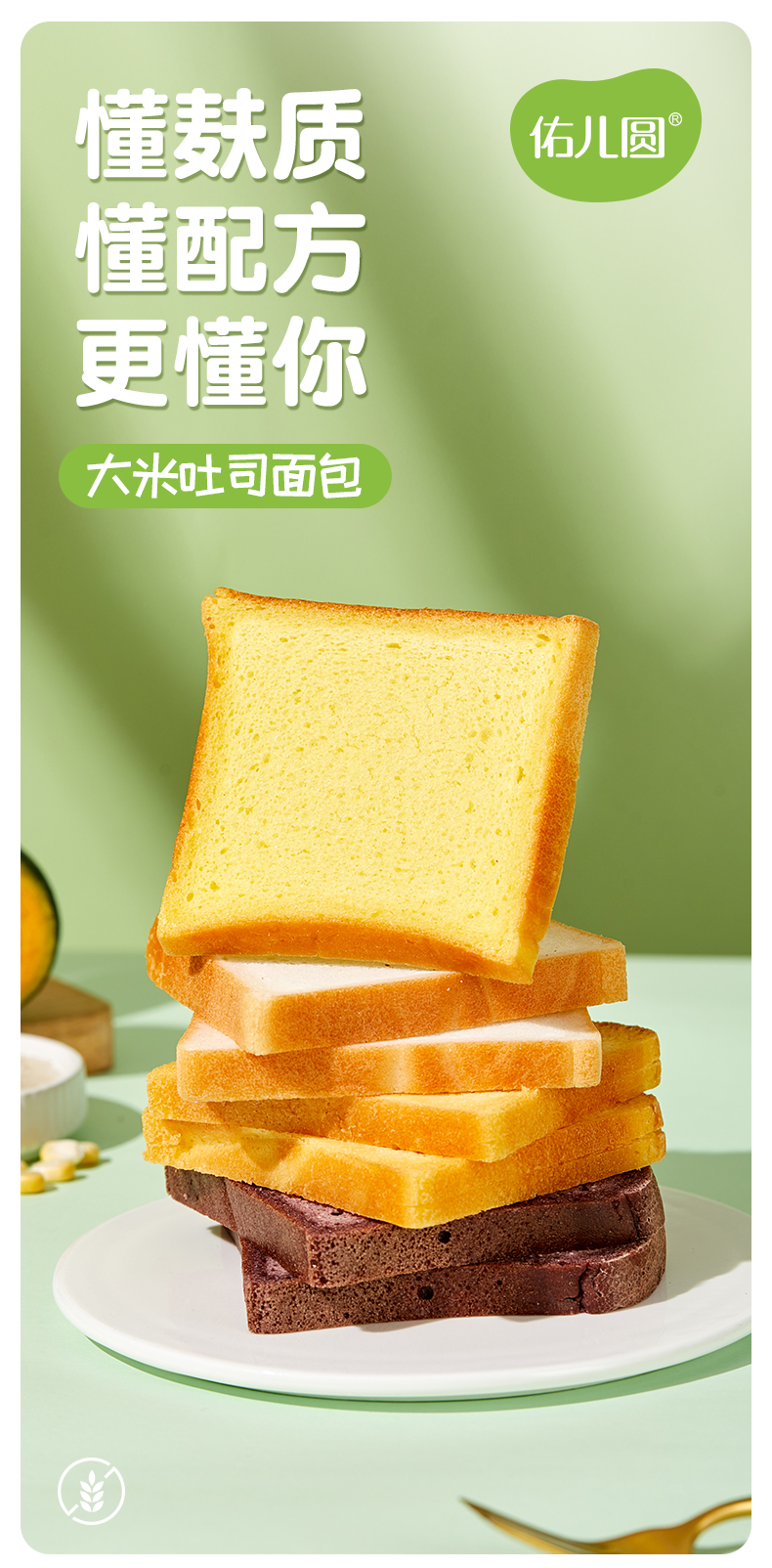 佑儿圆无小麦大米吐司面包儿童营养早餐米麦面包