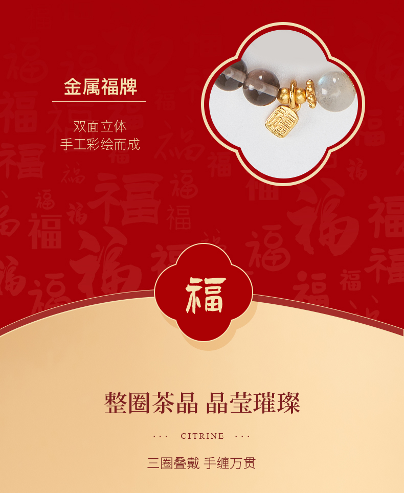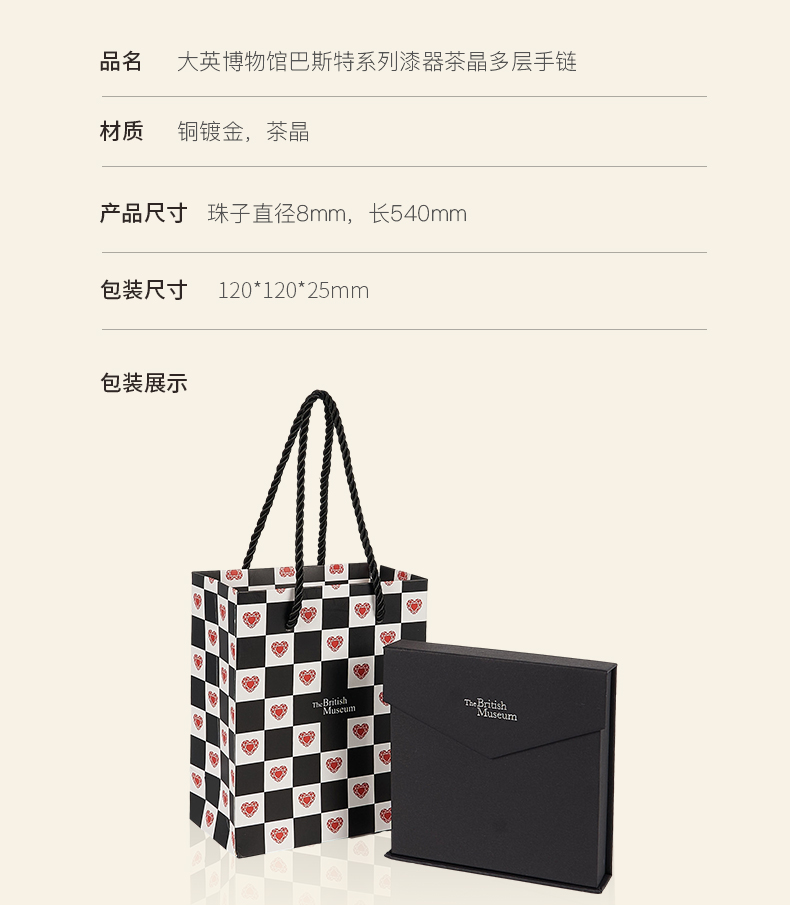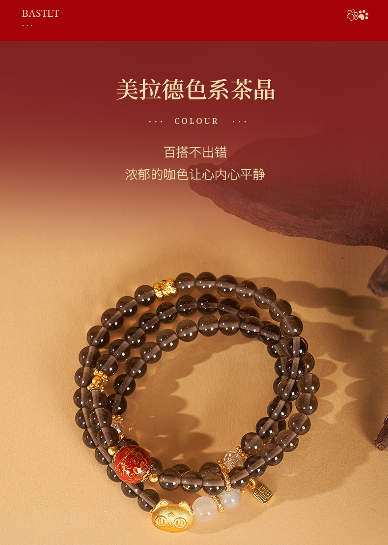 大英博物馆 巴斯特系列 茶晶 漆器 三层手链