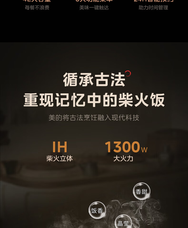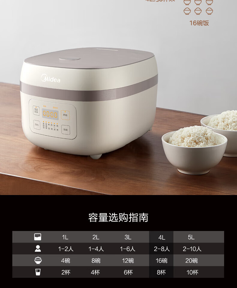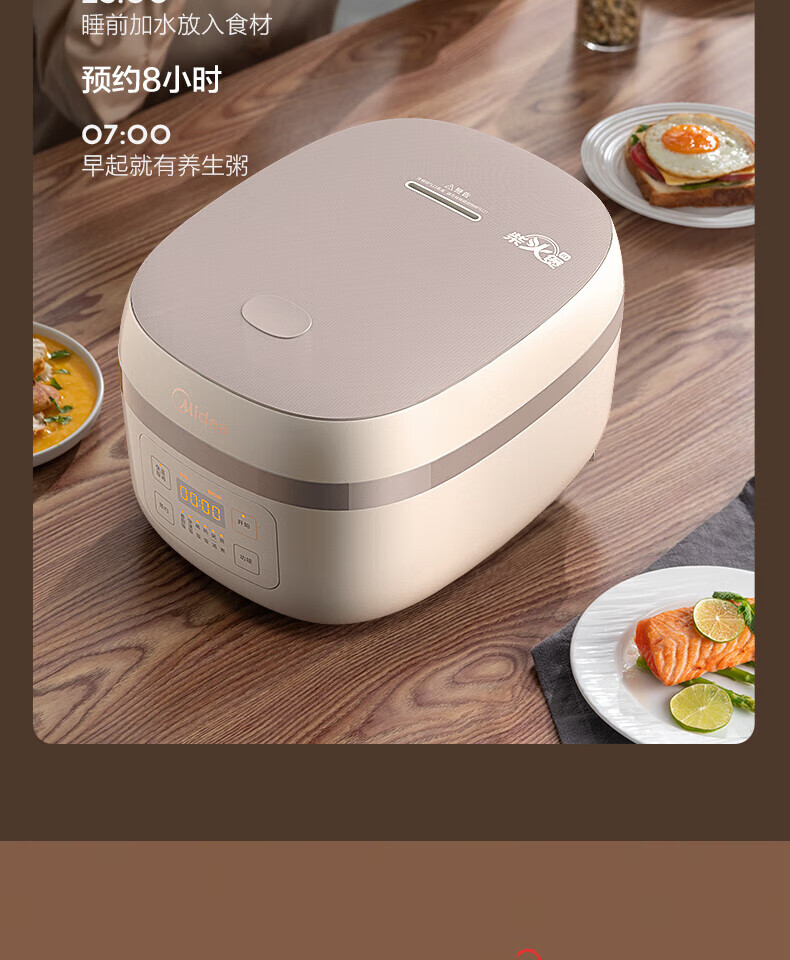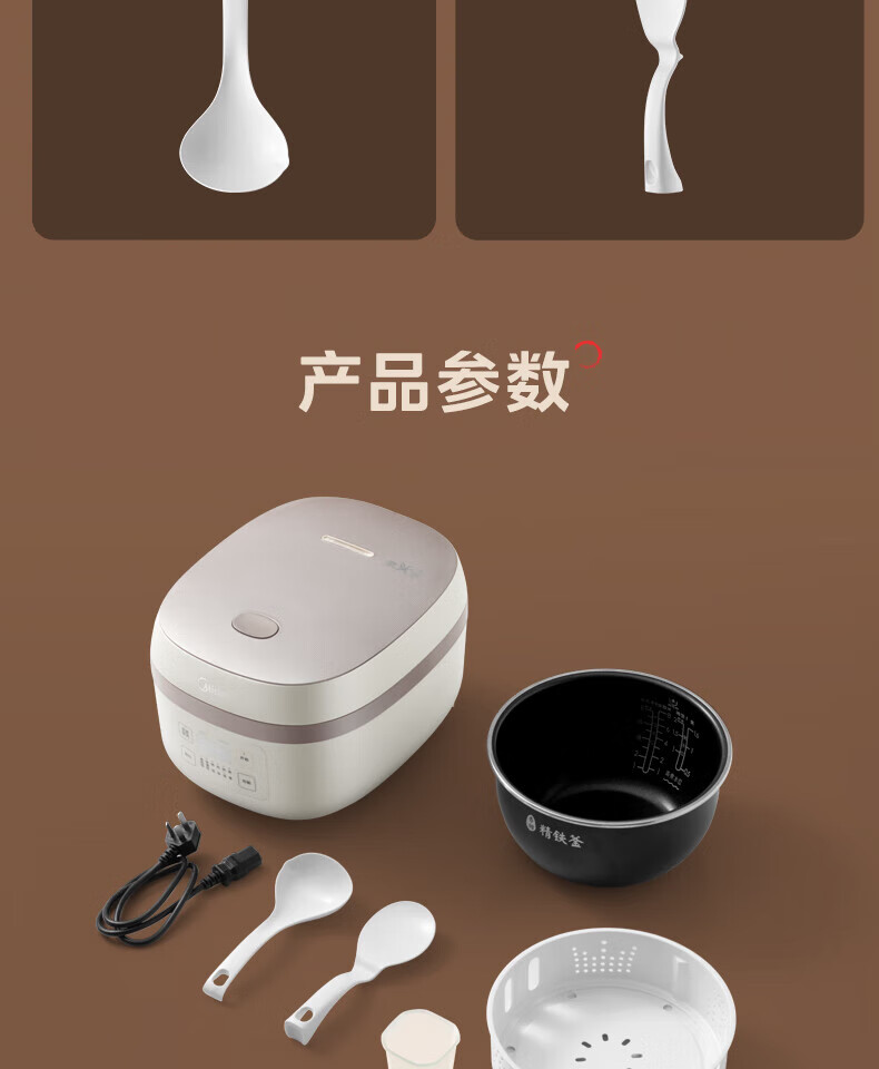 美的(Midea)(510177)电饭煲电饭锅 4升IH电磁加热 2-5人适用全智能精铁釜内胆一键可拆盖板24h预约电饭煲AFB40C8