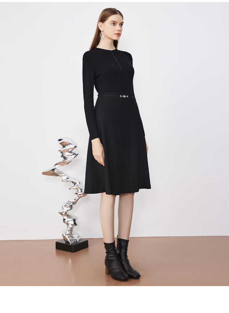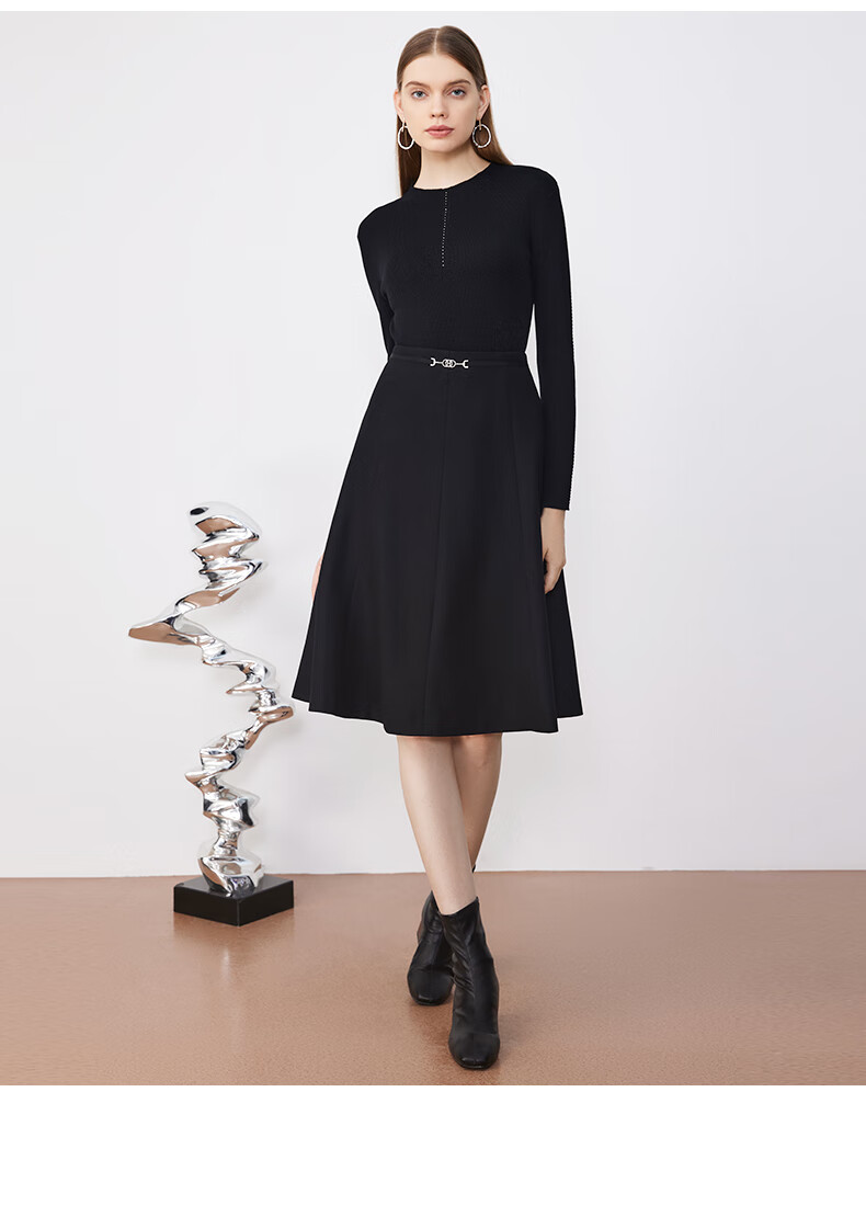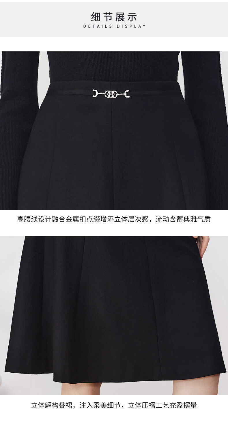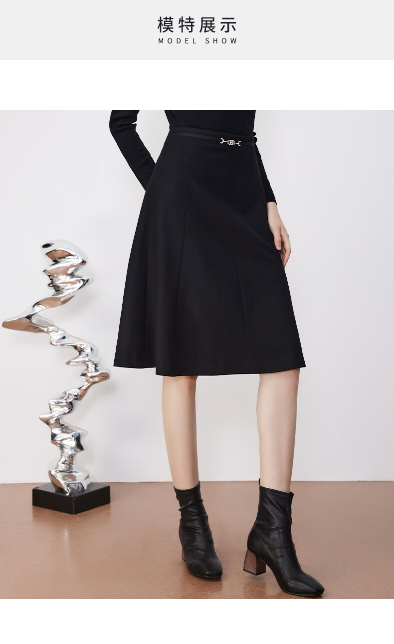 皮尔卡丹女装简约A摆都市通勤轻商务半身裙P3437S3995B0