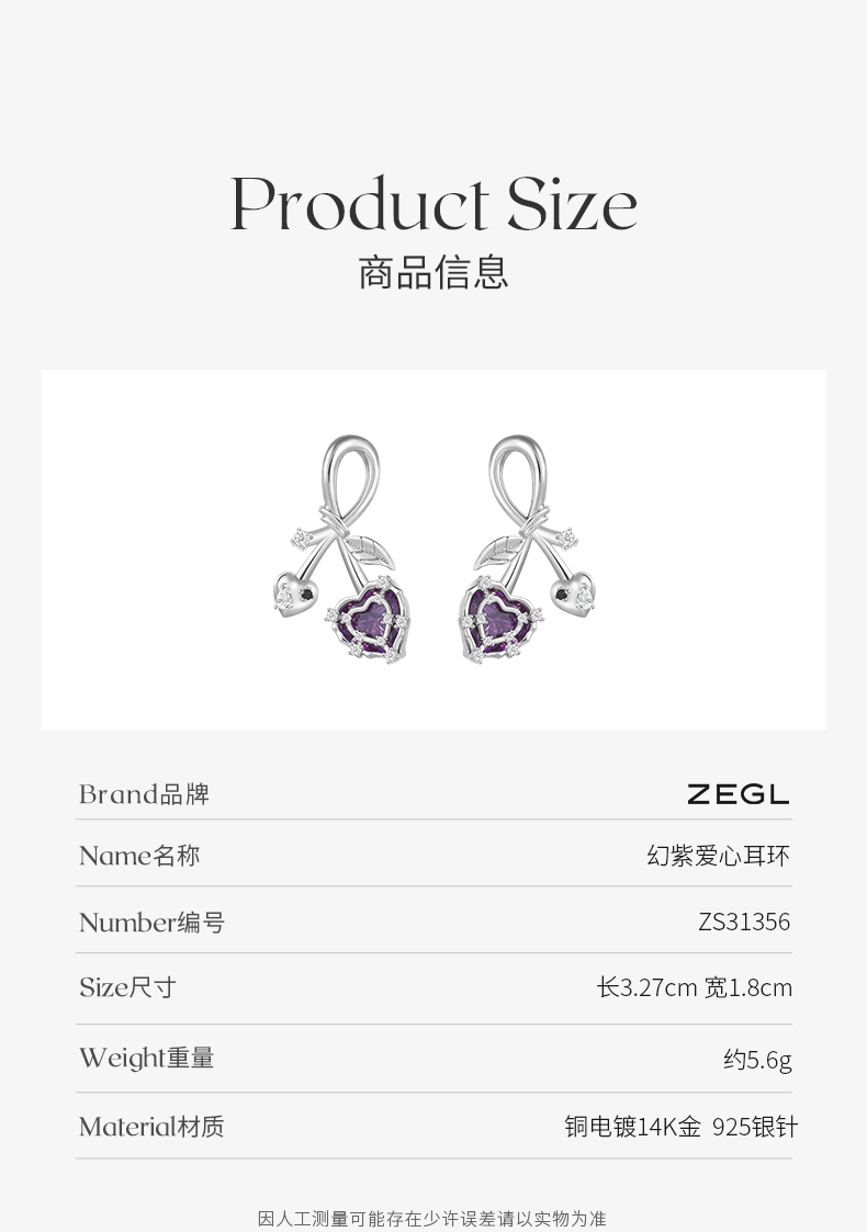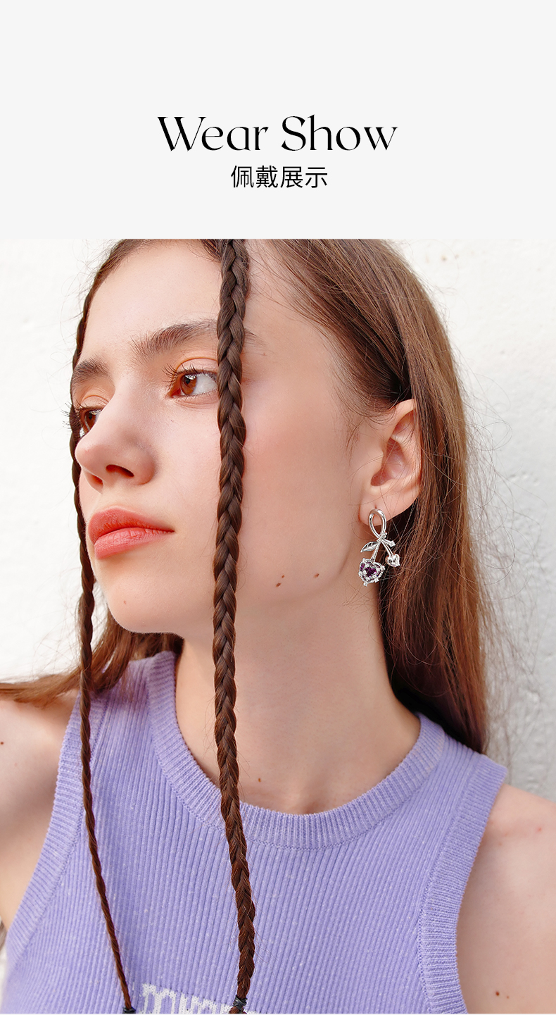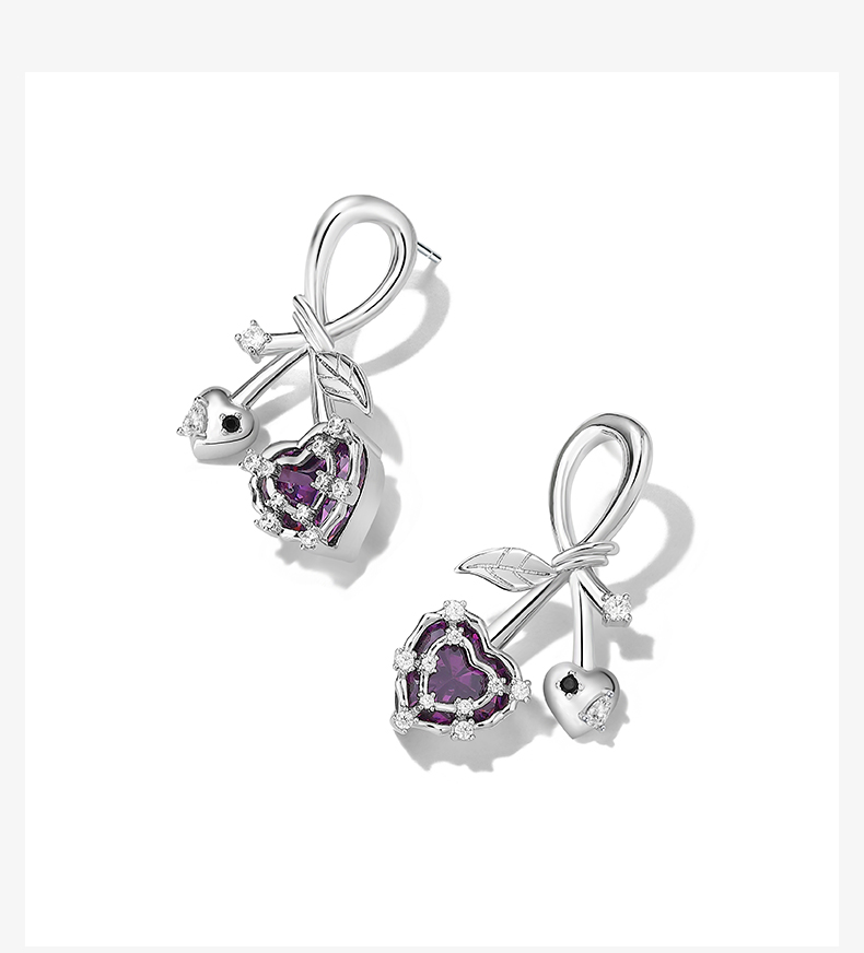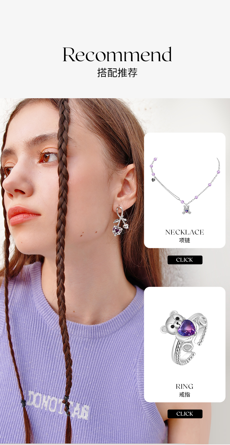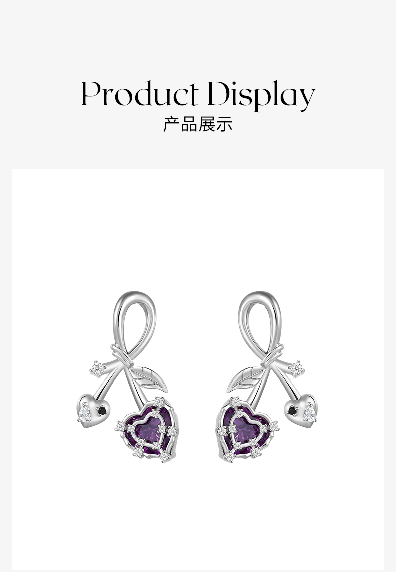 ZEGL设计师幻梦小熊系列爱心樱桃耳环女夏小众设计感耳钉银针耳饰