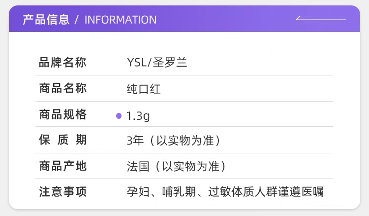 YSL圣罗兰全新方管1.3g口红【保税发货】