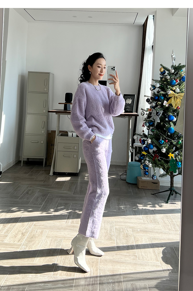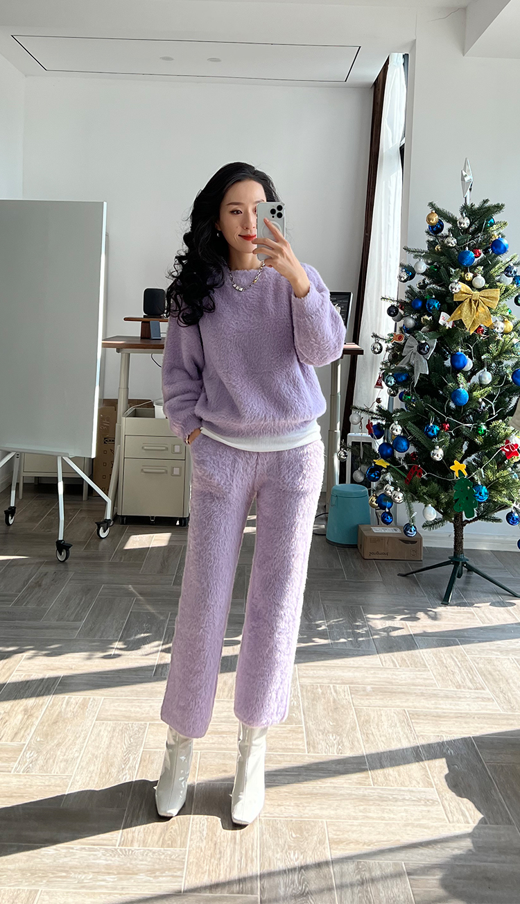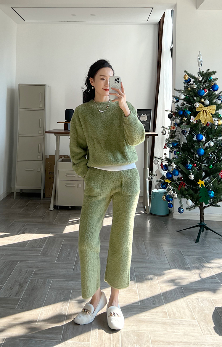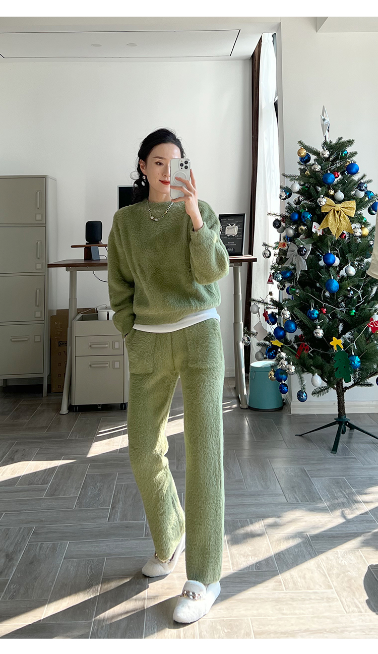 “毛茸茸特辑”仿貂绒针织圆领毛衣&家居裤套装