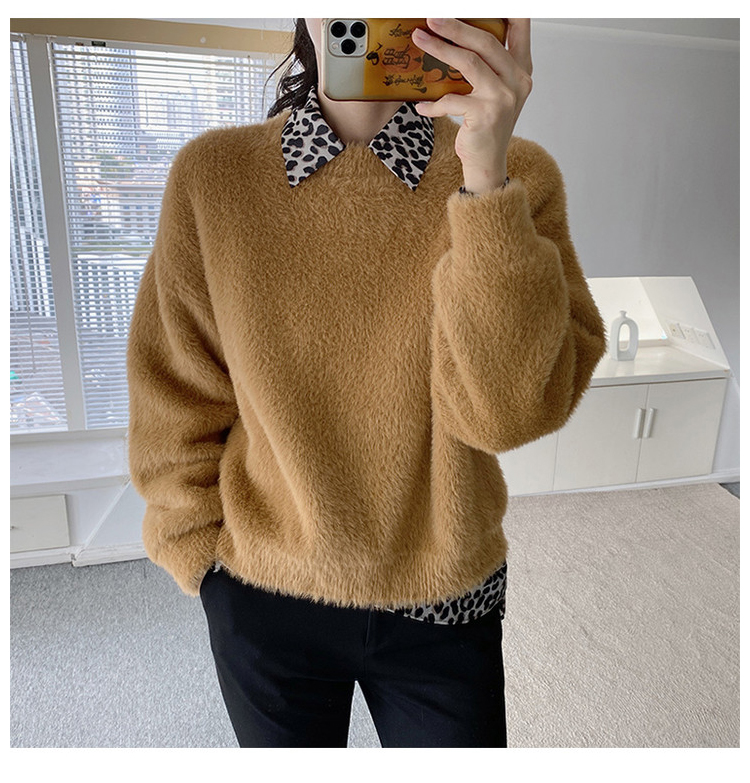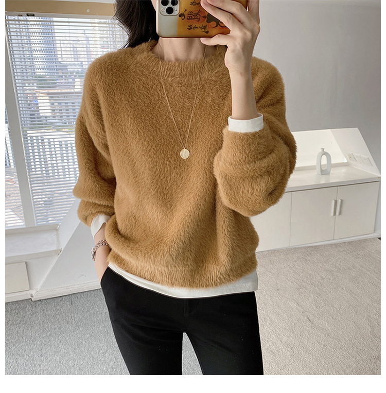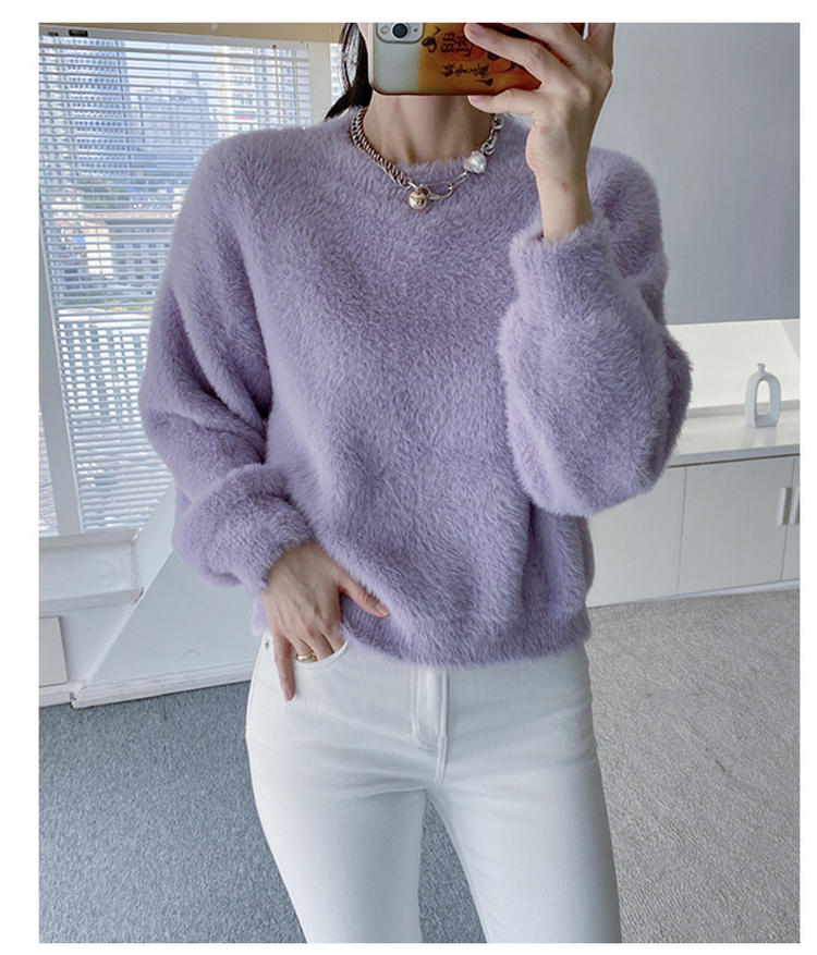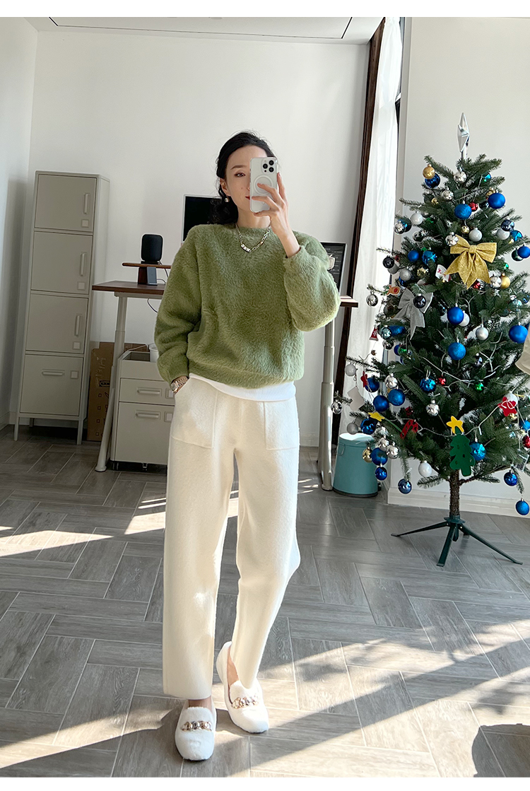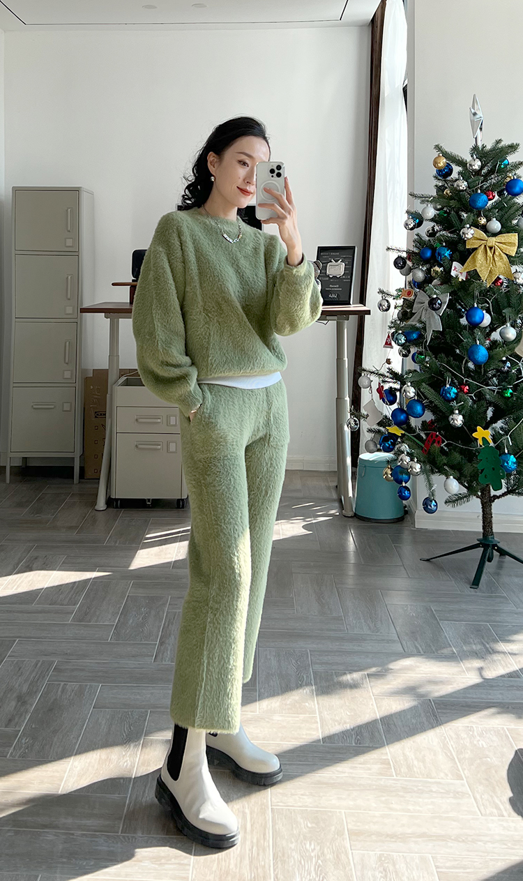 “毛茸茸特辑”仿貂绒针织圆领毛衣&家居裤套装