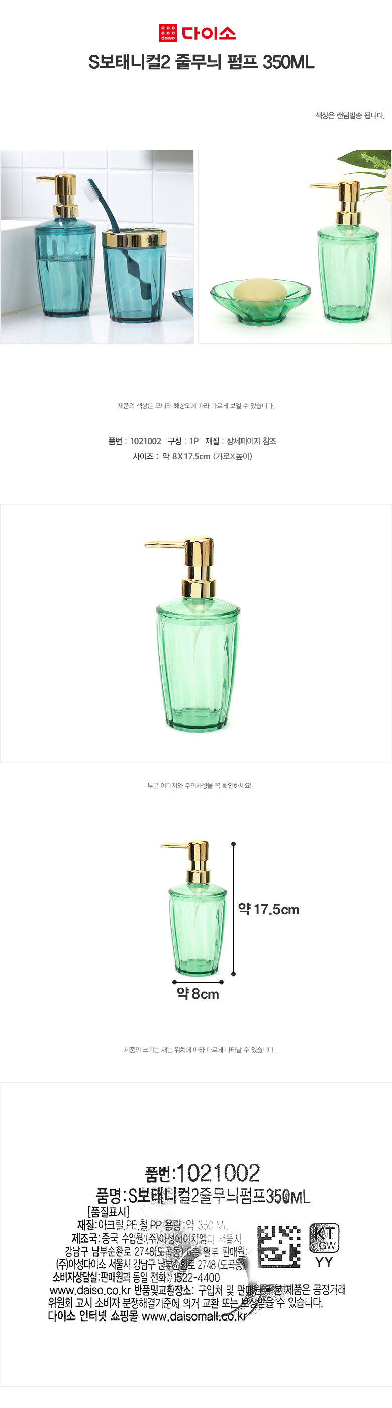 [Daiso]S Botanical Pump 350ML-1021002大创 洗手液器 分装器JPY带授权招加盟代理