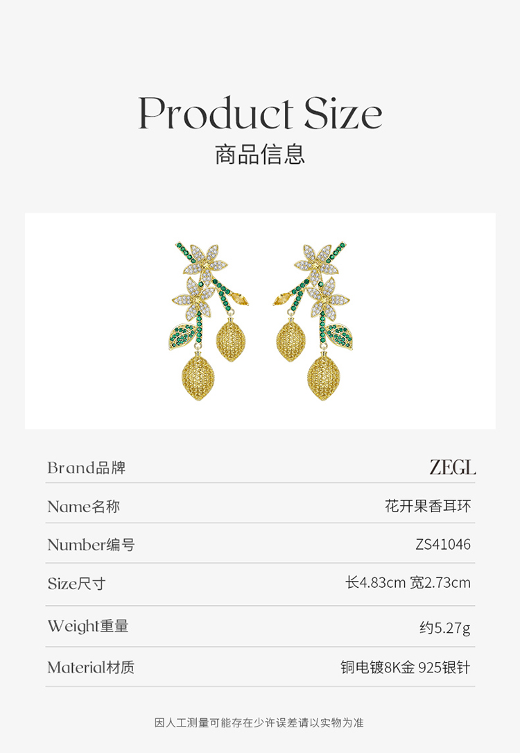 ZEGL设计师水果系列花朵耳环女2023新款爆款耳钉银针小众夏天耳饰