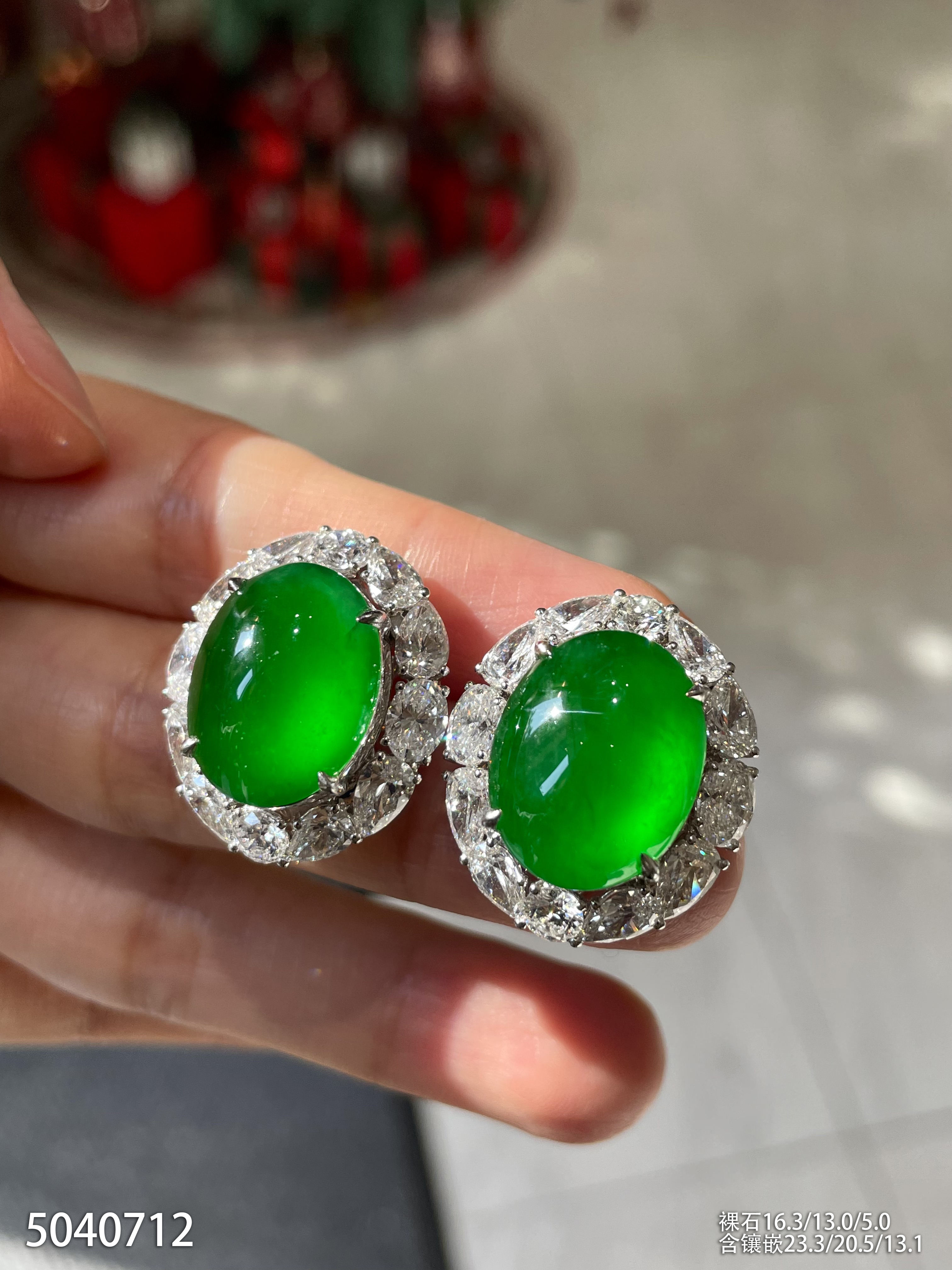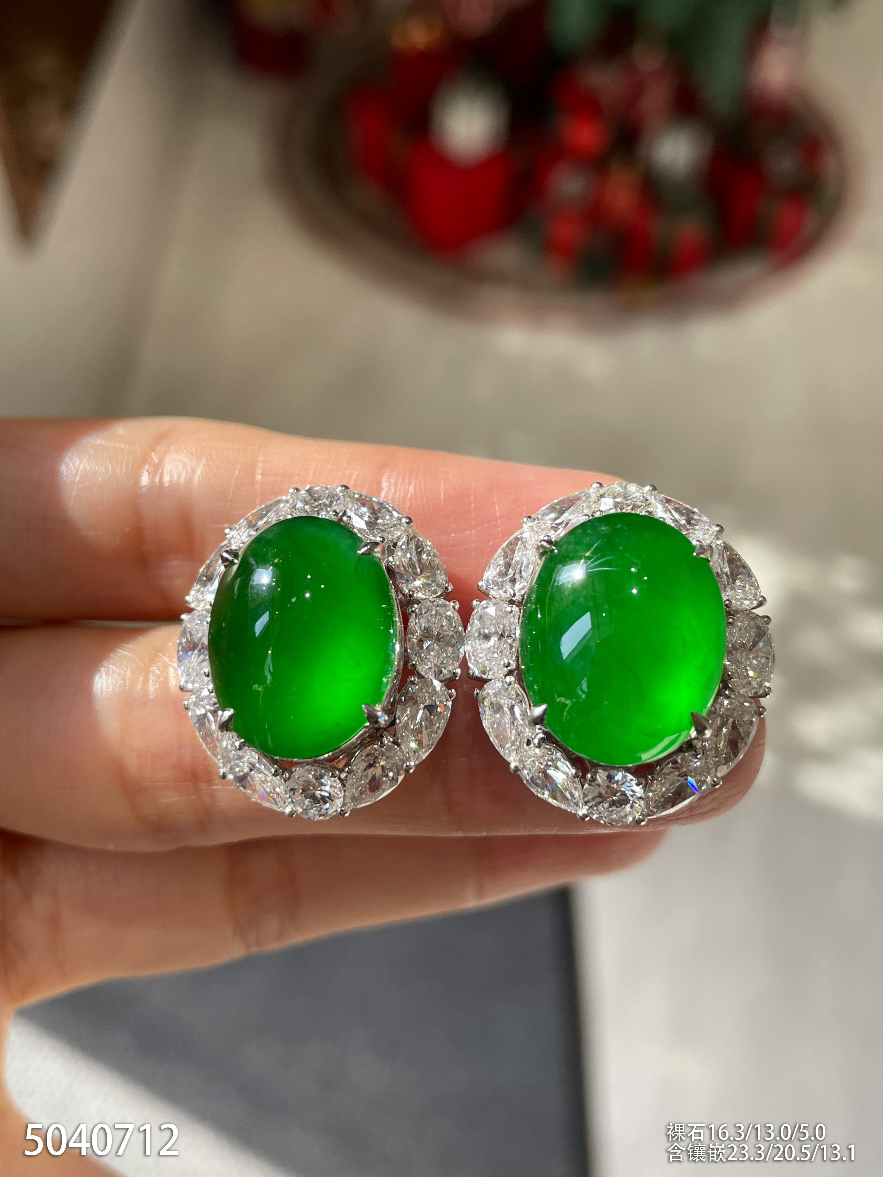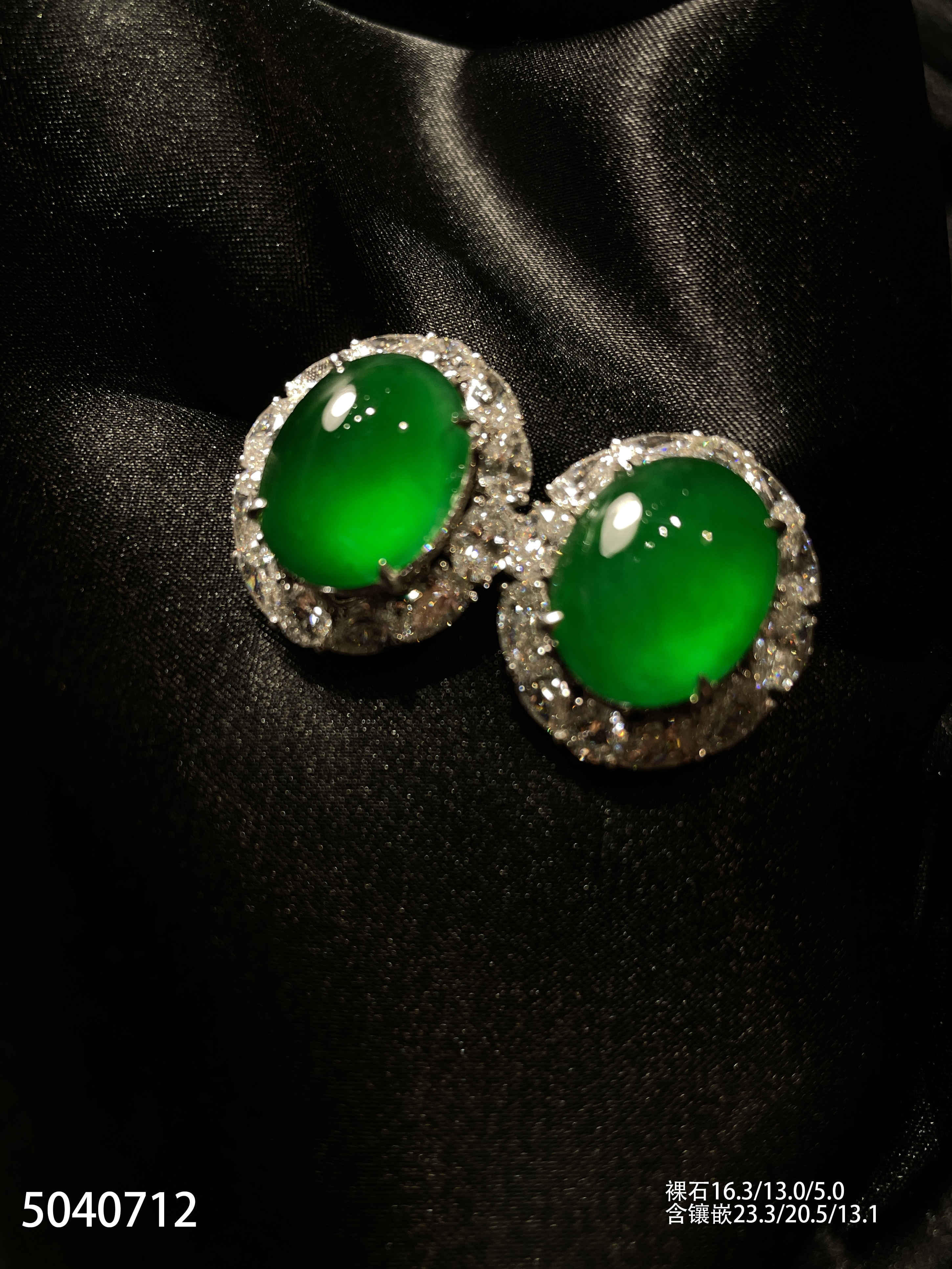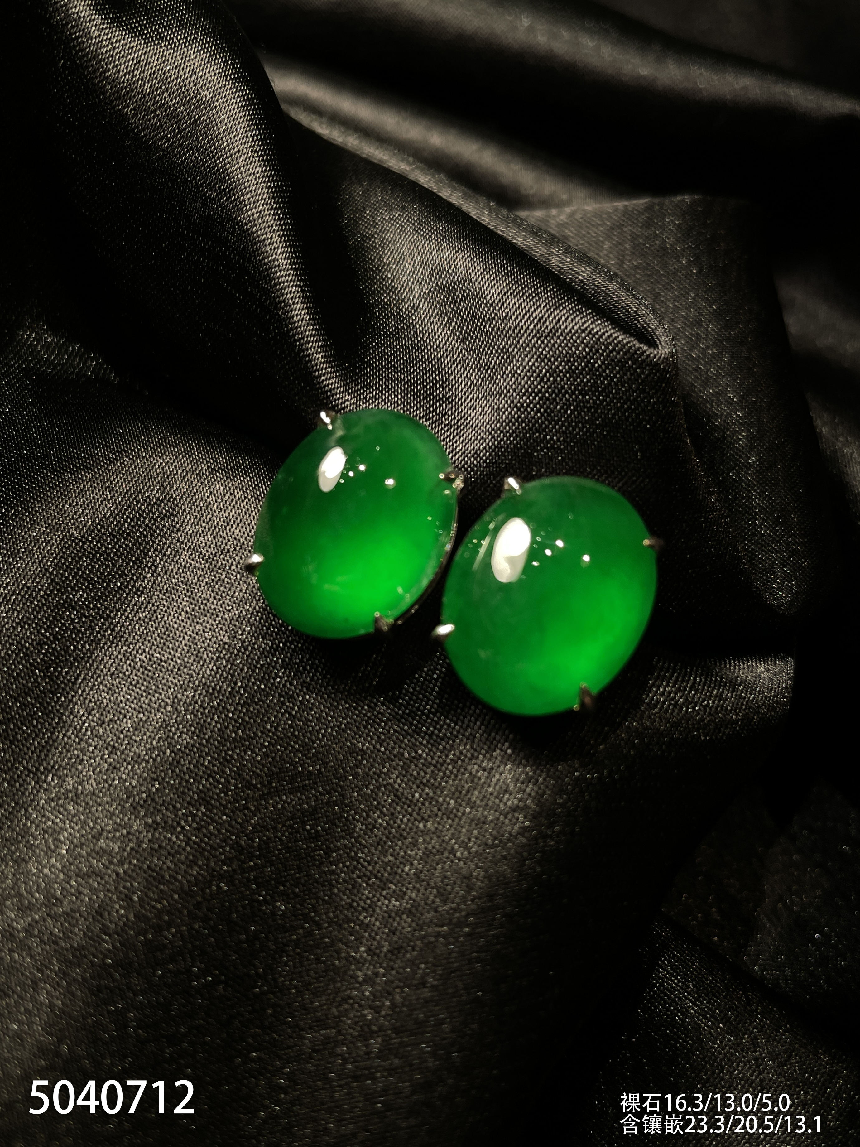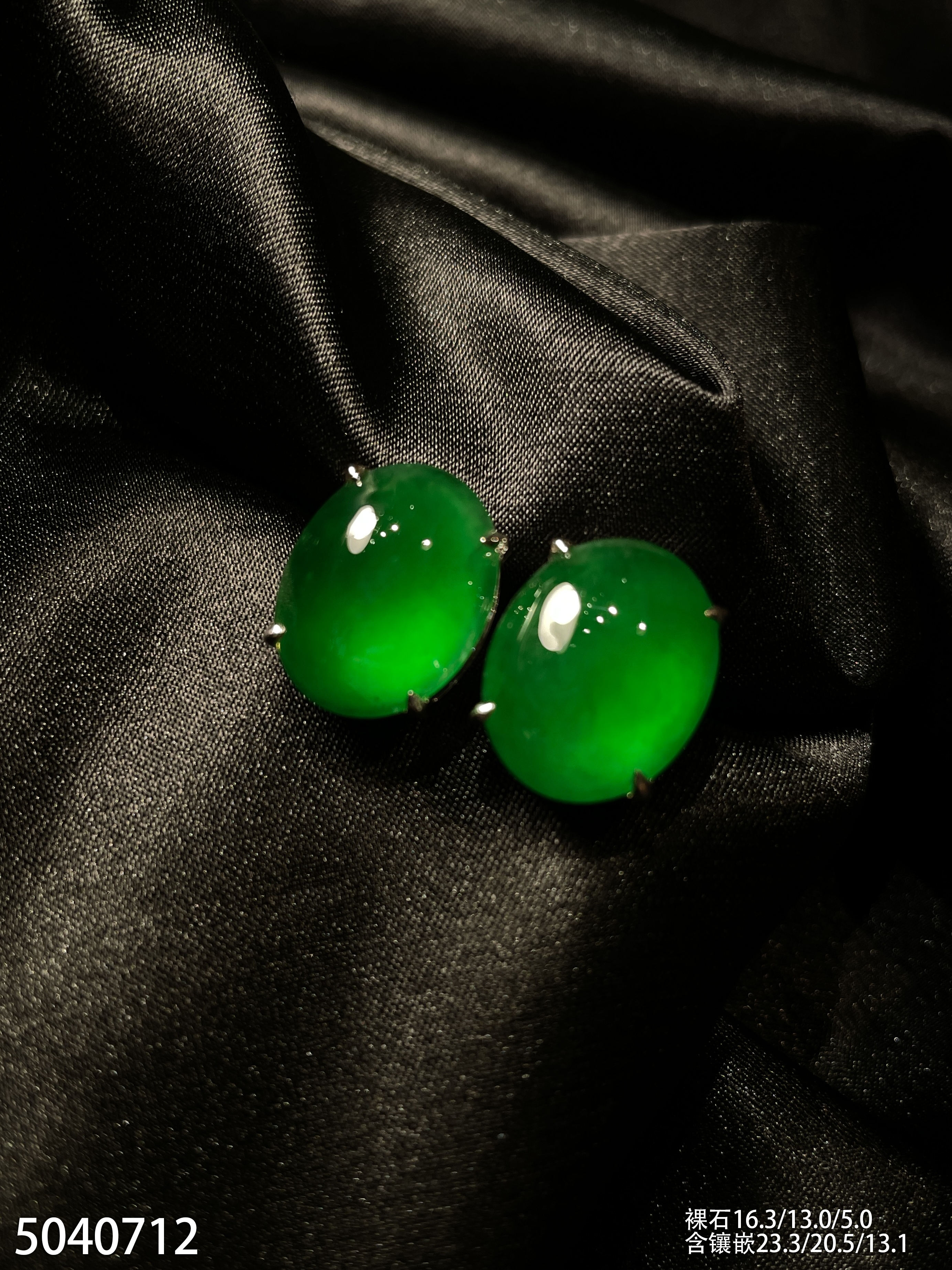 81-1072707,老坑玻璃种帝王绿蛋面耳坠,具体价格微信咨询