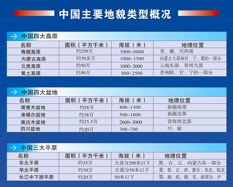 中国主要地貌类型概况