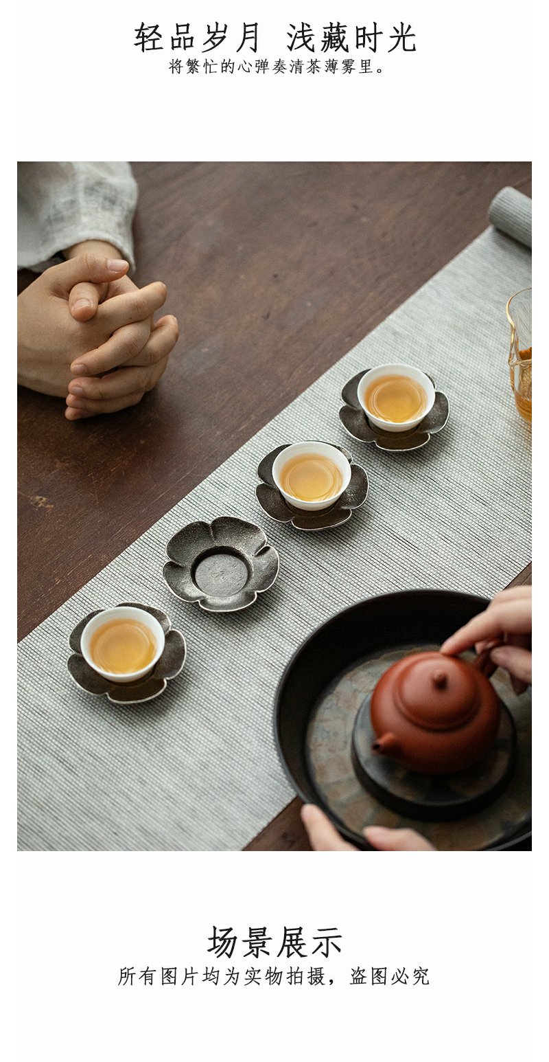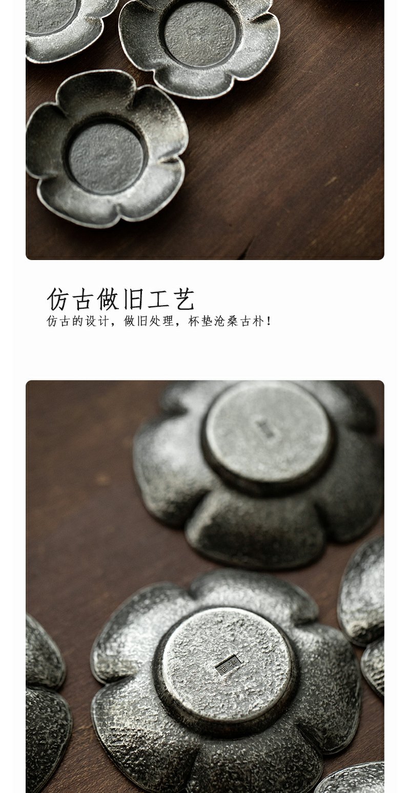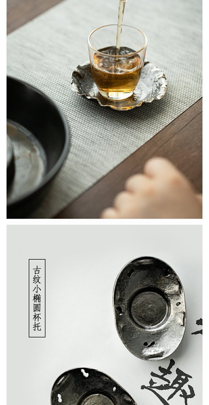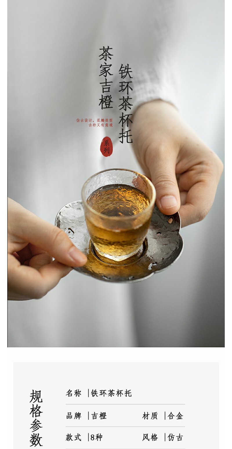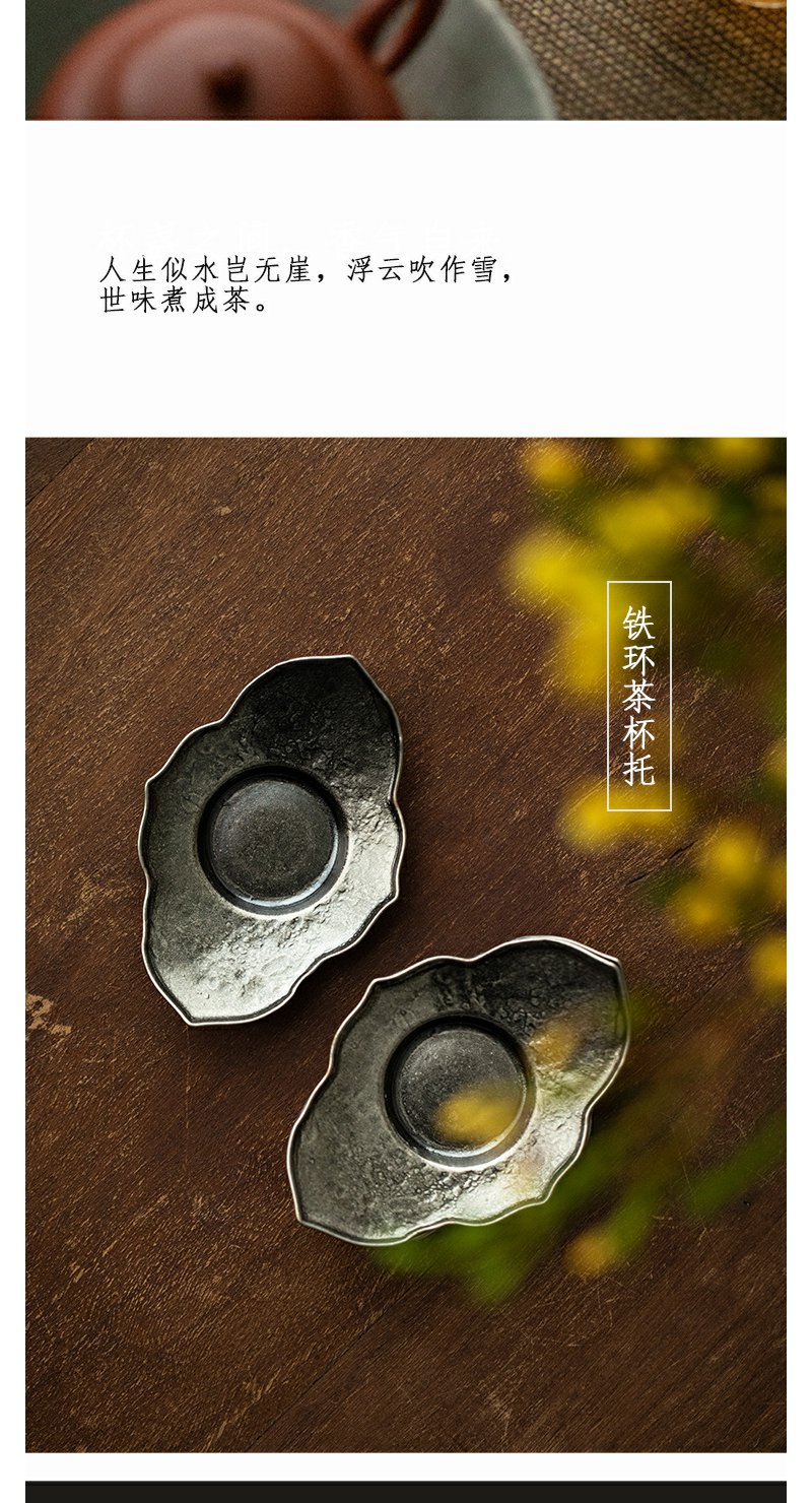 茶家吉橙杯托复古杯垫铁环茶日式杯托茶道配件隔热垫